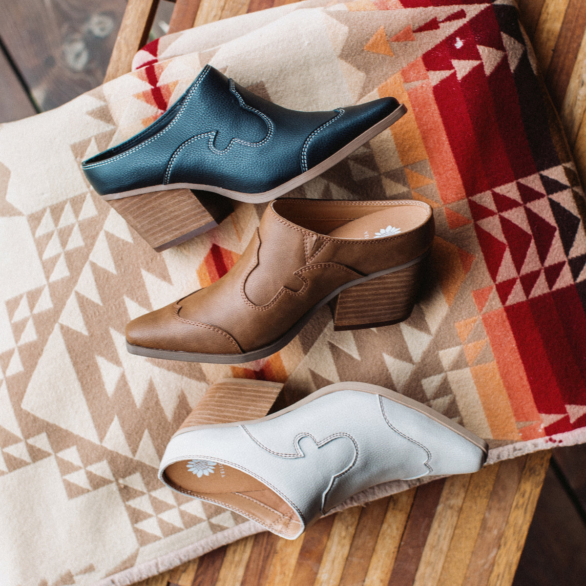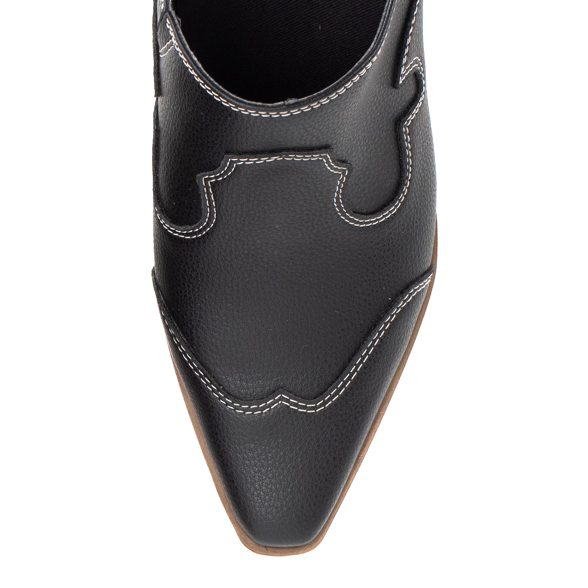 Introducing CYAN, a timeless western-inspired mule, featuring a genuine leatherstack heel, a pointed snip toe design, and contrast top-stitching - it is an essential style every closet needs.