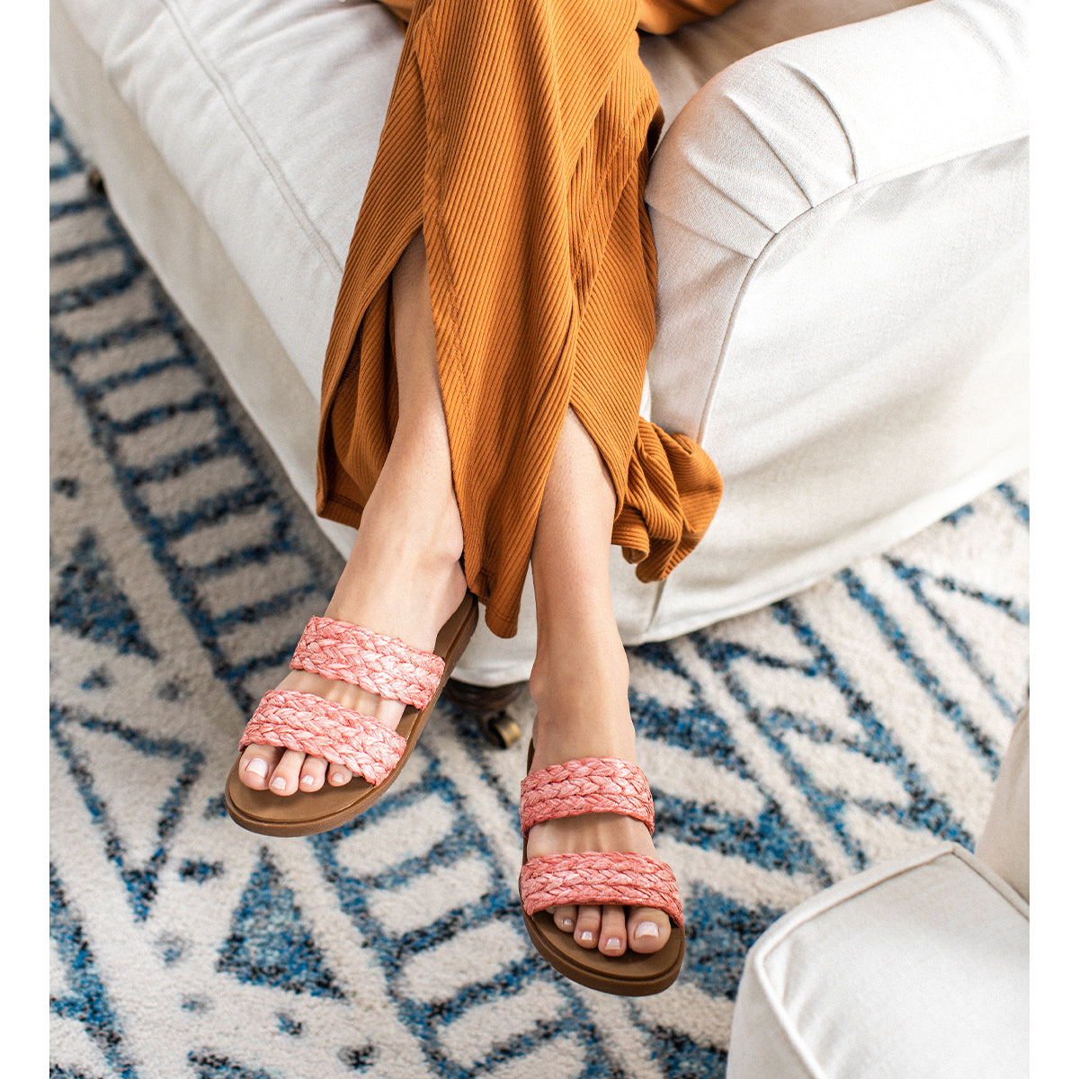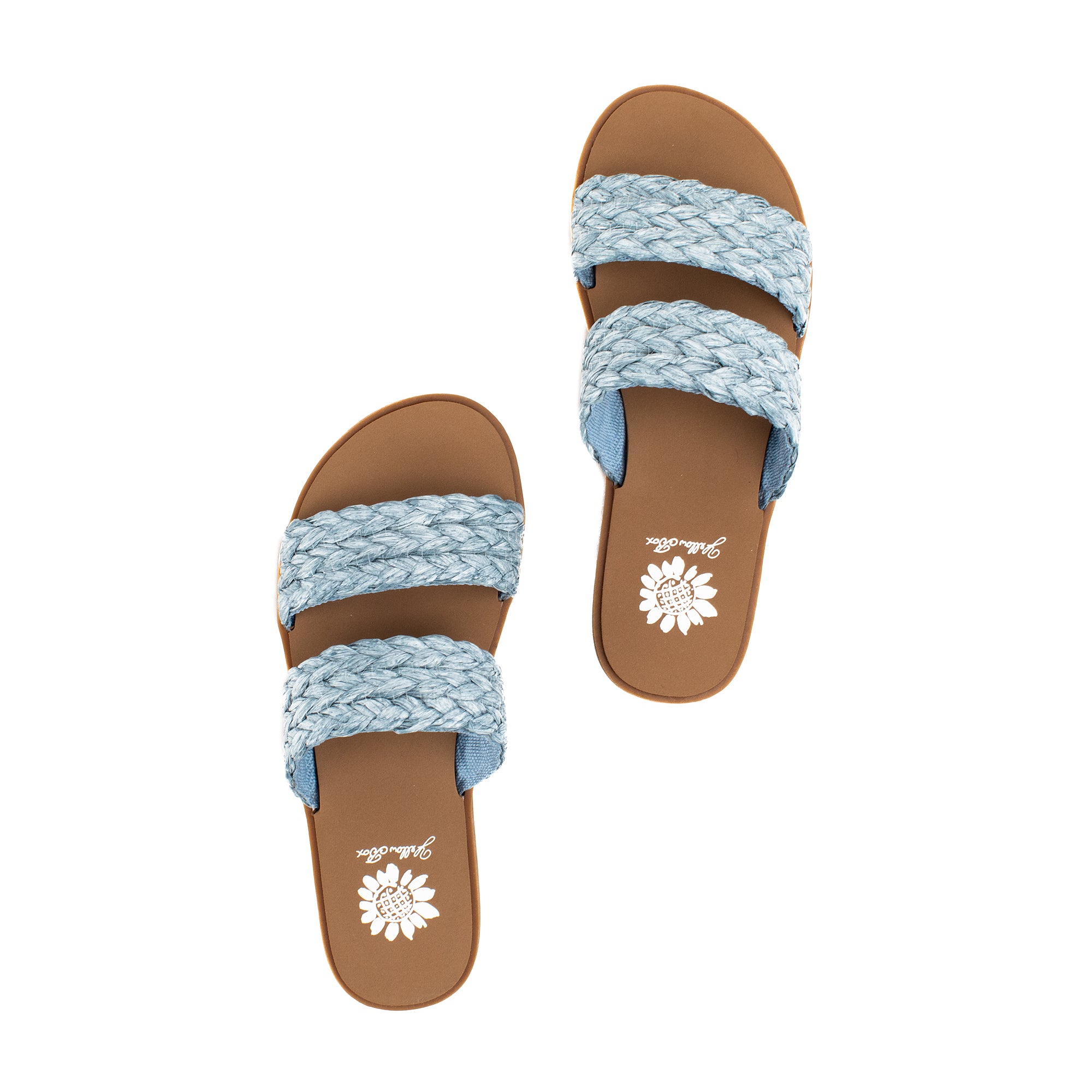 Feel the tropical vibe in your new favorite slides with braided raffia style straps. The FILBERT sandals can take you to the store or take you to Hawaii with our Signature Yellow Box EVA footbeds.