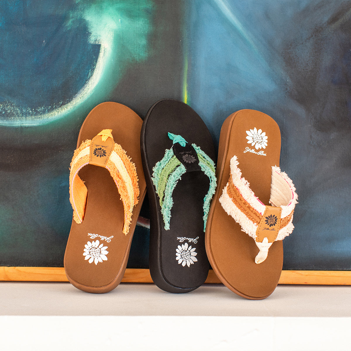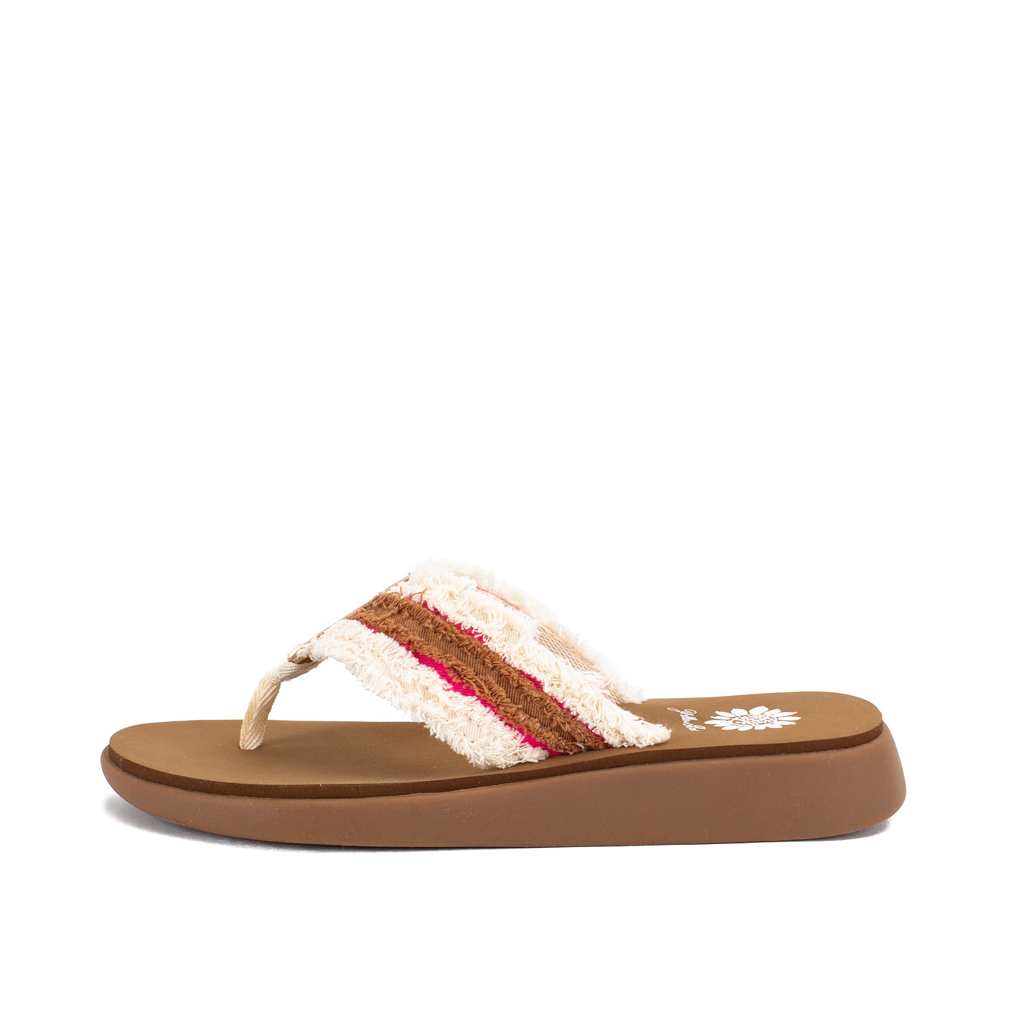Get beach-ready in our fun, frayed, and multicolored GILBERT flip-flops. This sandal bottom has a wide-toe shape, providing a comfy and roomy silhouette for any summer outing.
