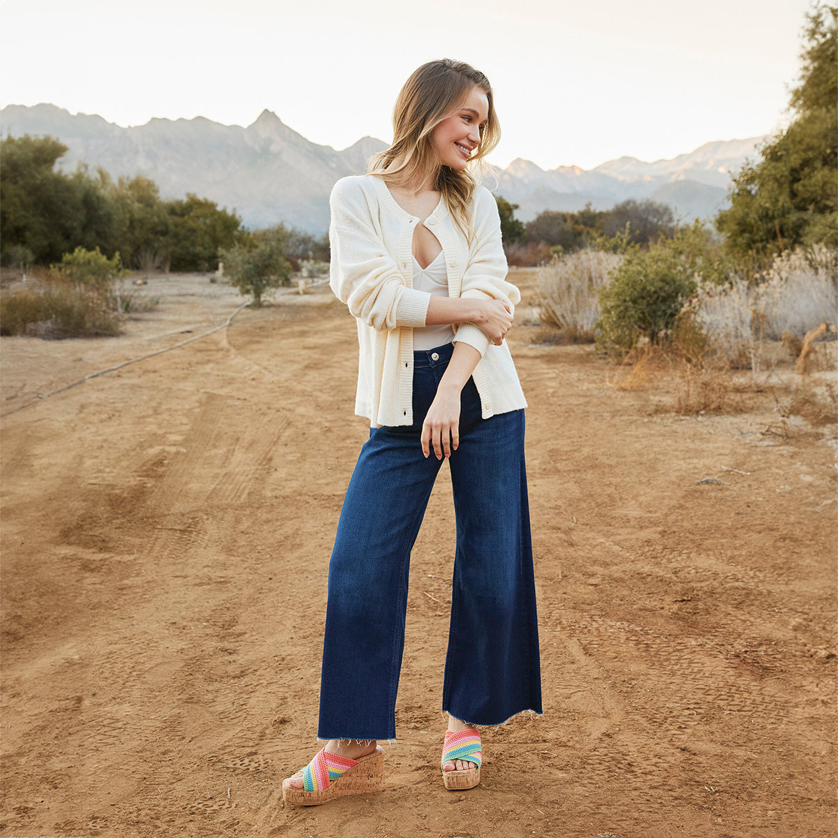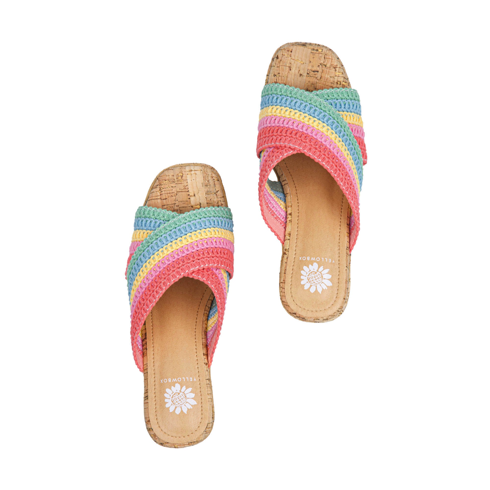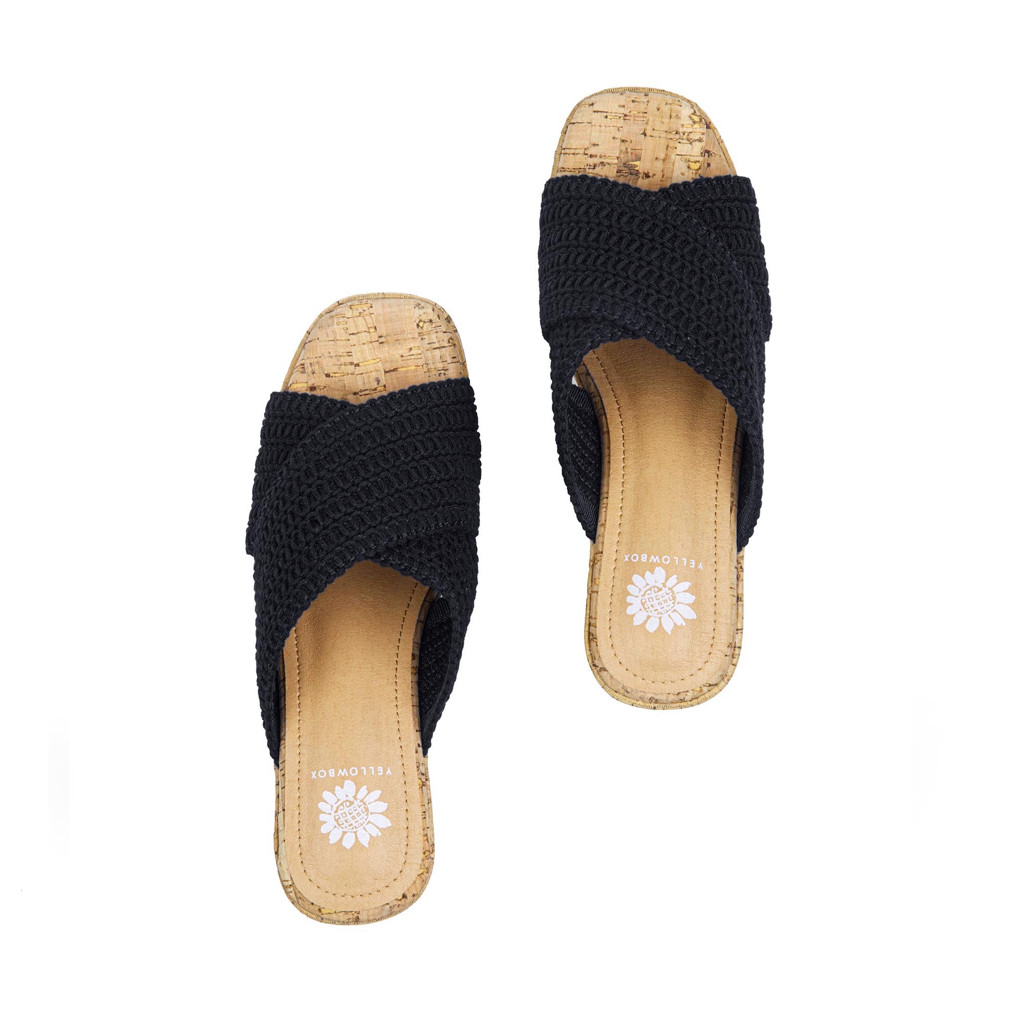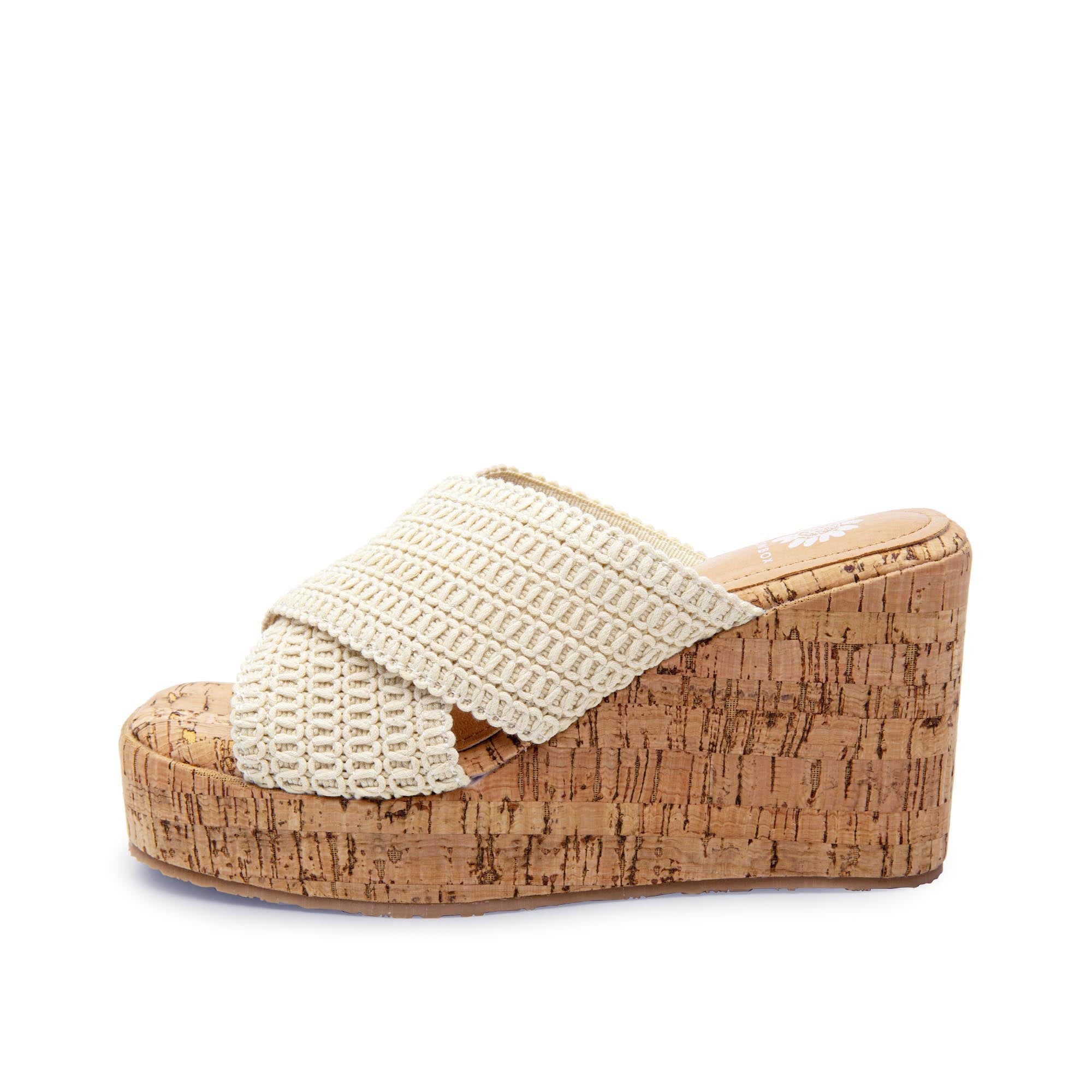 Take your style to new heights with the HALVA wedge sandal. Constructed with criss-cross straps for a secure fit, this sandal also features a cork-wrapped platform wood bottom for added support and a bold look.