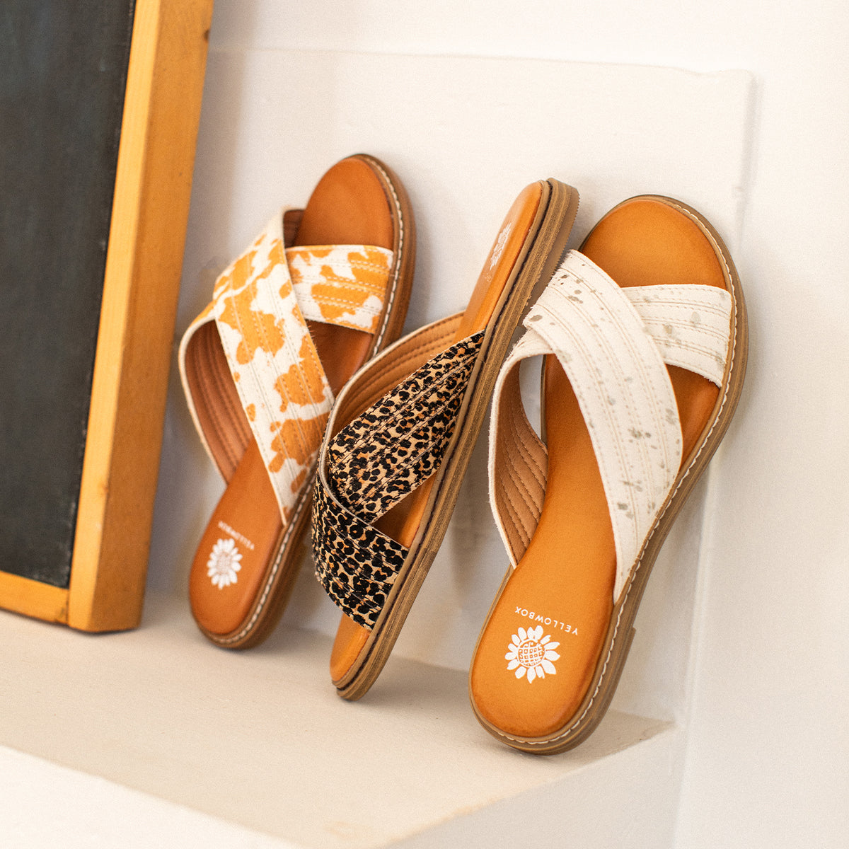 Step out in style with our LINTA flat-slide sandals. Featuring genuine leather and animal-print crossband straps, these sandals are perfect for adding a Western touch to your outfit.