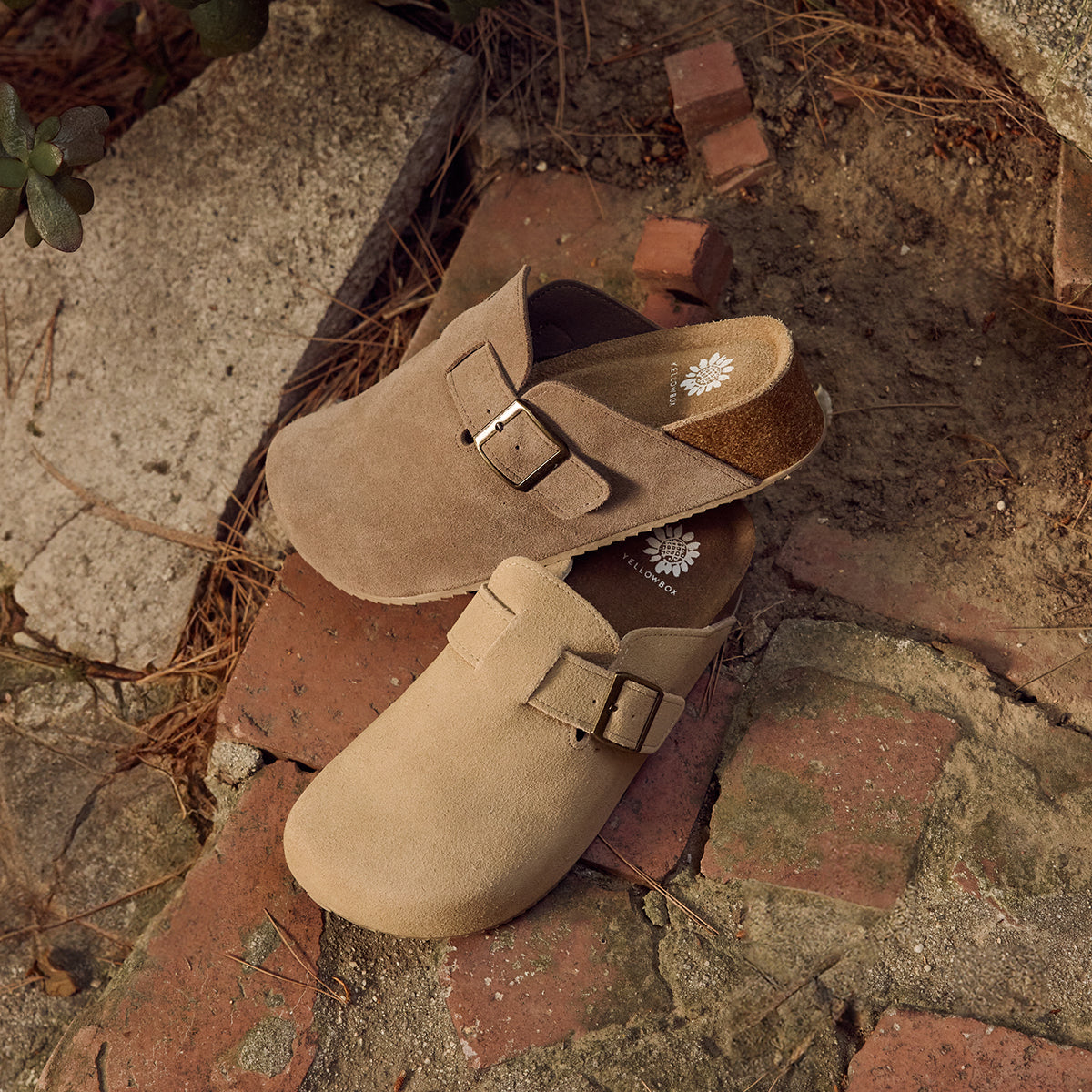 Elevate your style with our MAIRE flatform clog, featuring a genuine cow suede upper and a lightweight cork-mix sole for all-day comfort.
