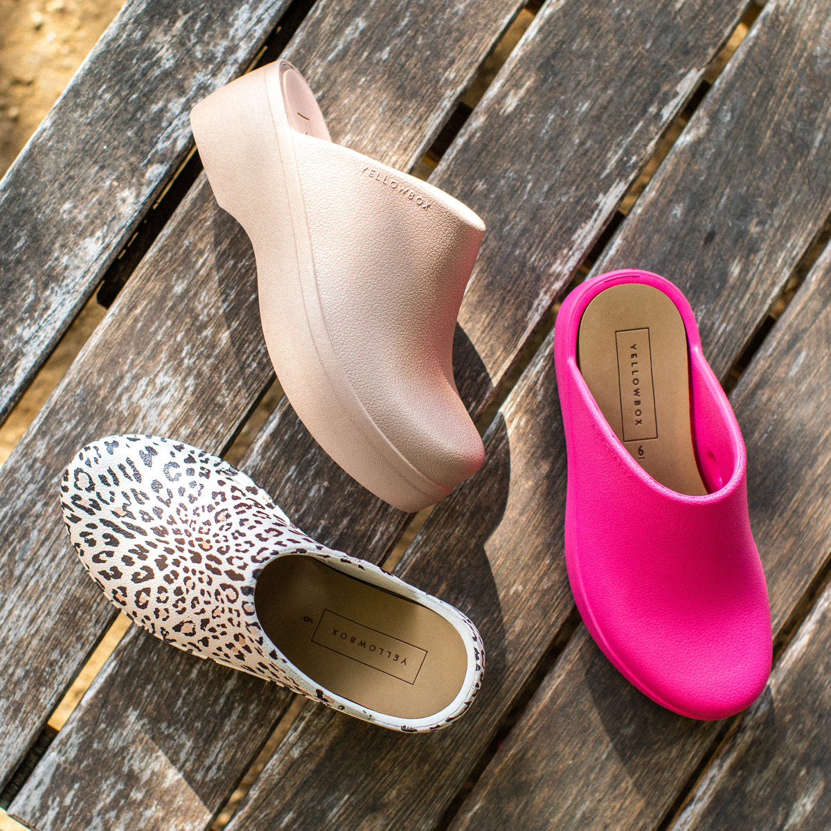 Look no further, we have remade the best looking "ugly shoe trend" out there. The ZIPPY clogs are made from our custom molded EVA, featuring a mild platform for extra lift and bounce, and inset with our signature Yellow Box EVA footbed. It's lightweight, water-resistant like regular "garden clogs", but ours are padded under the foot with the same feel as our flip-flops. Comfier AND cuter is our favorite combo.