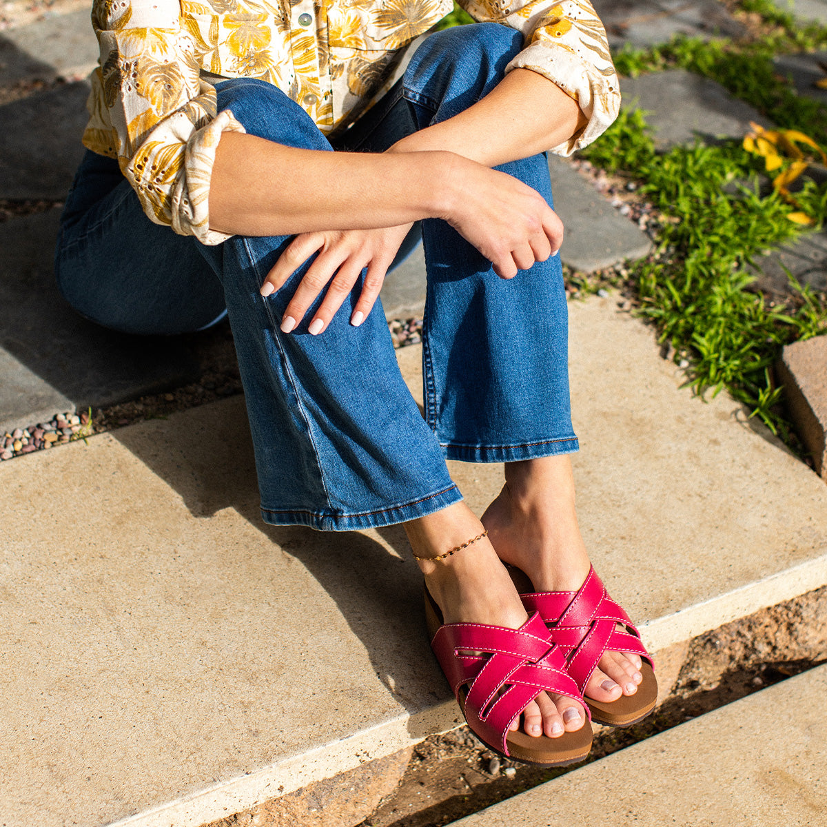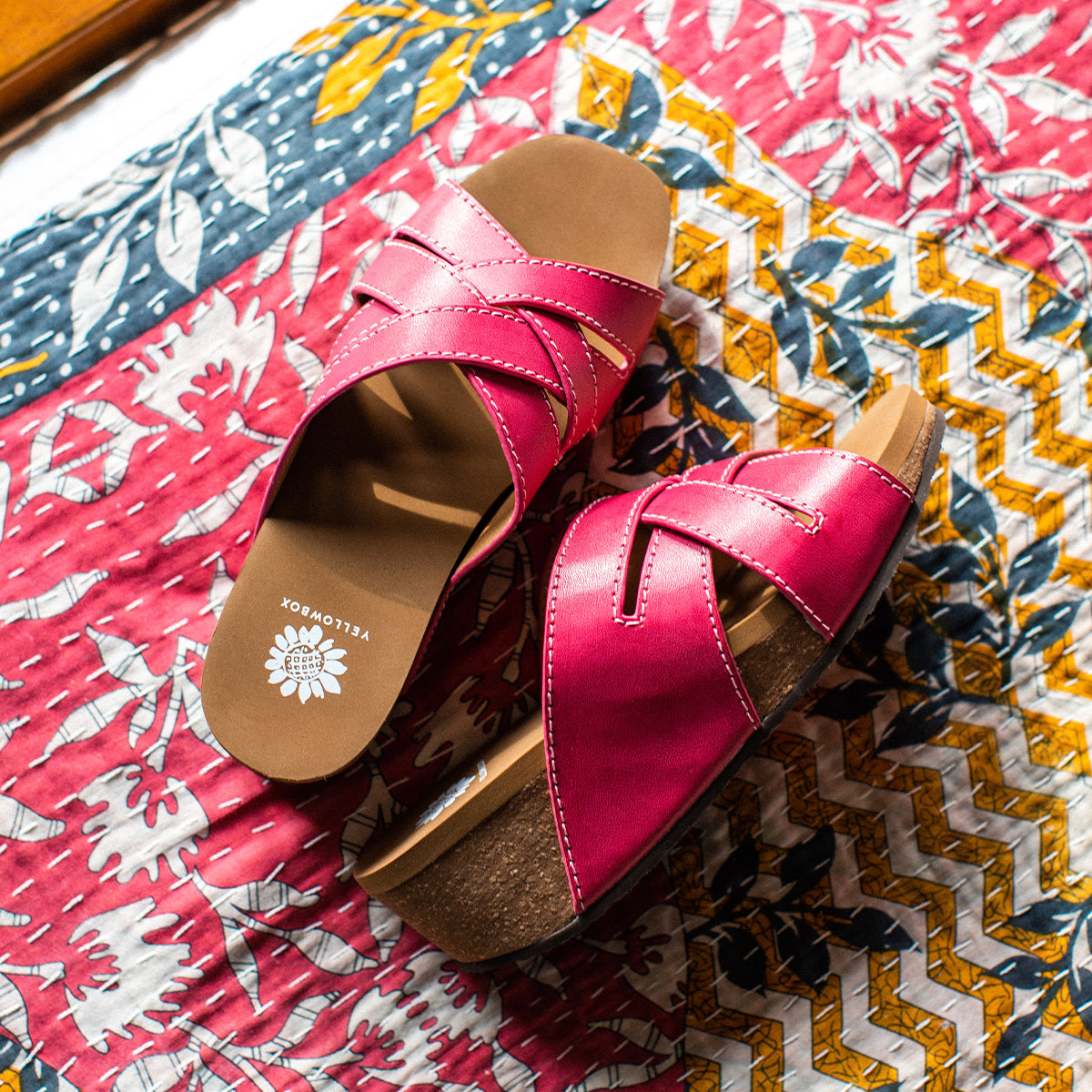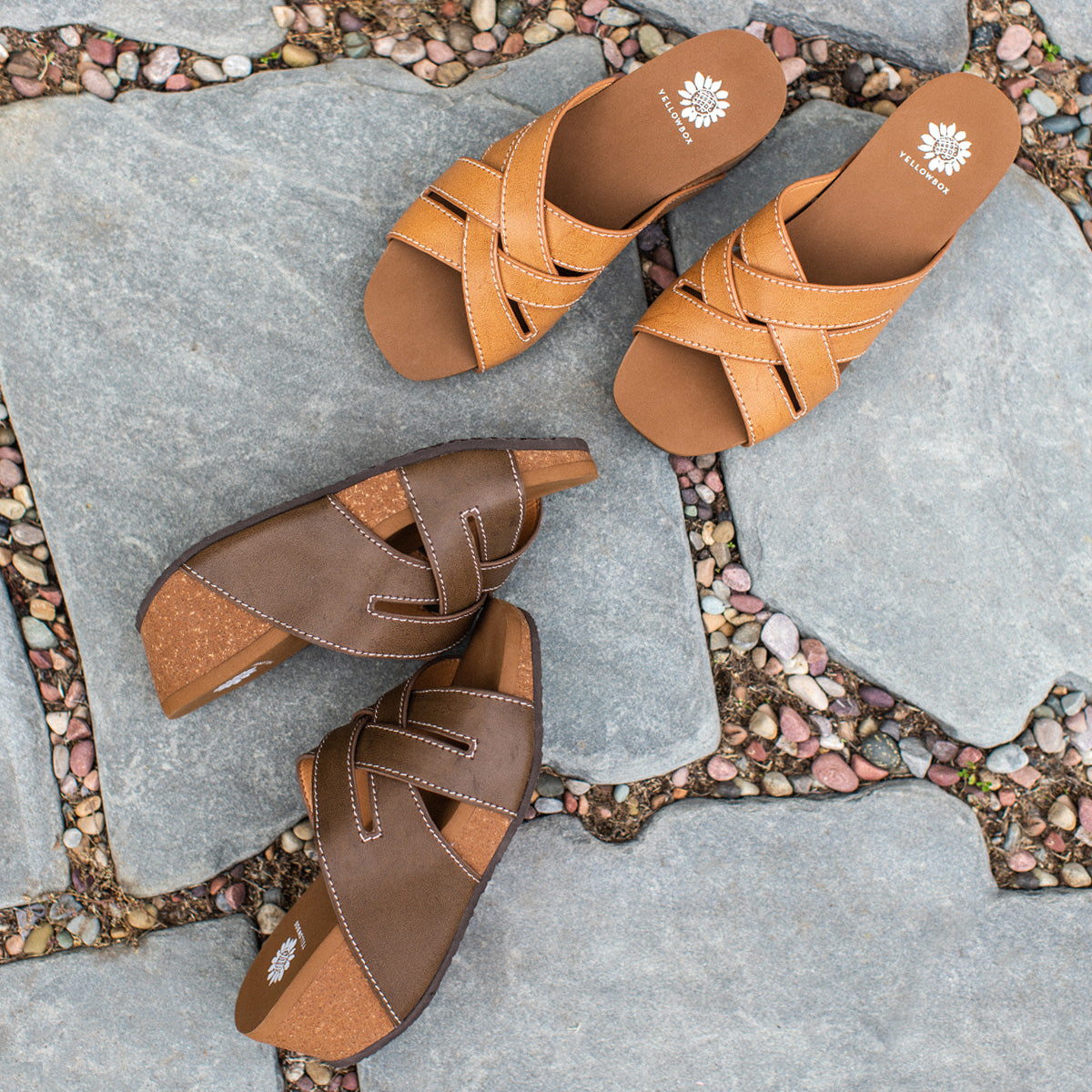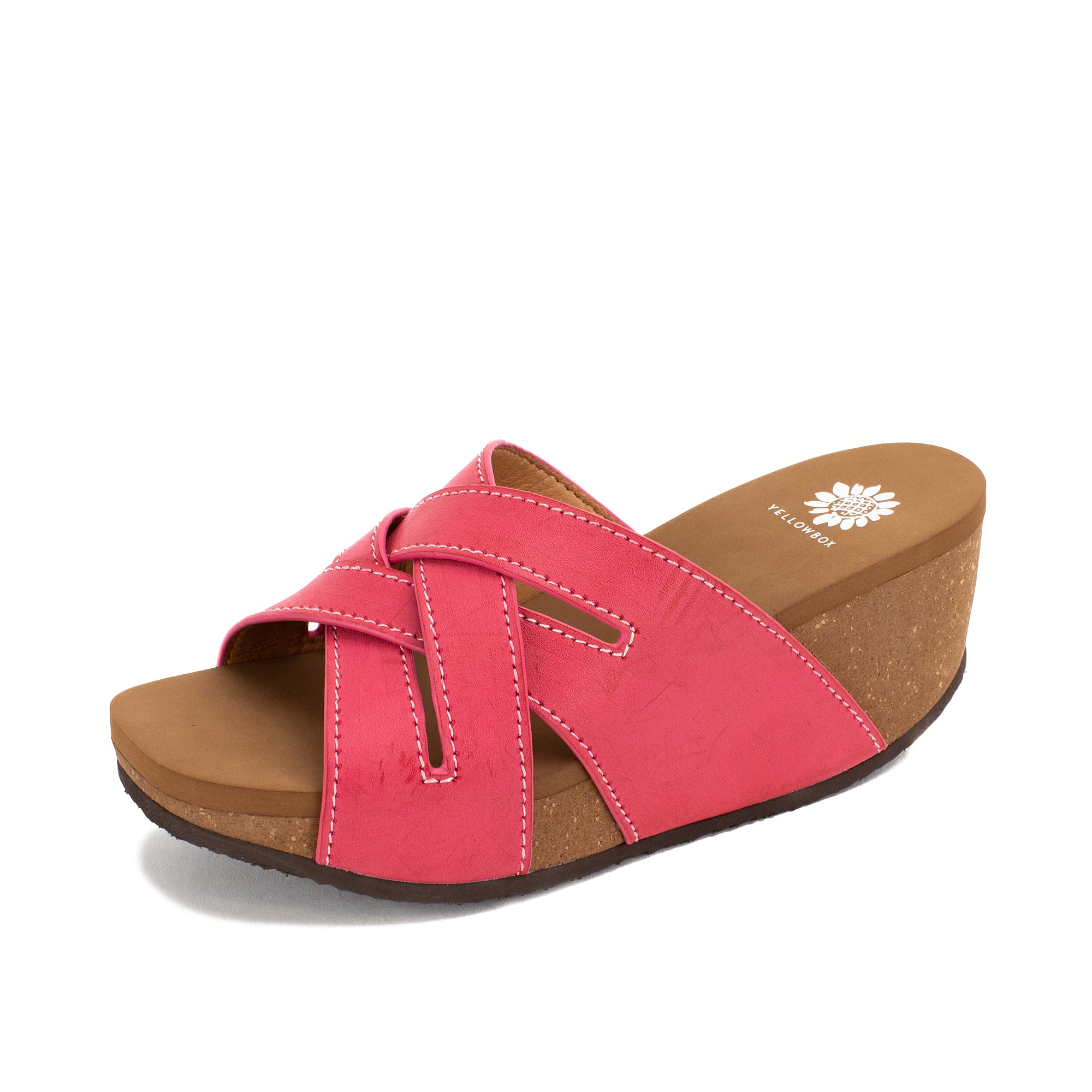 The CLEVER sandal features a new wedge shape in our popular hybrid sandal collection. The lightweight cork wedge features a modern square toe shape, set atop with our Signature Yellow Box EVA footbed for all day comfort. This classic woven slide silhouette will make this your go-to wedge.