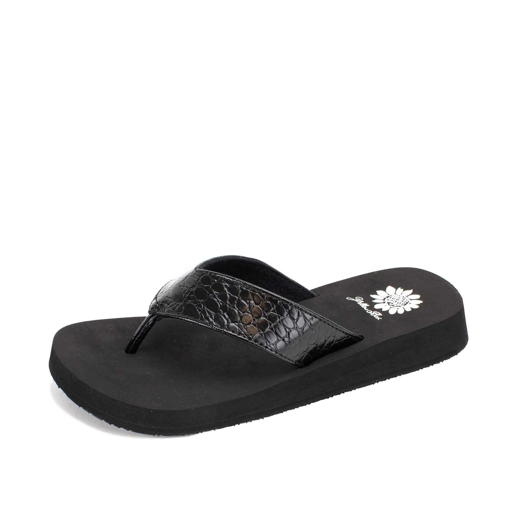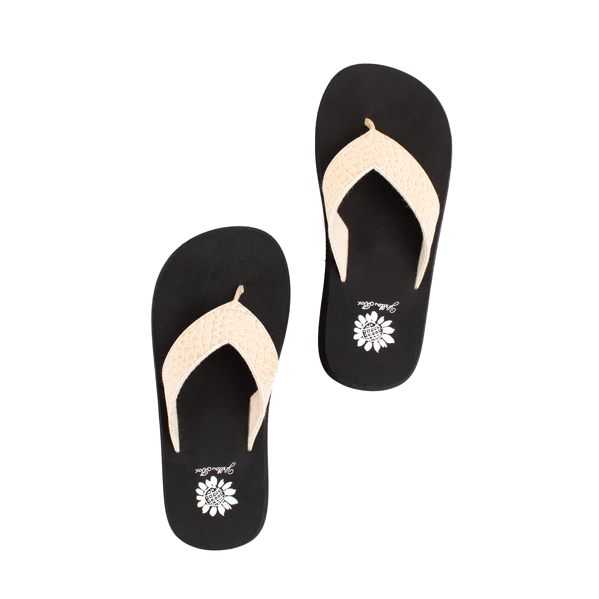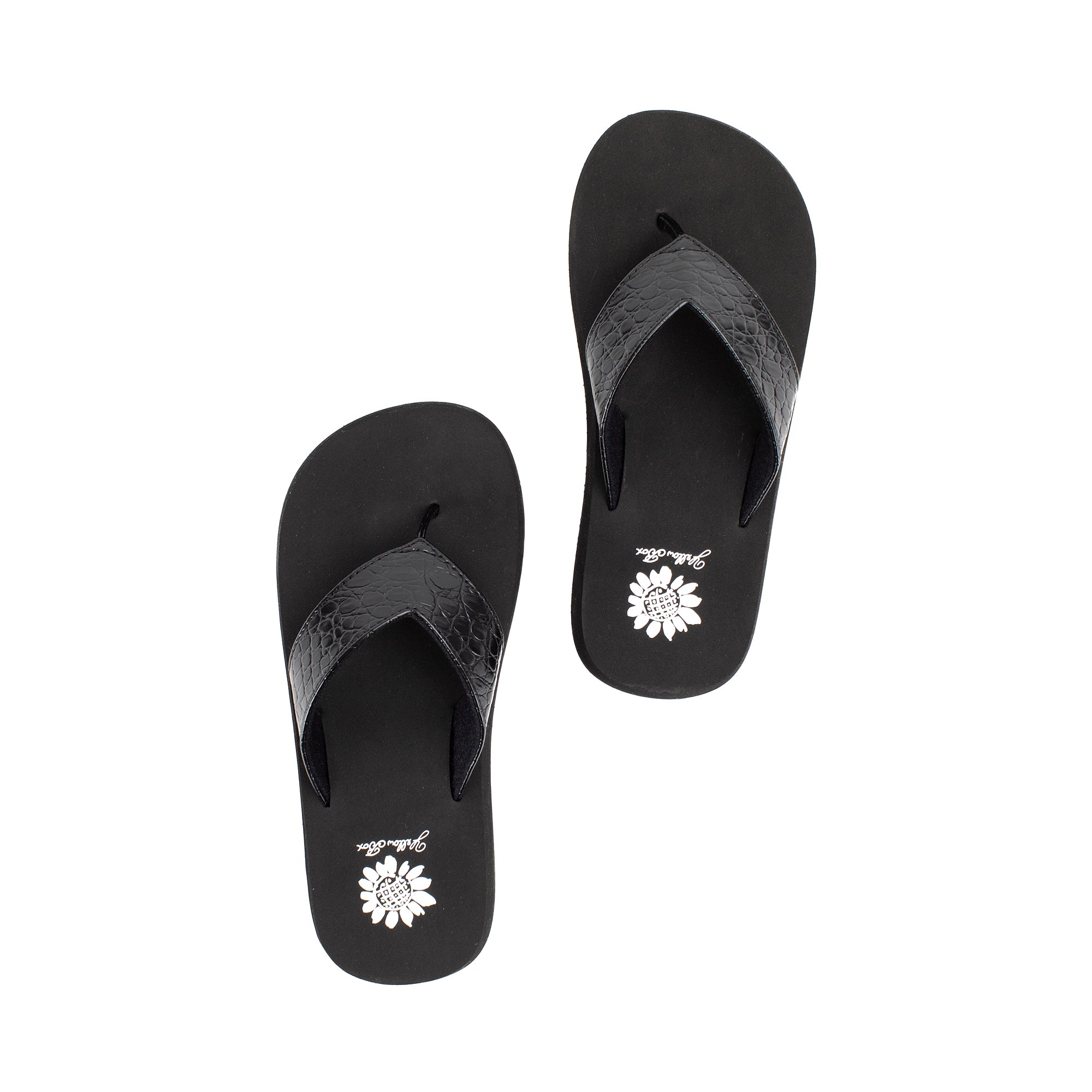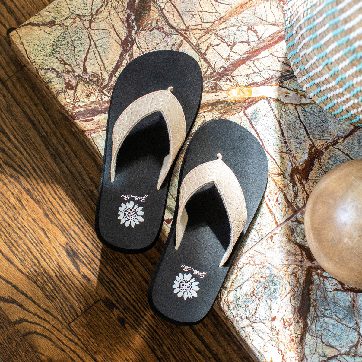 Wear a bold exotic croco in these rough and tumbled faux leather strap sandals.