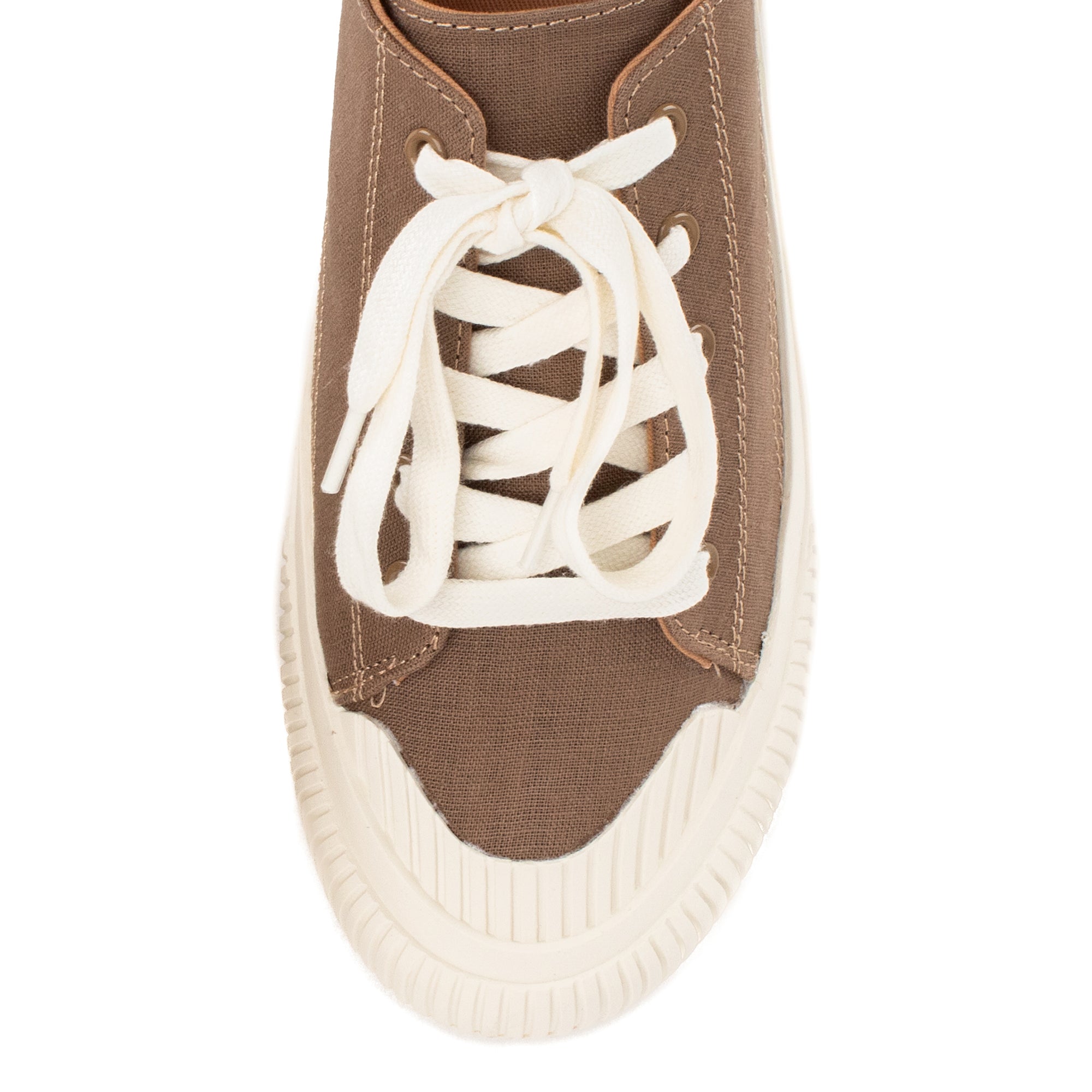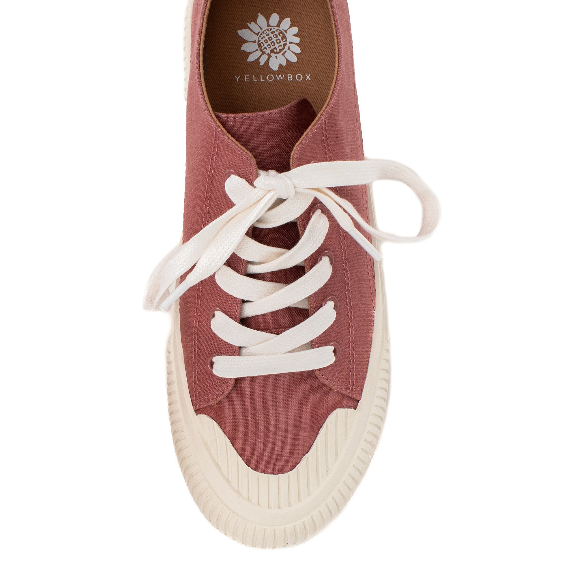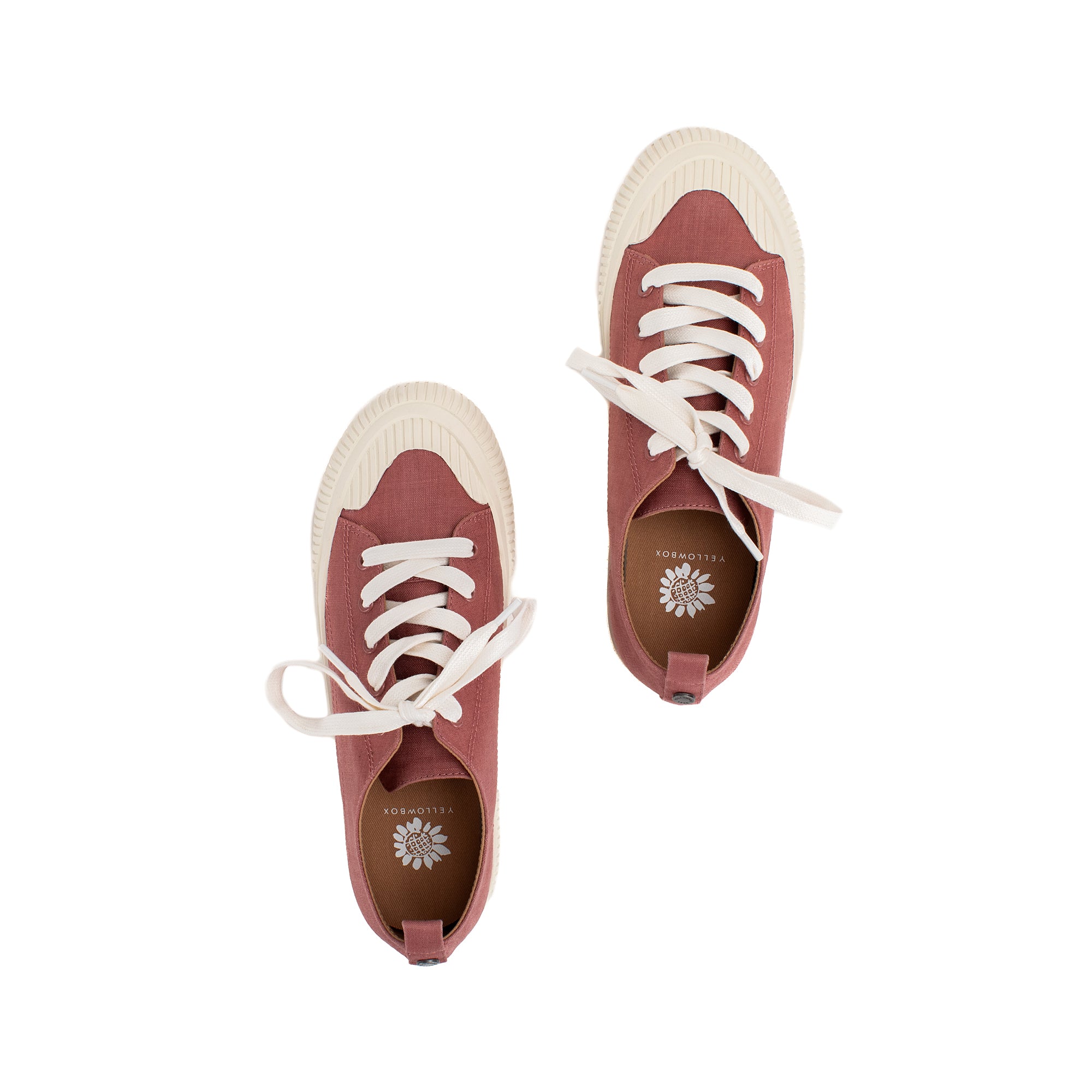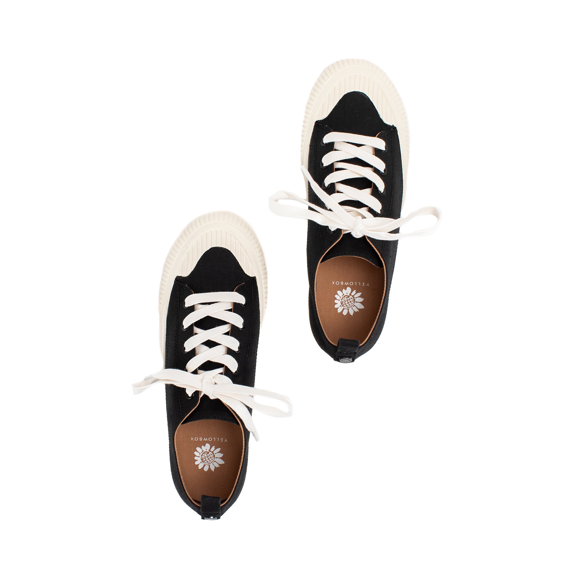 GINA is a classic minimalist low-top sneaker with a cushioned hidden wedge. The lightweight linen upper, retro toe cap, and branded stud embellishment will seamlessly complete any of your go-to outfits.