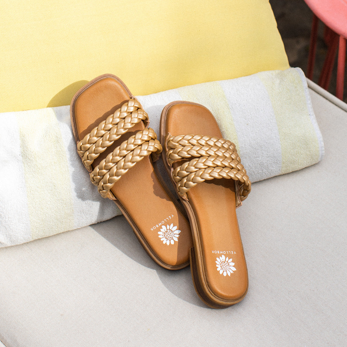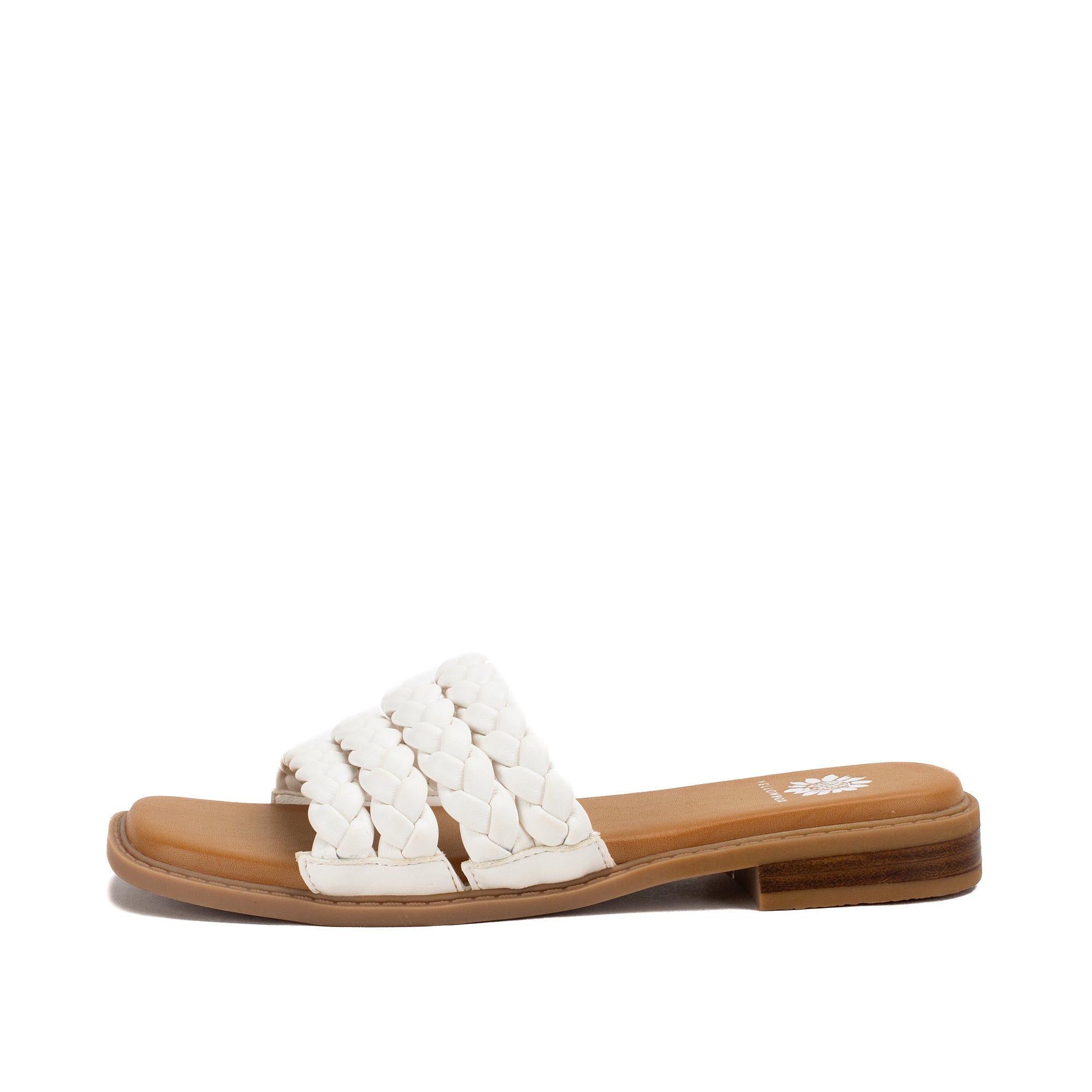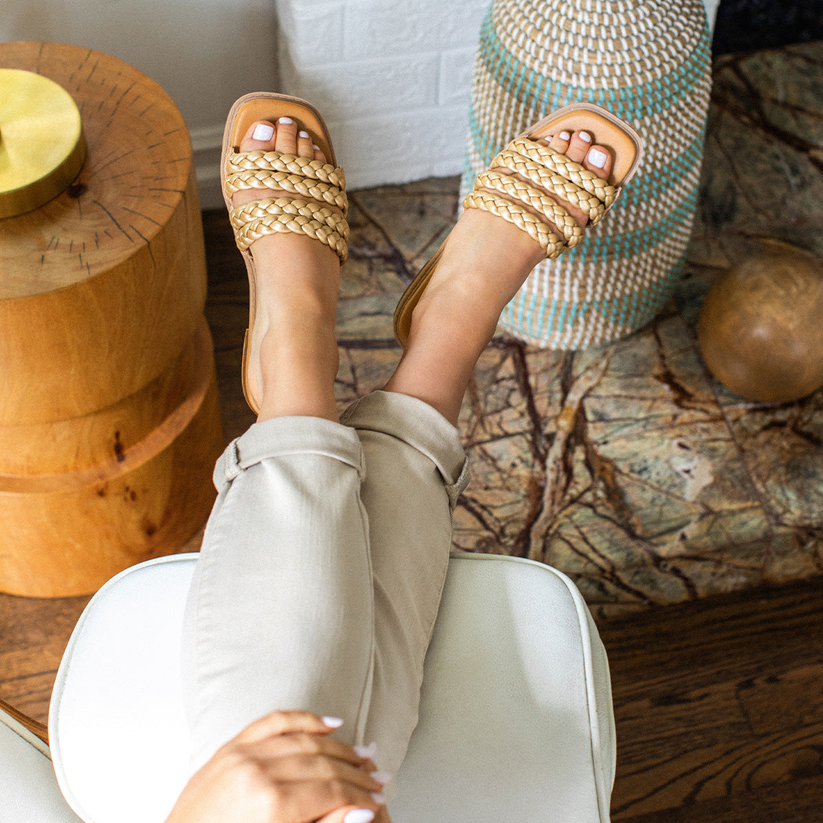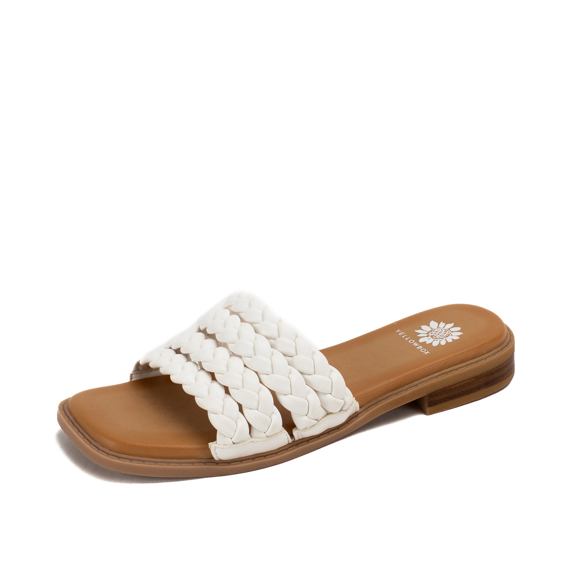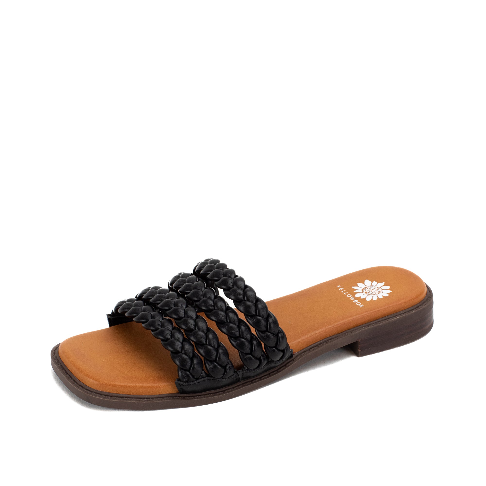 The beloved braid trend is reimagined in this multi-plaited slide sandal. The SANTAI sandals feature buttery braided straps, an ultra cushioned footbed, full squared toe shape, and a refreshing low heel.