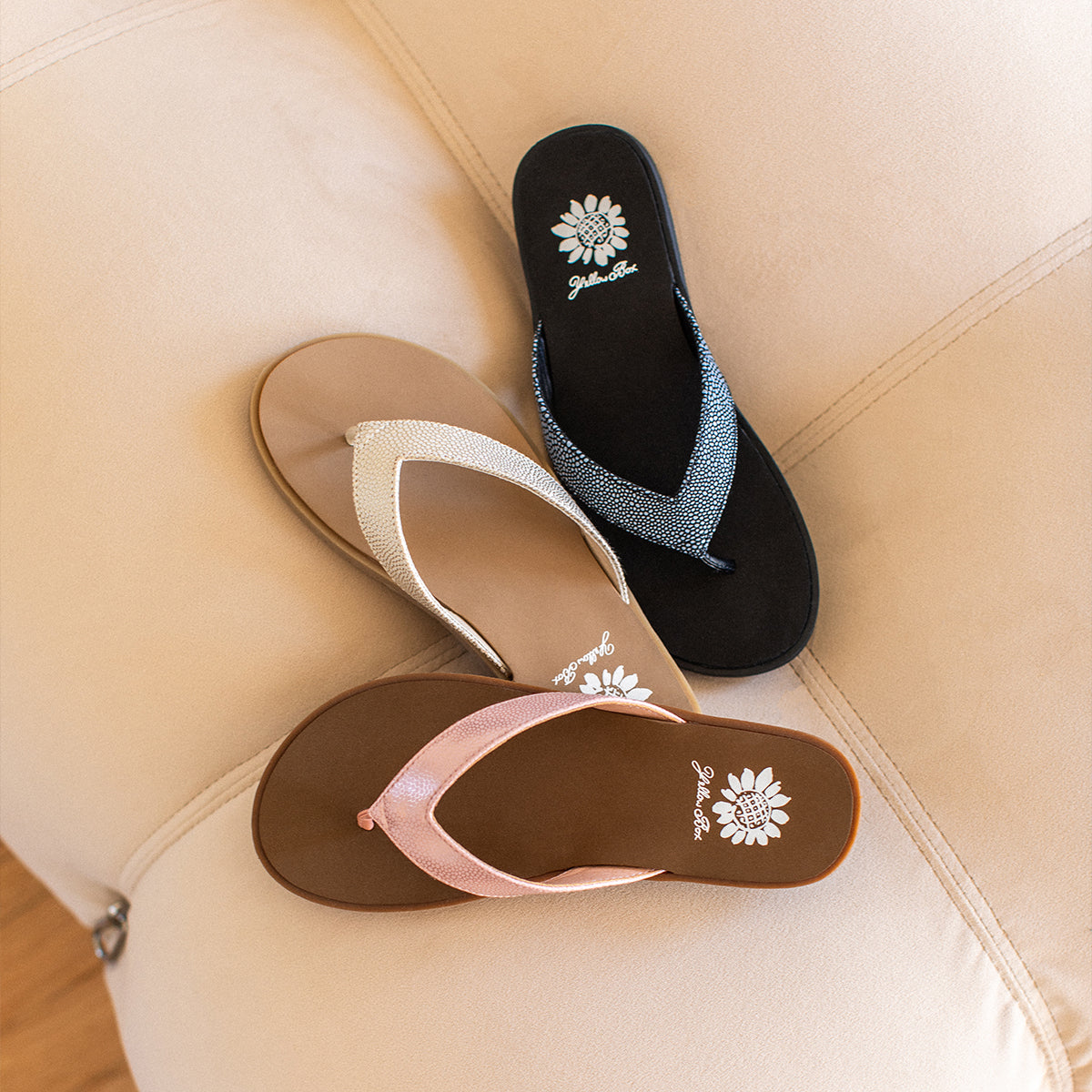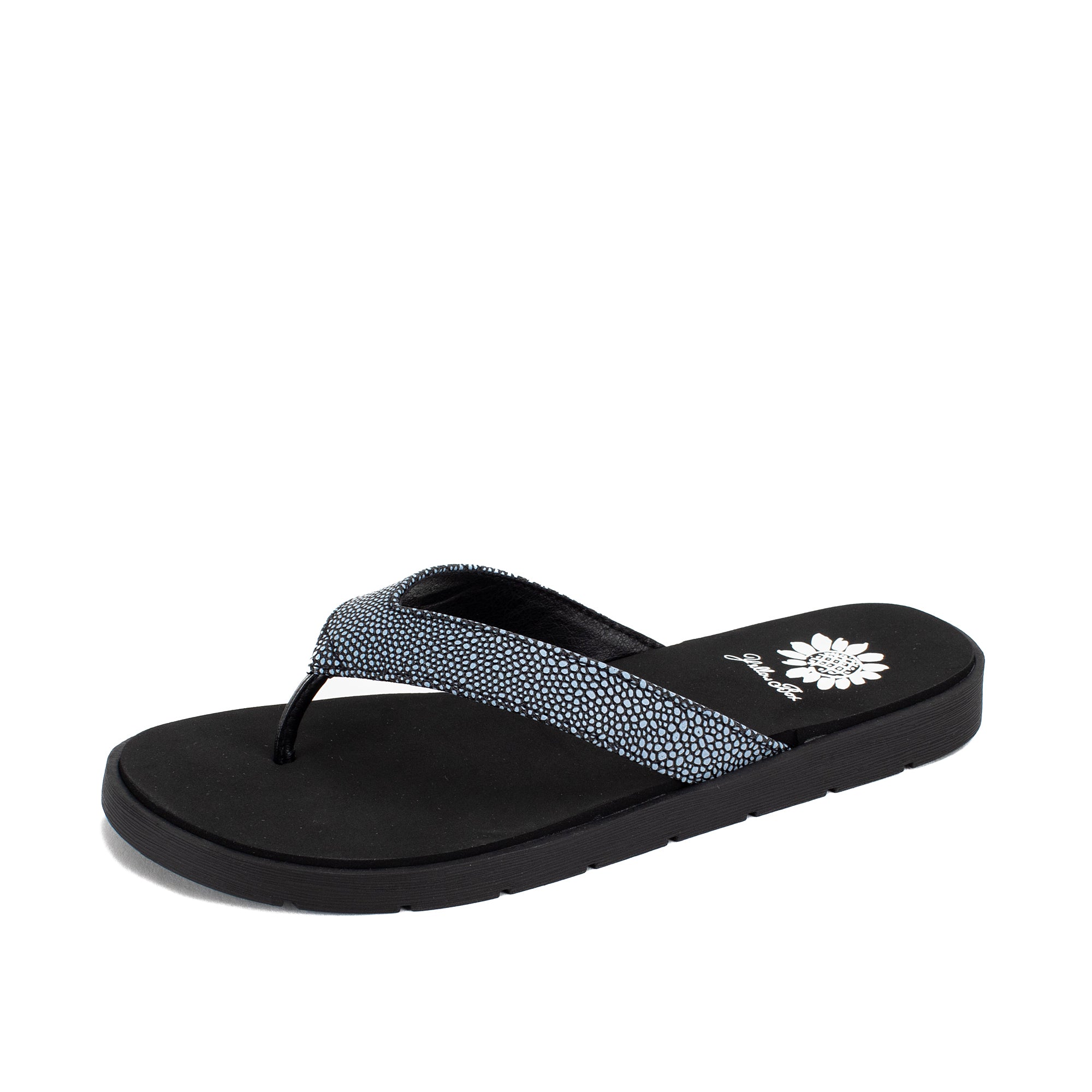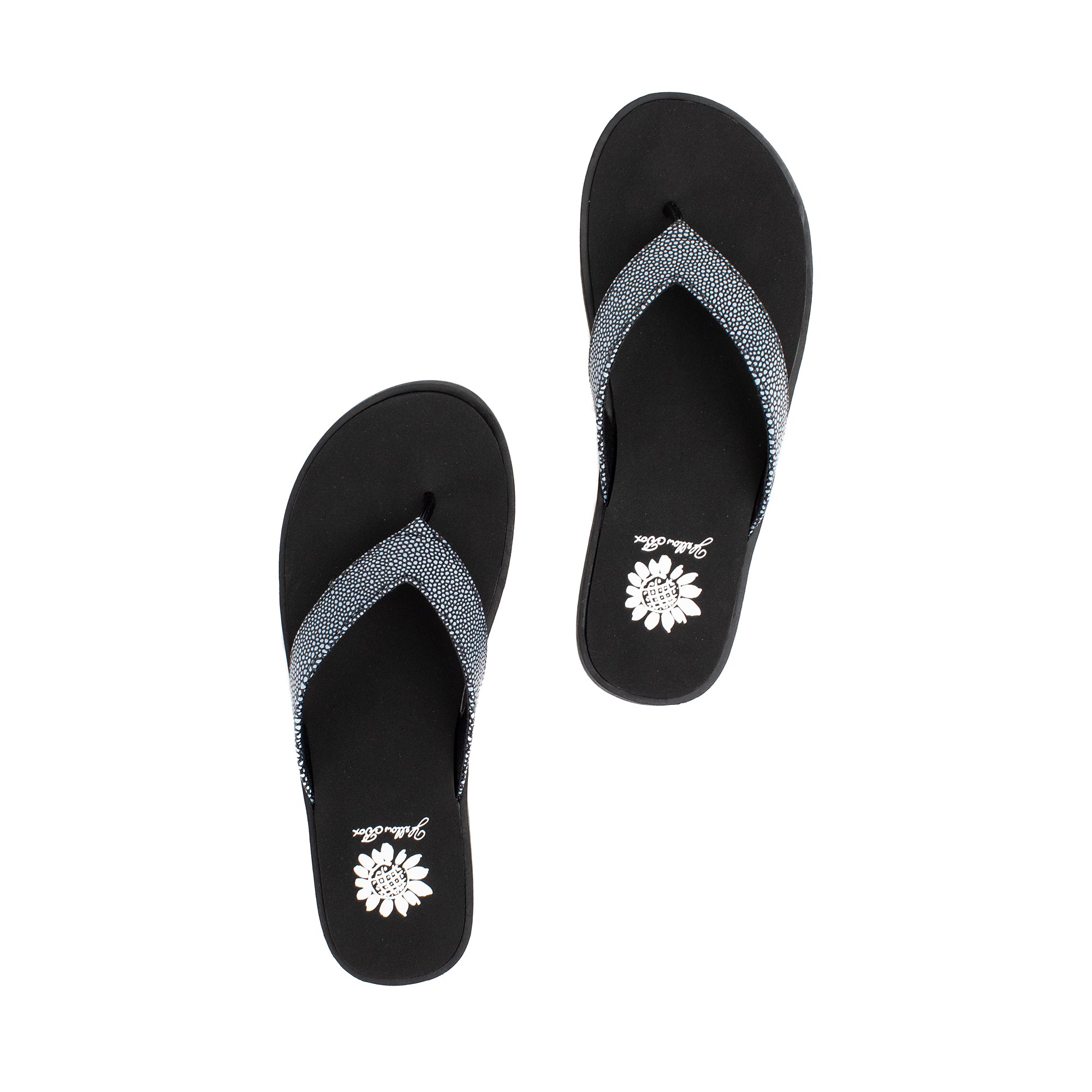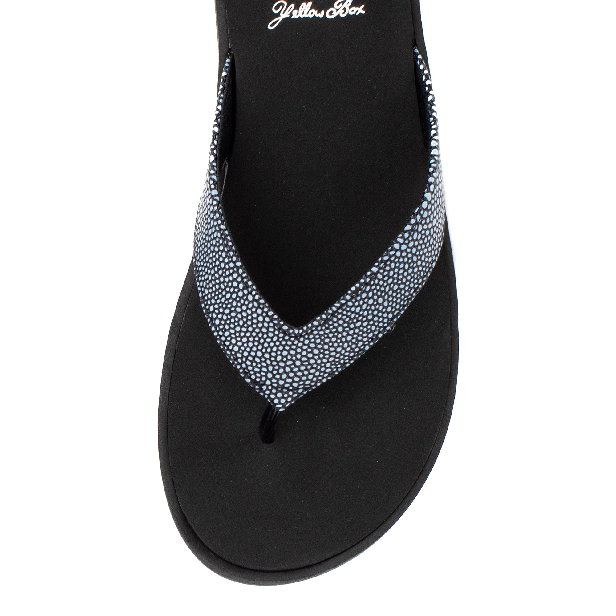 Elevate your look with FANZIE flip-flops, featuring textured "caviar" faux leather straps and a medium-width inset footbed made with Signature Yellow Box EVA.