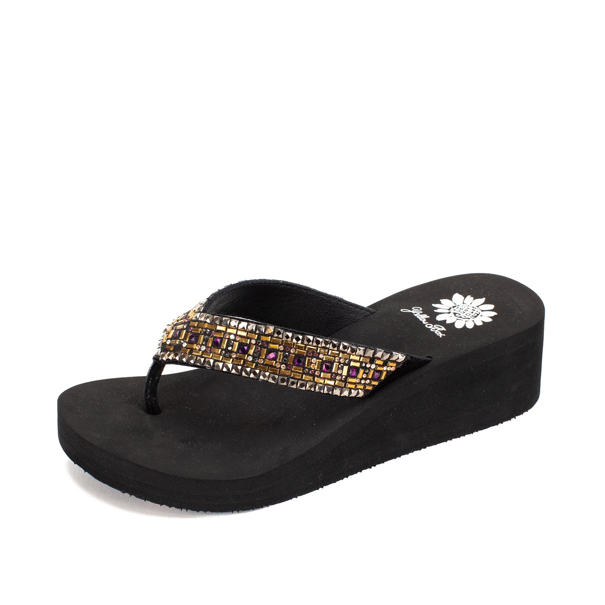 Faceted rectangular and square jewels radiate like old-world gems. The STEFFIE sandal is sure to be a new classic.