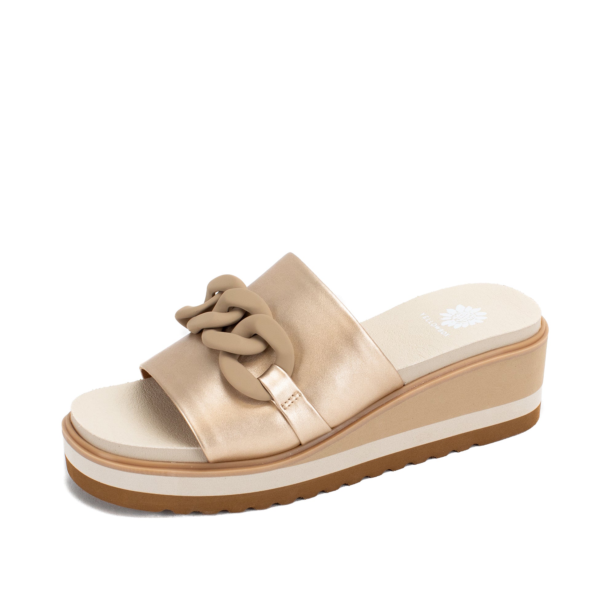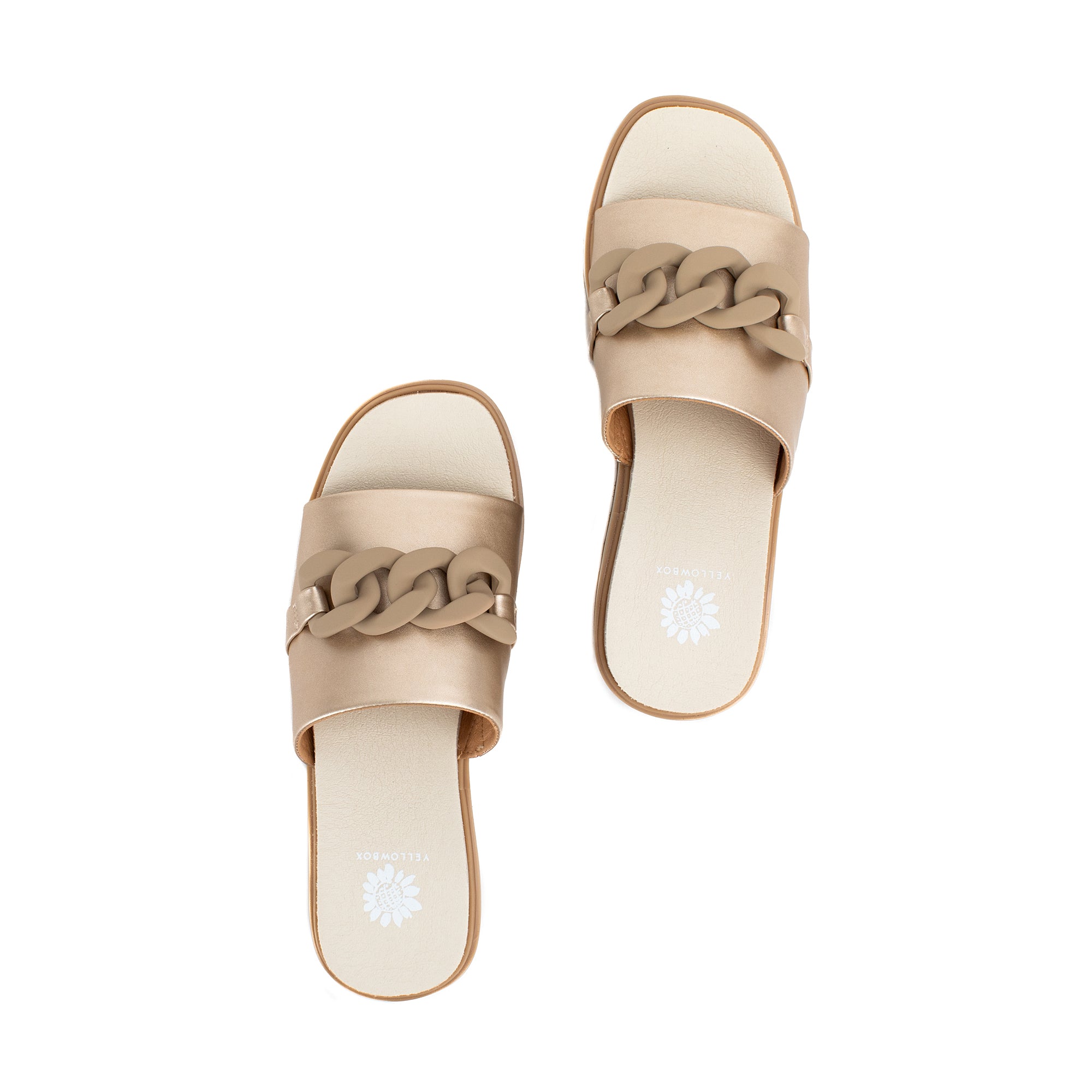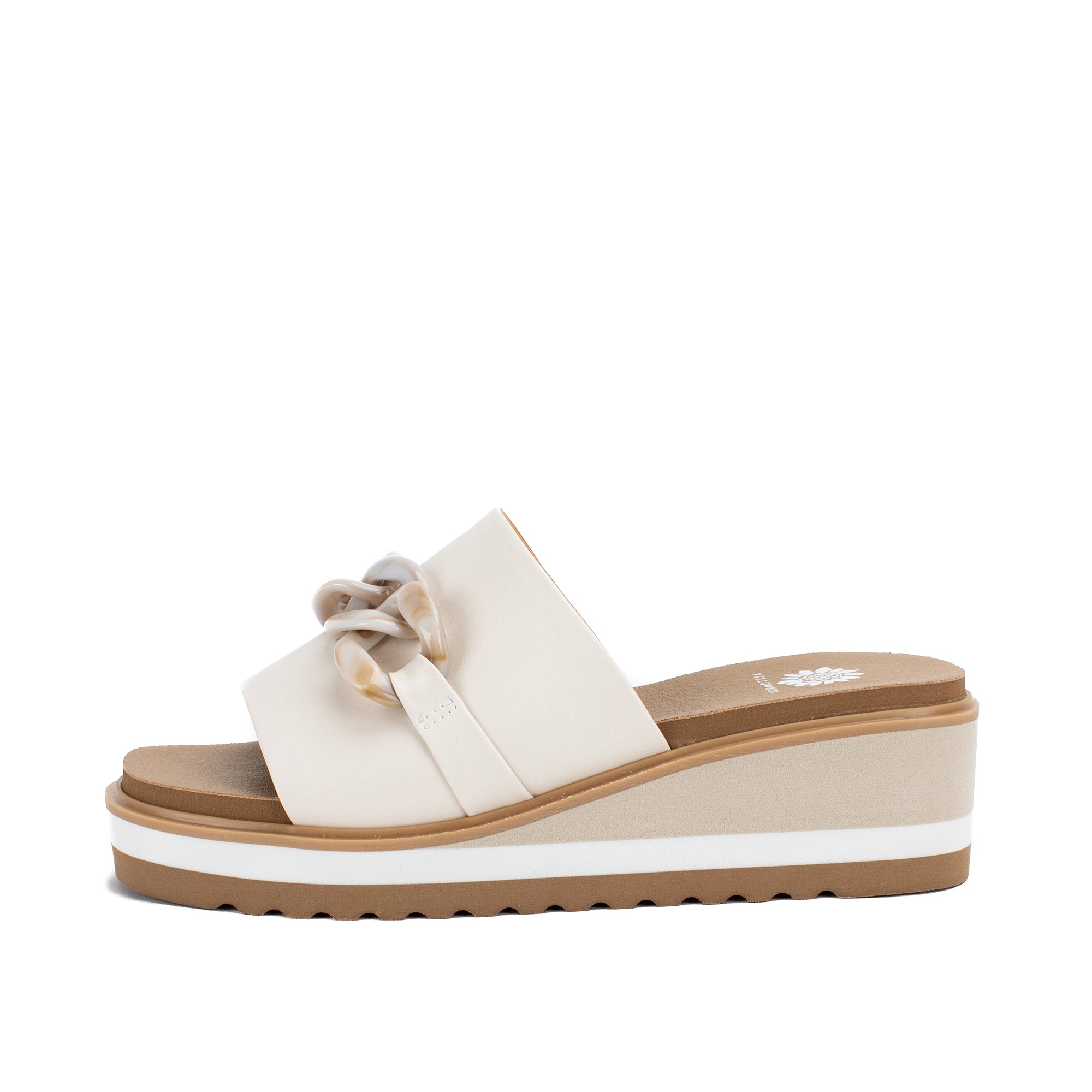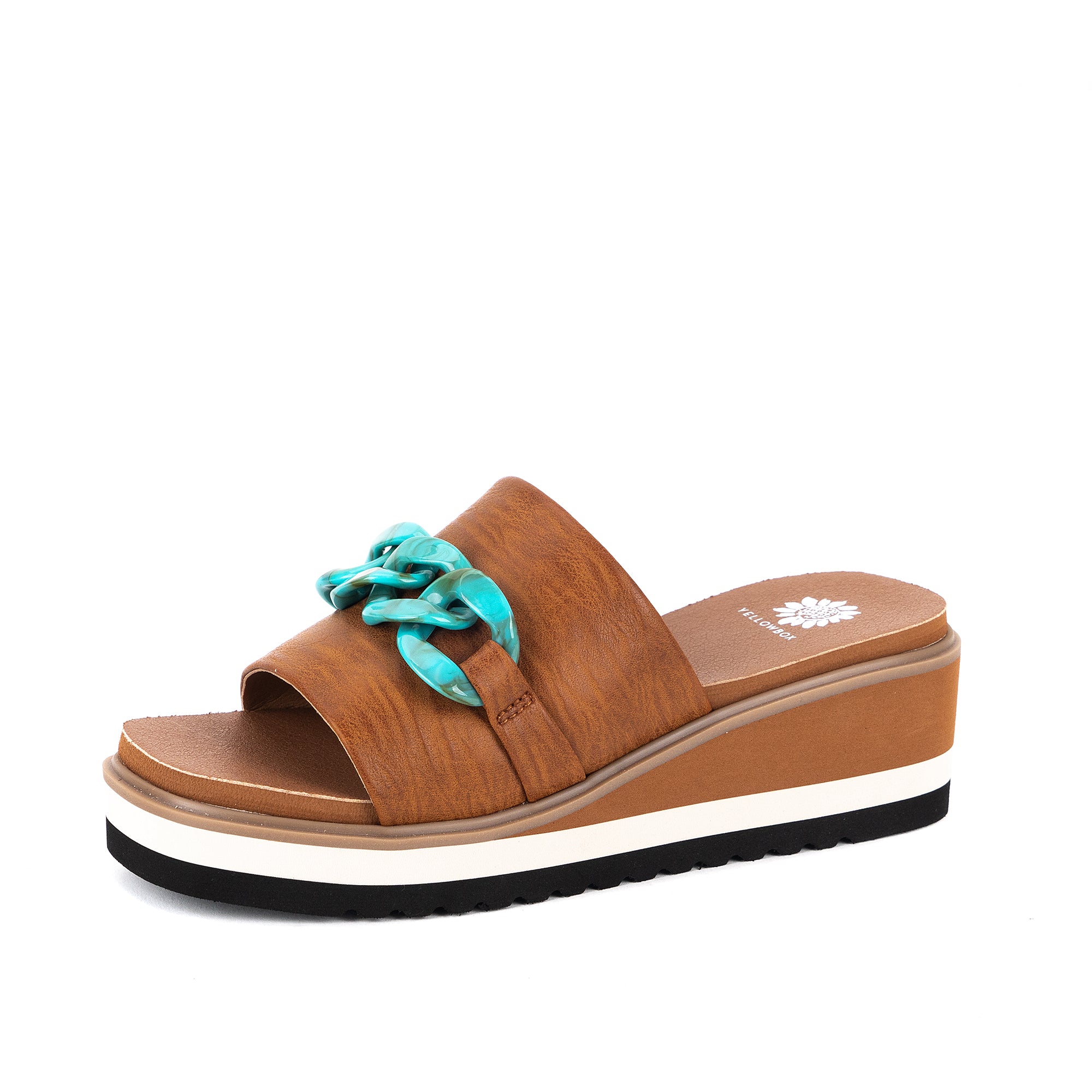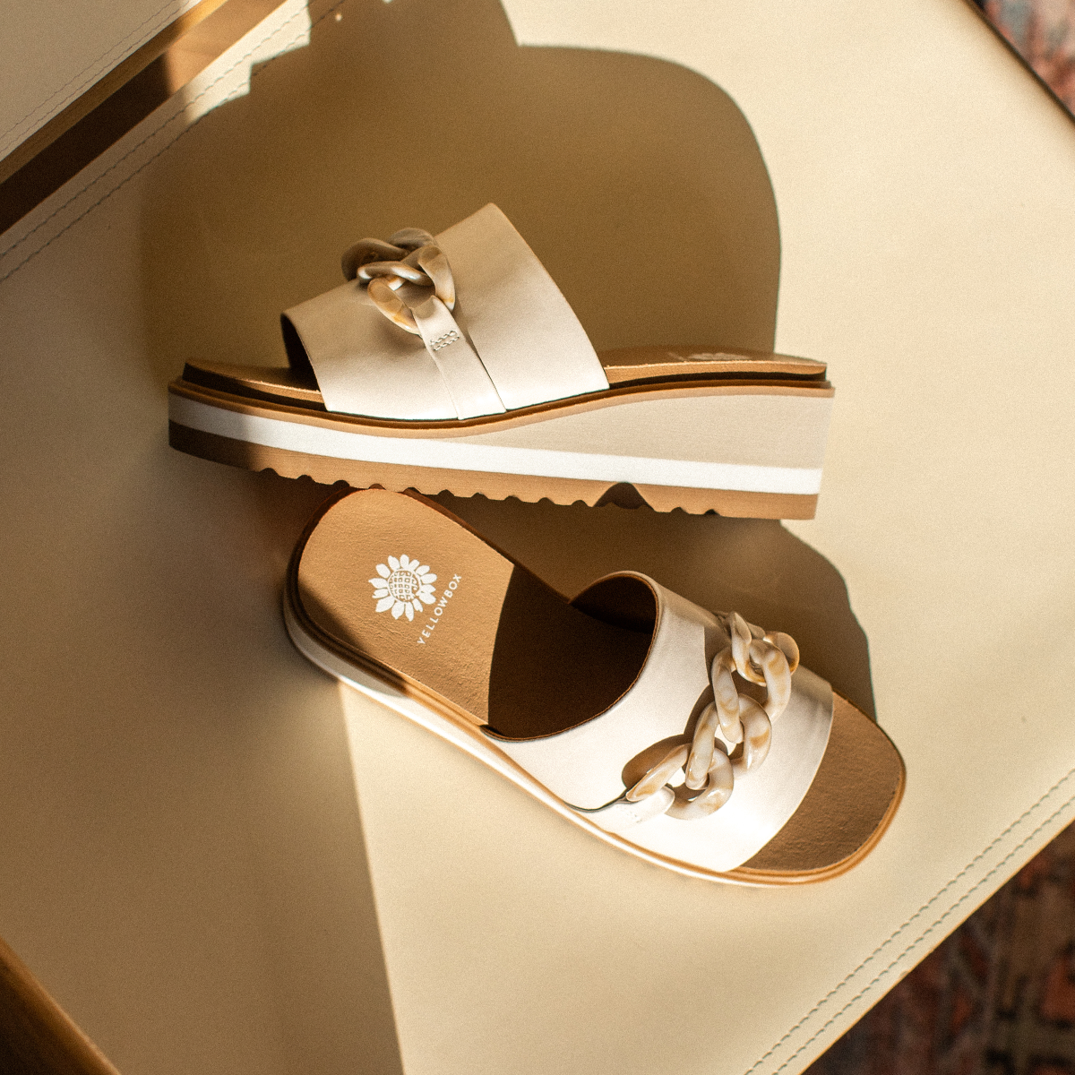 ALORA is a minimal slide sandal adorned with elegant chunky chain hardware that helps add a touch of sophistication to any outfit. ALORA features a squared toe shape and our Signature Yellow Box padding, perfect for everyday comfort.