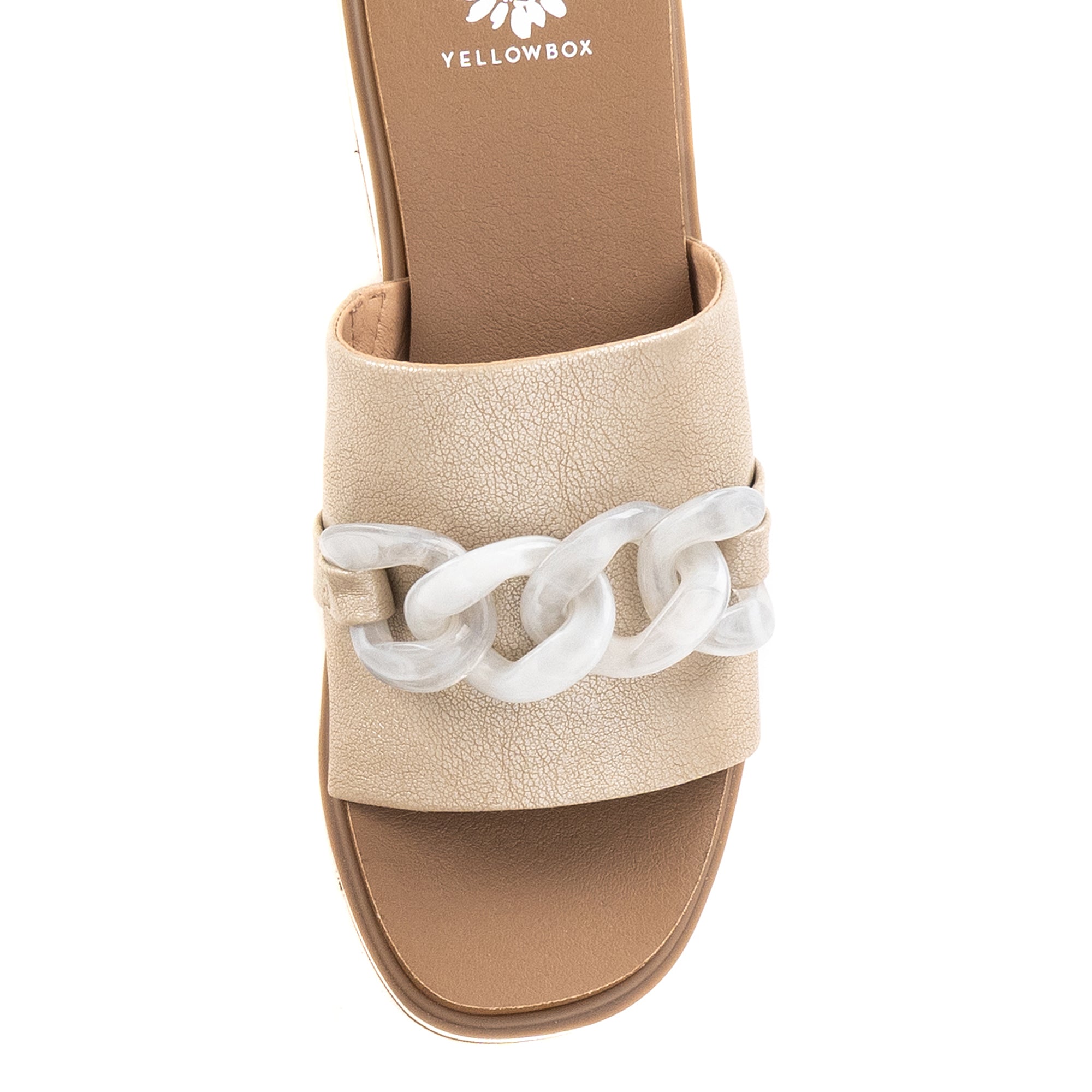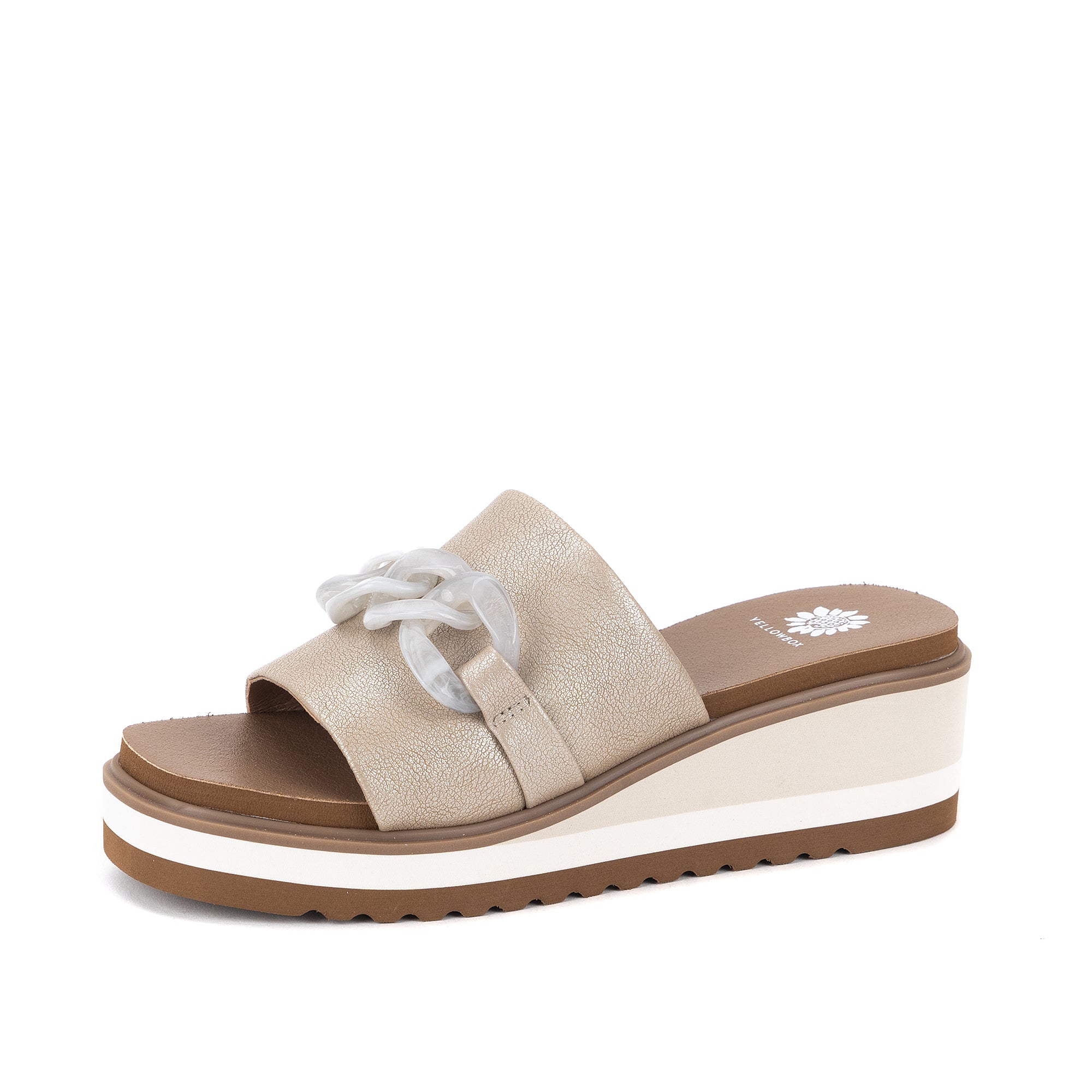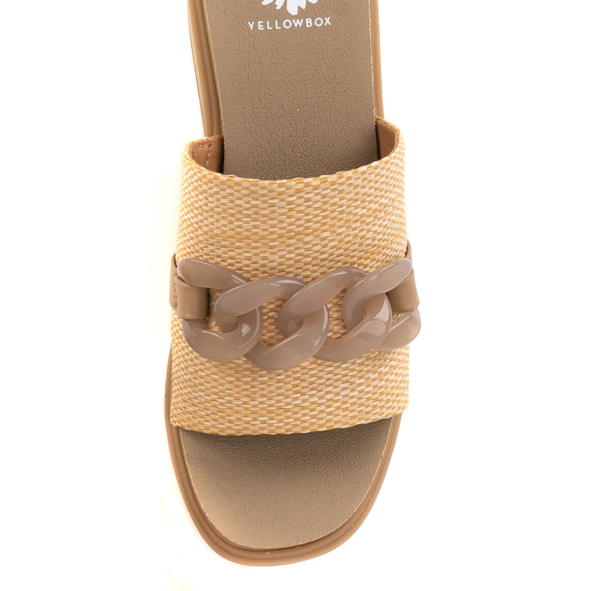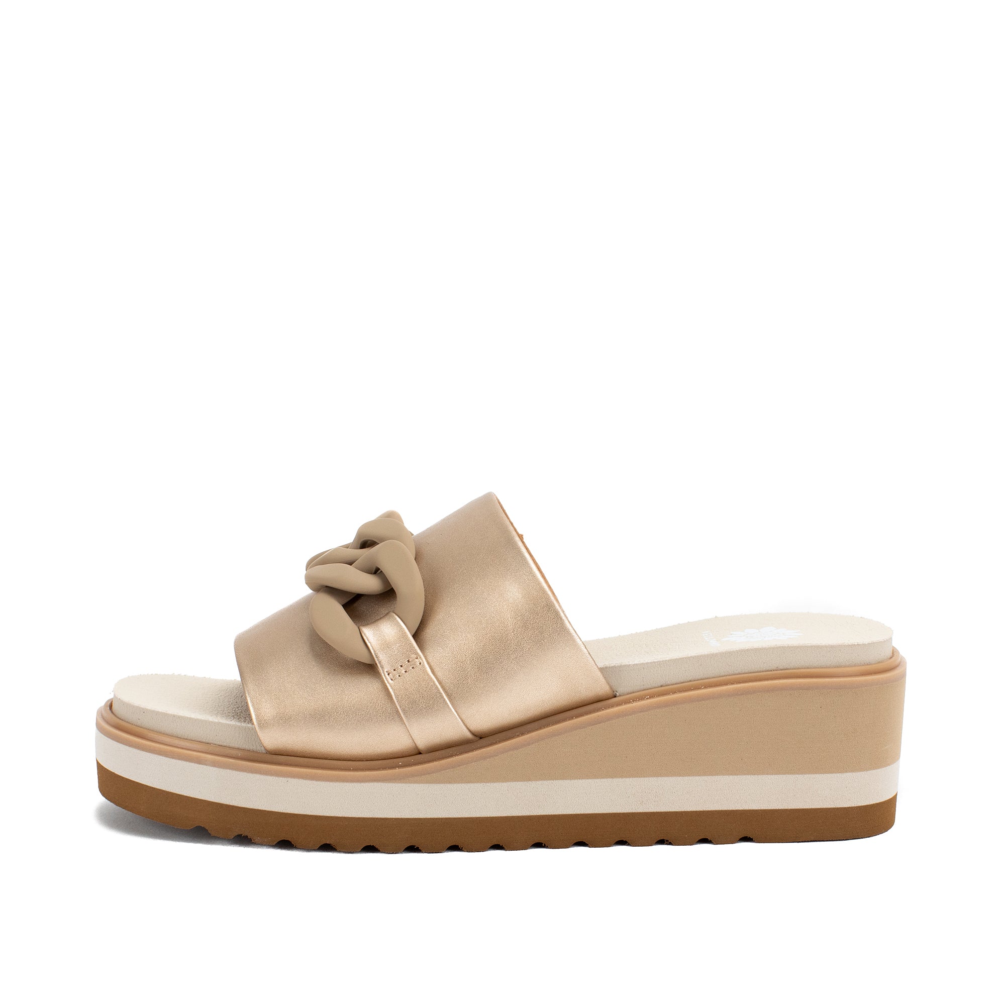 ALORA is a minimal slide sandal adorned with elegant chunky chain hardware that helps add a touch of sophistication to any outfit. ALORA features a squared toe shape and our Signature Yellow Box padding, perfect for everyday comfort.
