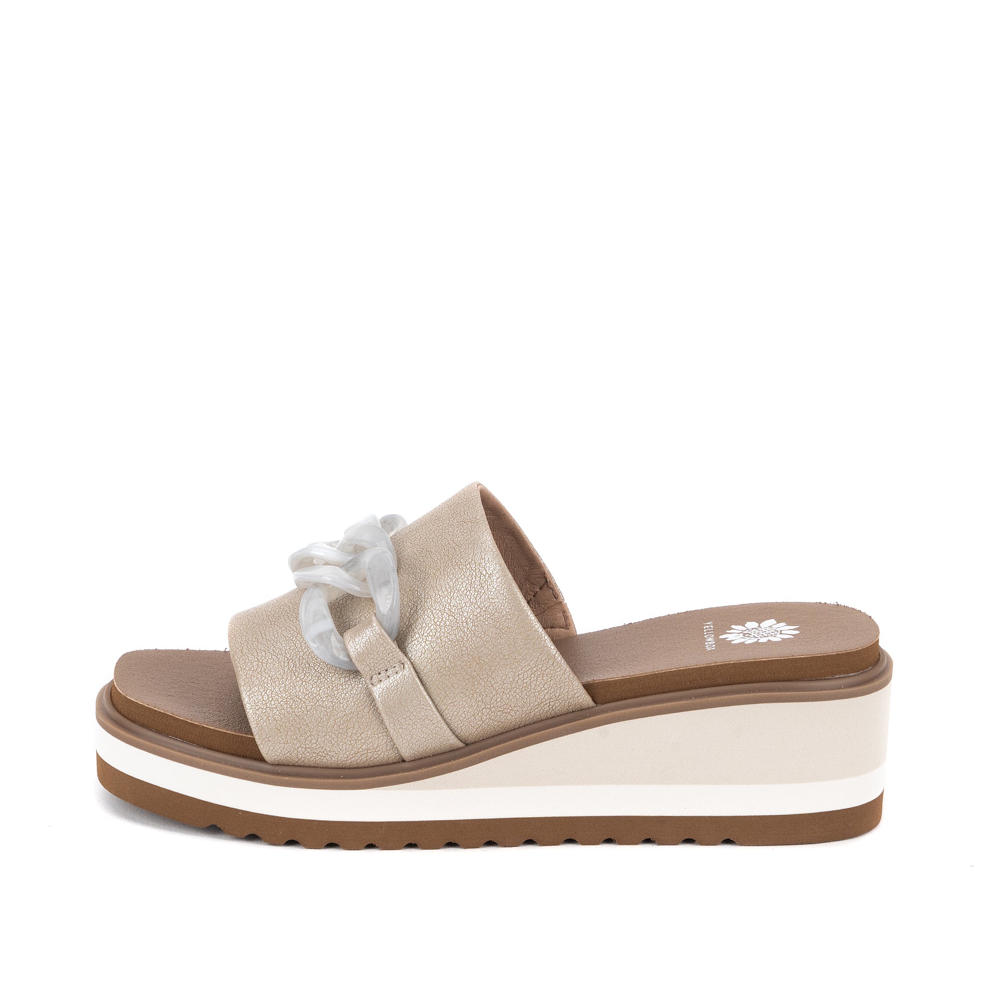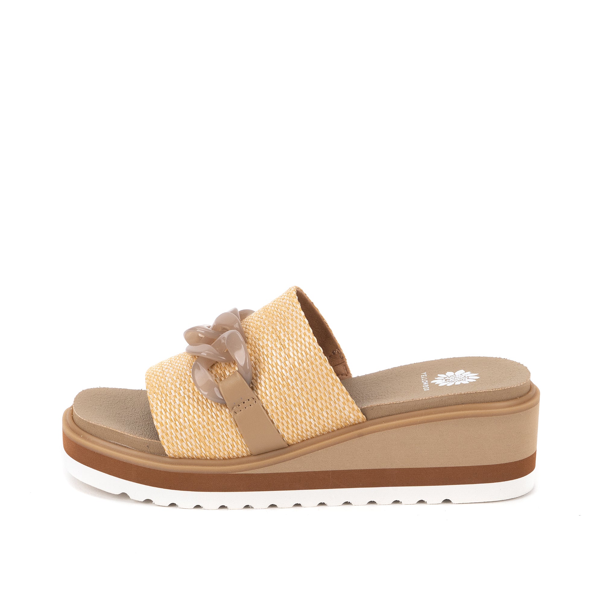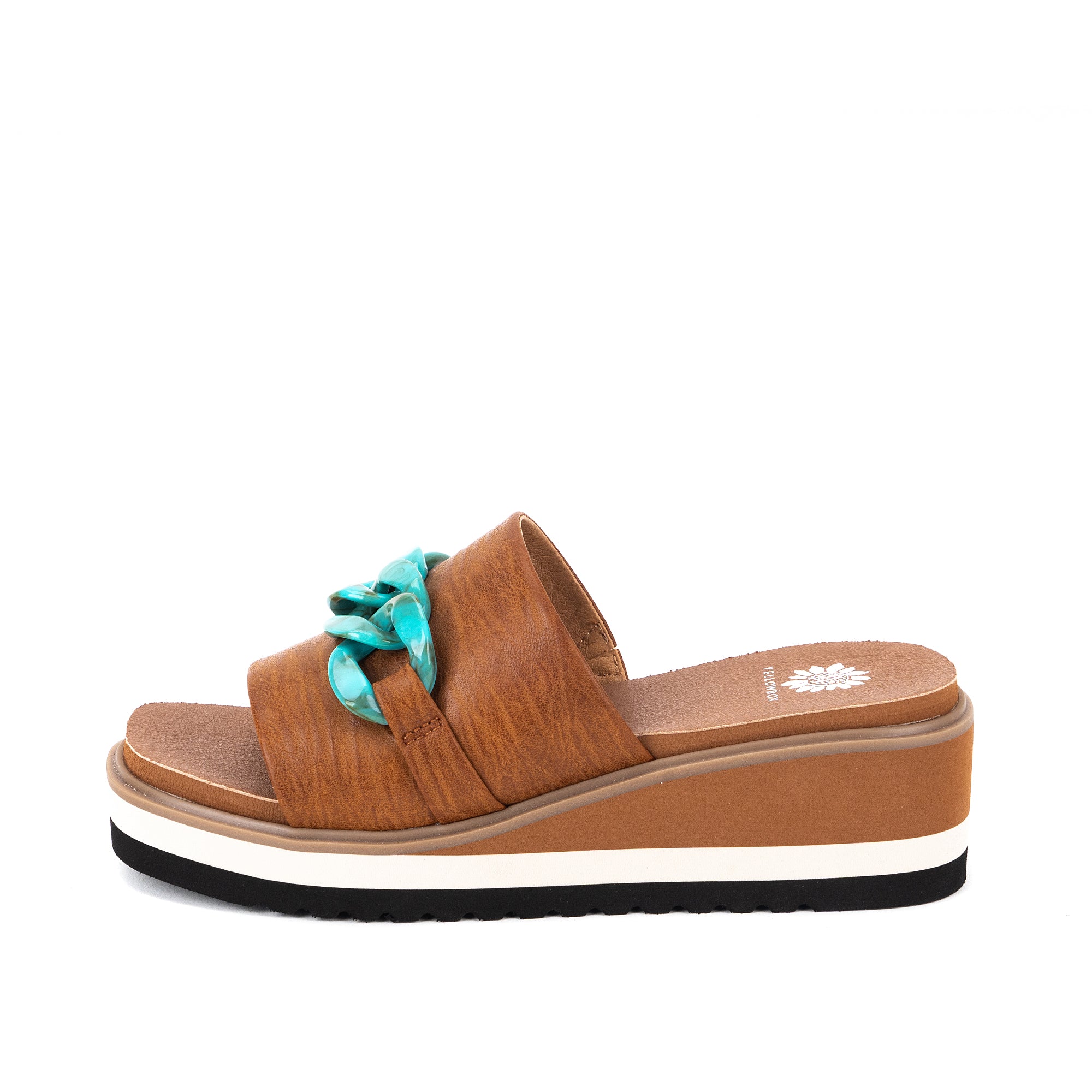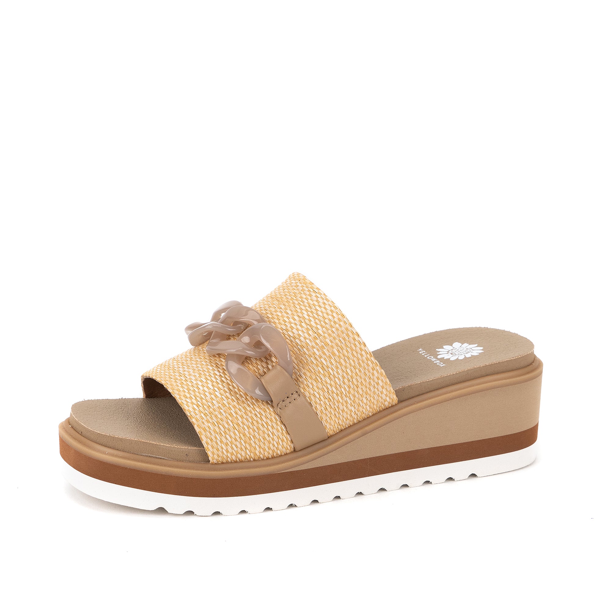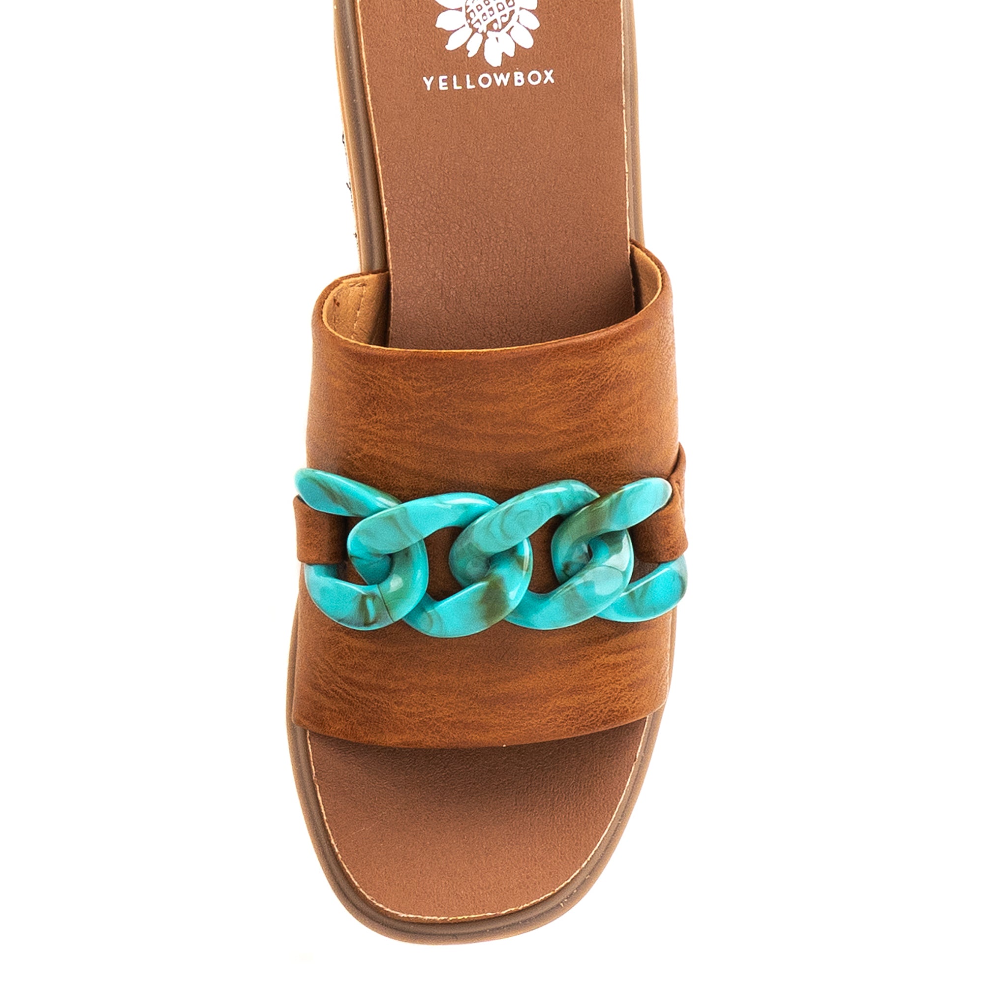 ALORA is a minimal slide sandal adorned with elegant chunky chain hardware that helps add a touch of sophistication to any outfit. ALORA features a squared toe shape and our Signature Yellow Box padding, perfect for everyday comfort.