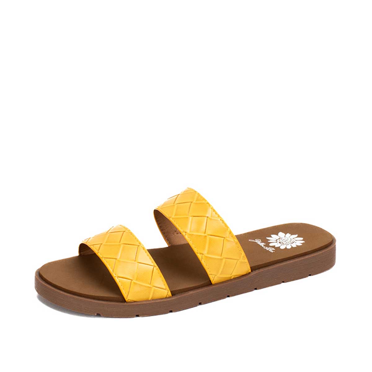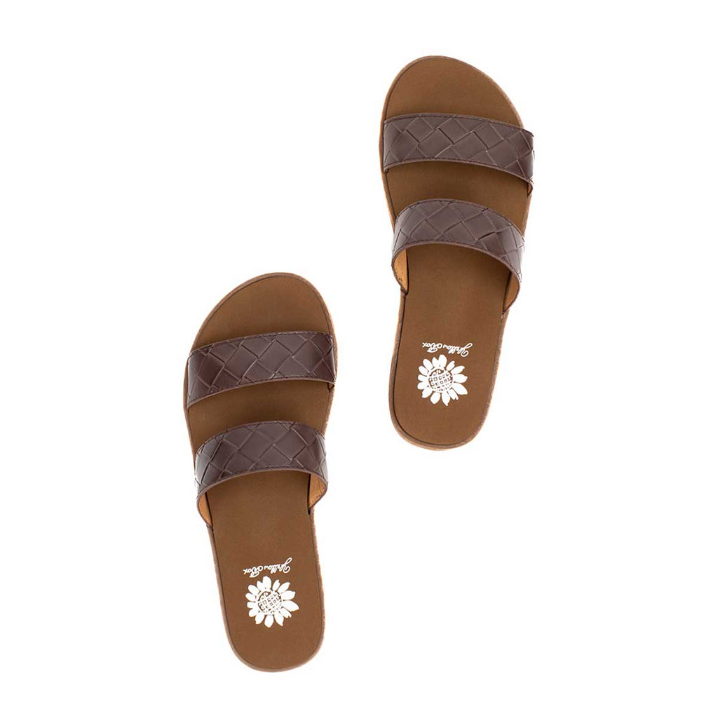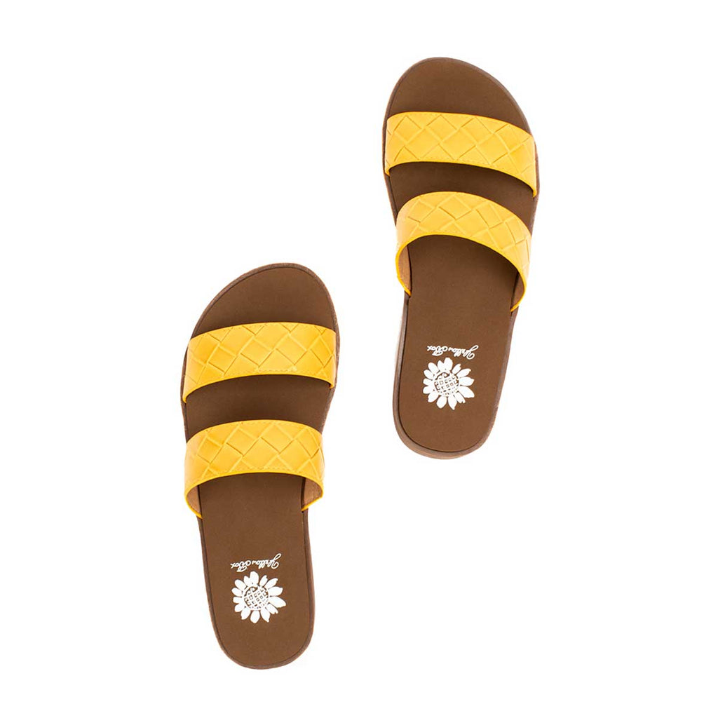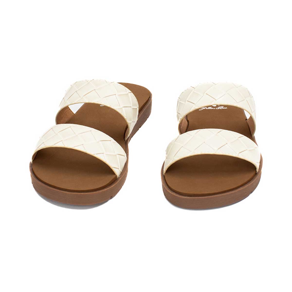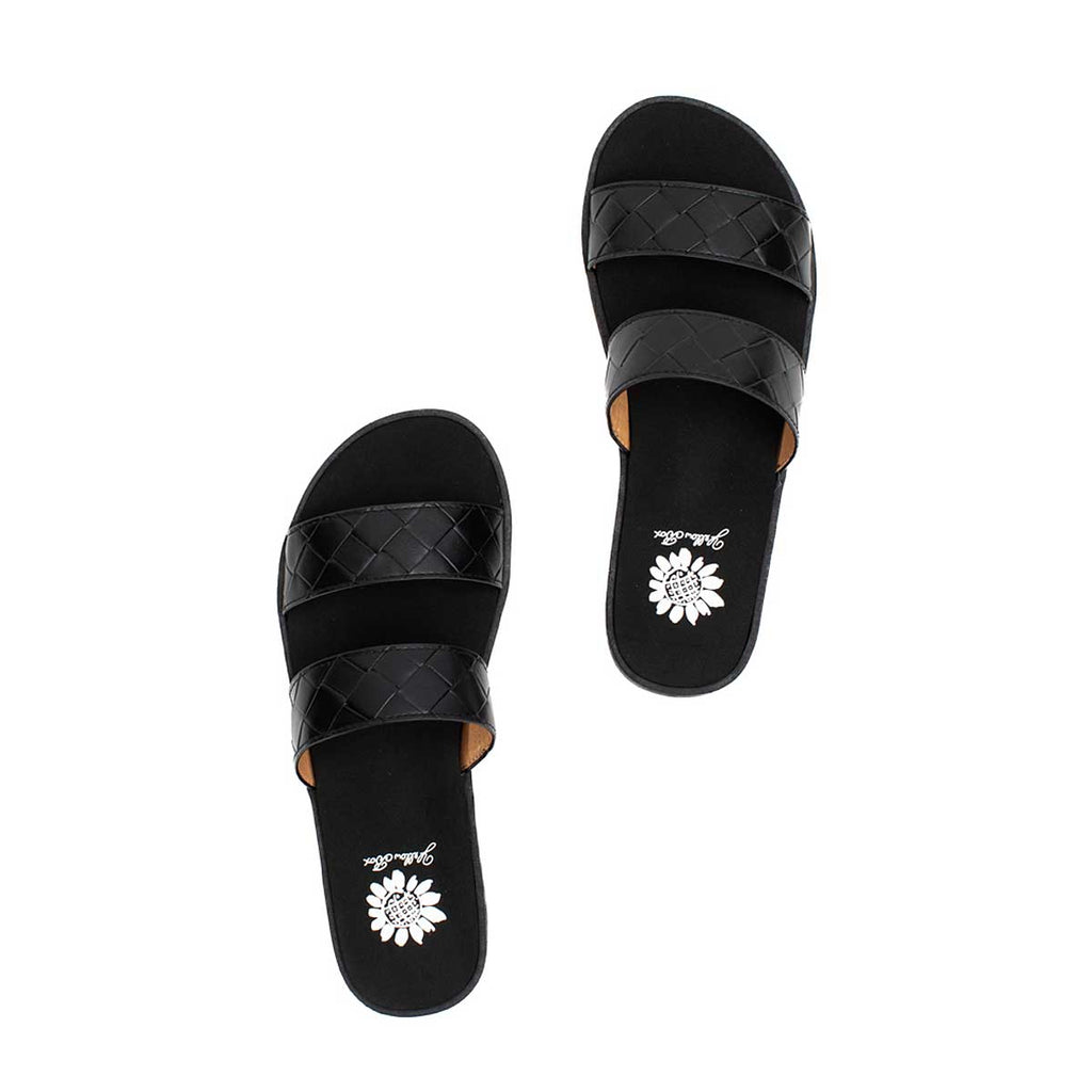 Work it, weave it, with the easy Feylie slides. These sandals have a comfortable padded footbed and feature an embossed double-band showcasing one of the hottest trends of the moment, interwoven textures.