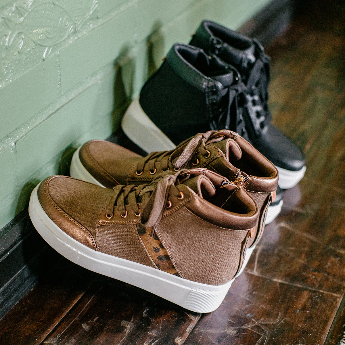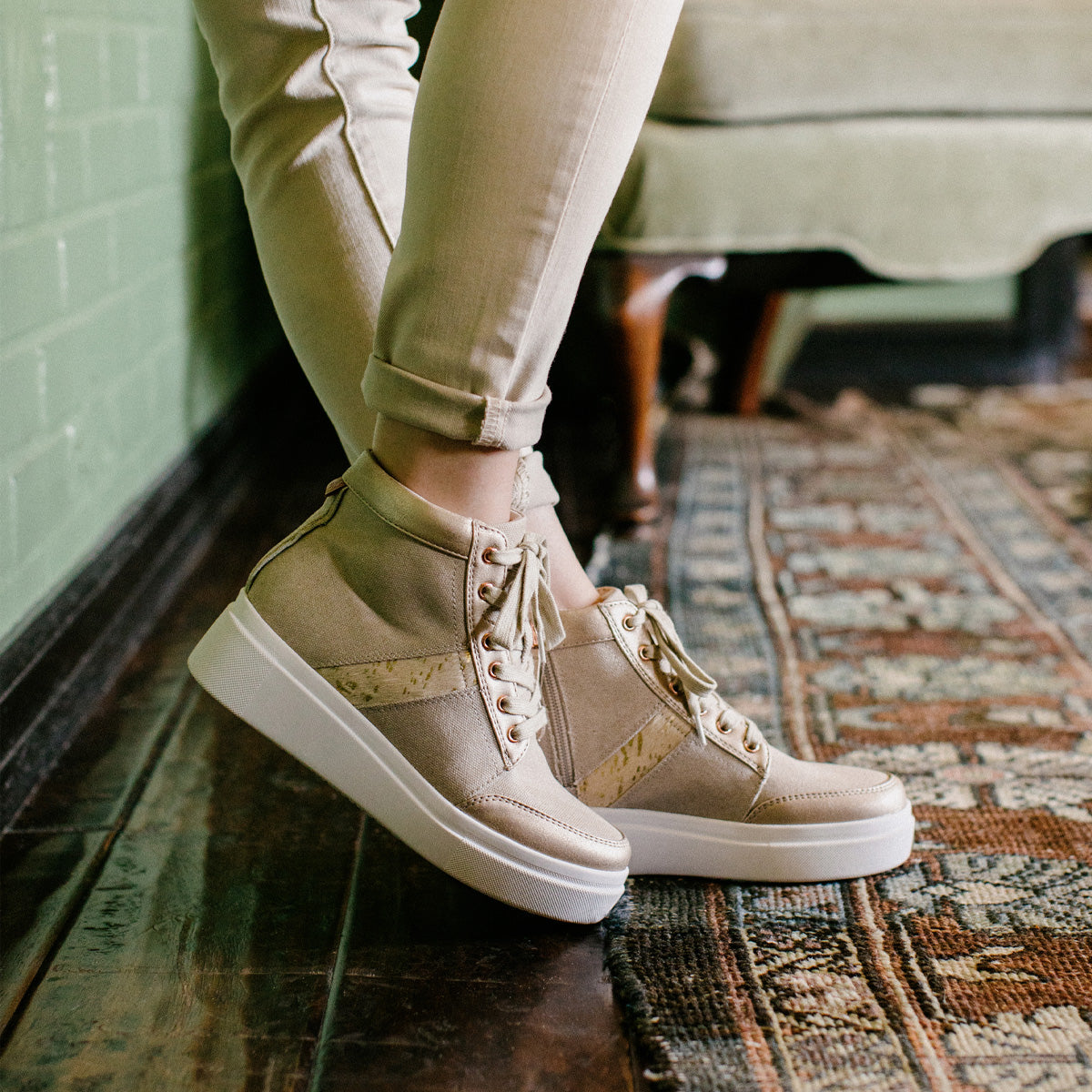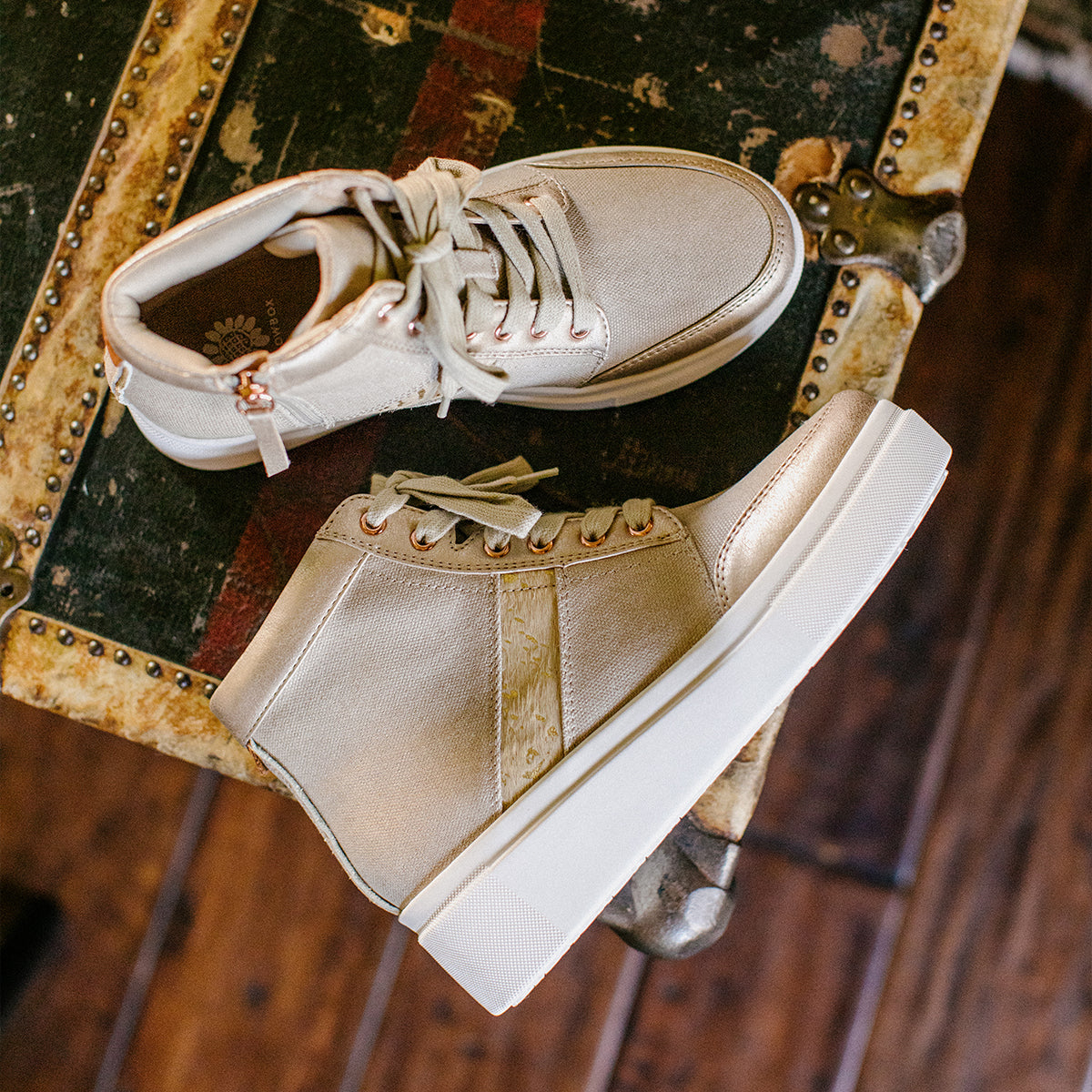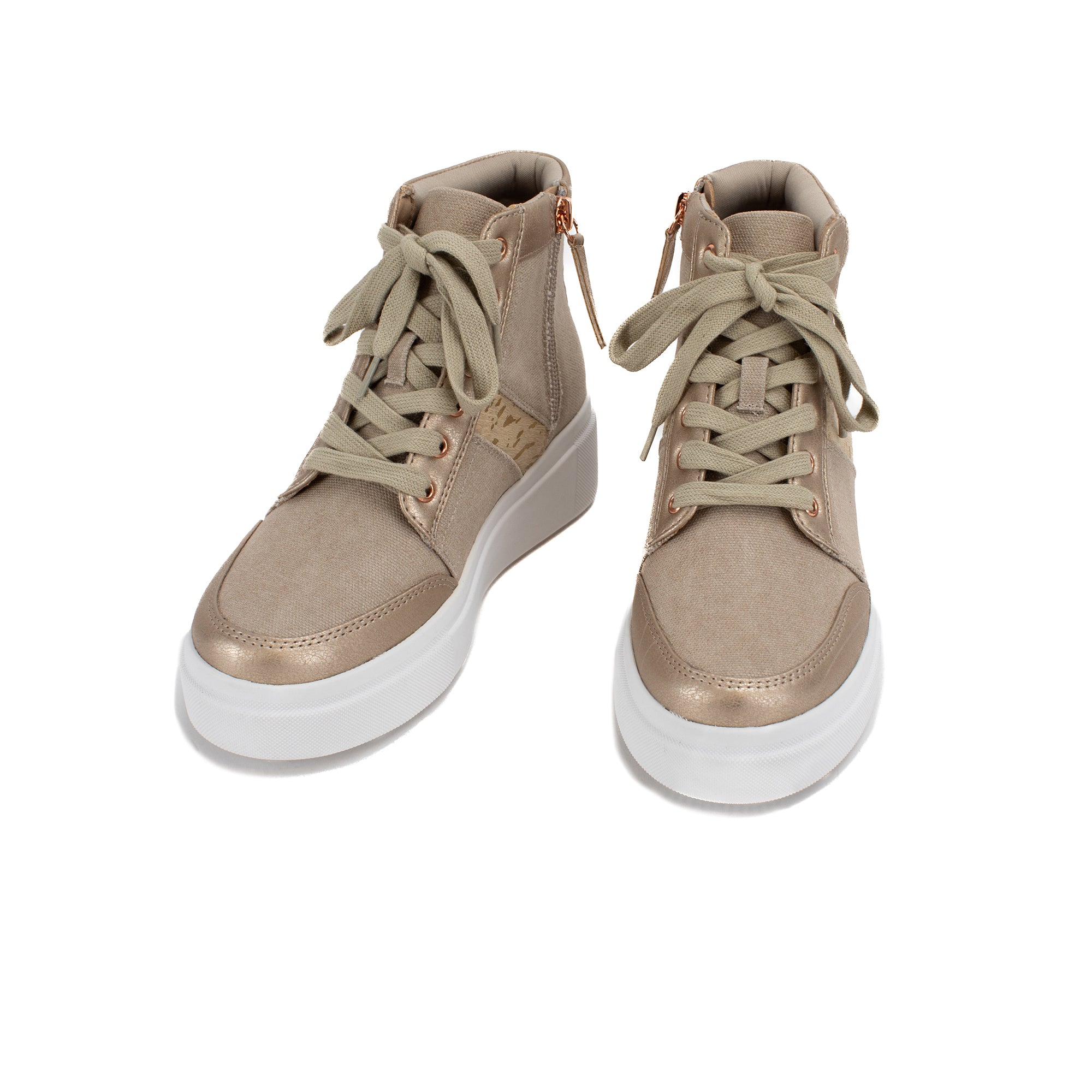 Add a little shimmer in the EDISIA high-top sneakers, with an easy on-and-off zipper.