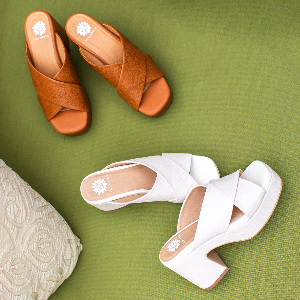Crossband slides are making a comeback. The OVILIA sandals feature soft tumbled grain faux leather in a monochrome look. Always build with our Signature Yellow Box high rebound footbeds, these are sure to be a go-to sandal from day to night.