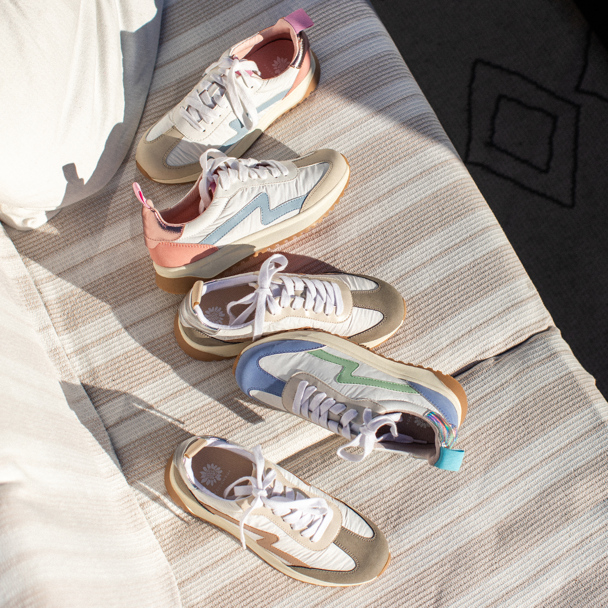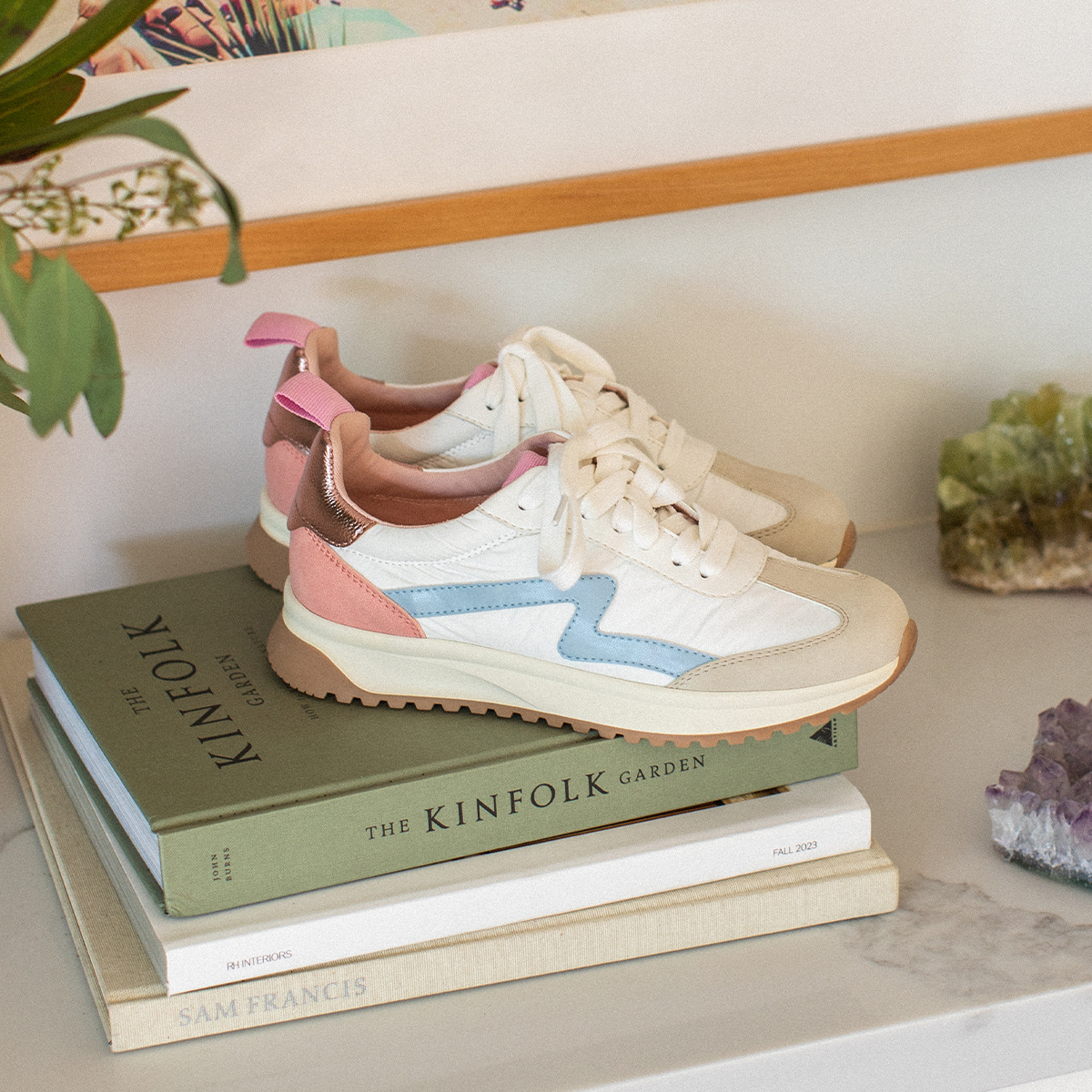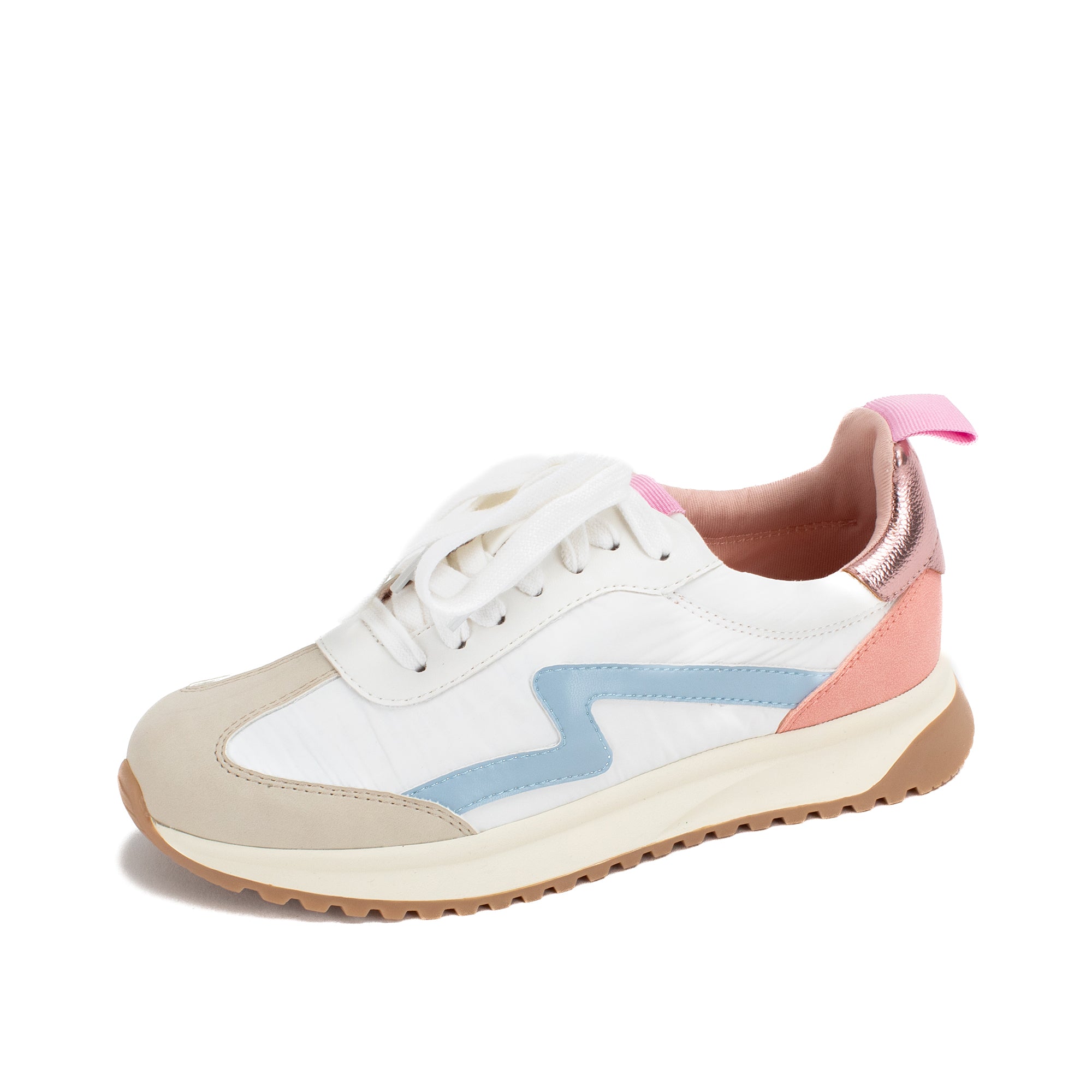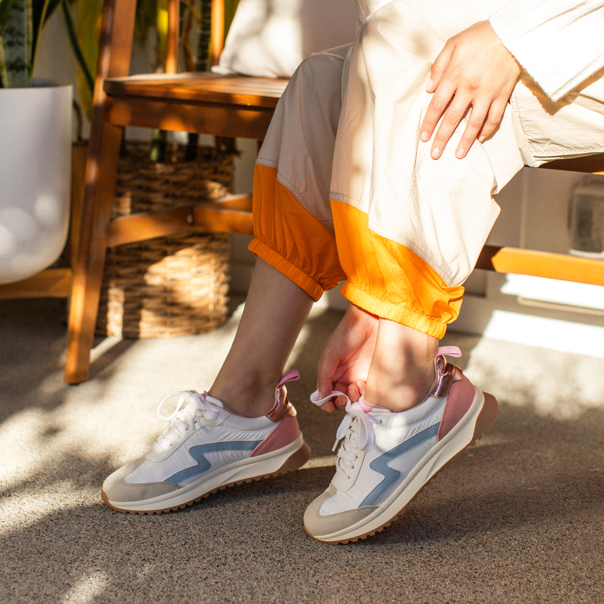 RATNA is an ultra-cool, retro-inspired sneaker. Take on a mix of pastel hues, mixed materials, and a padded insole that can be removed for added convenience and customization.
