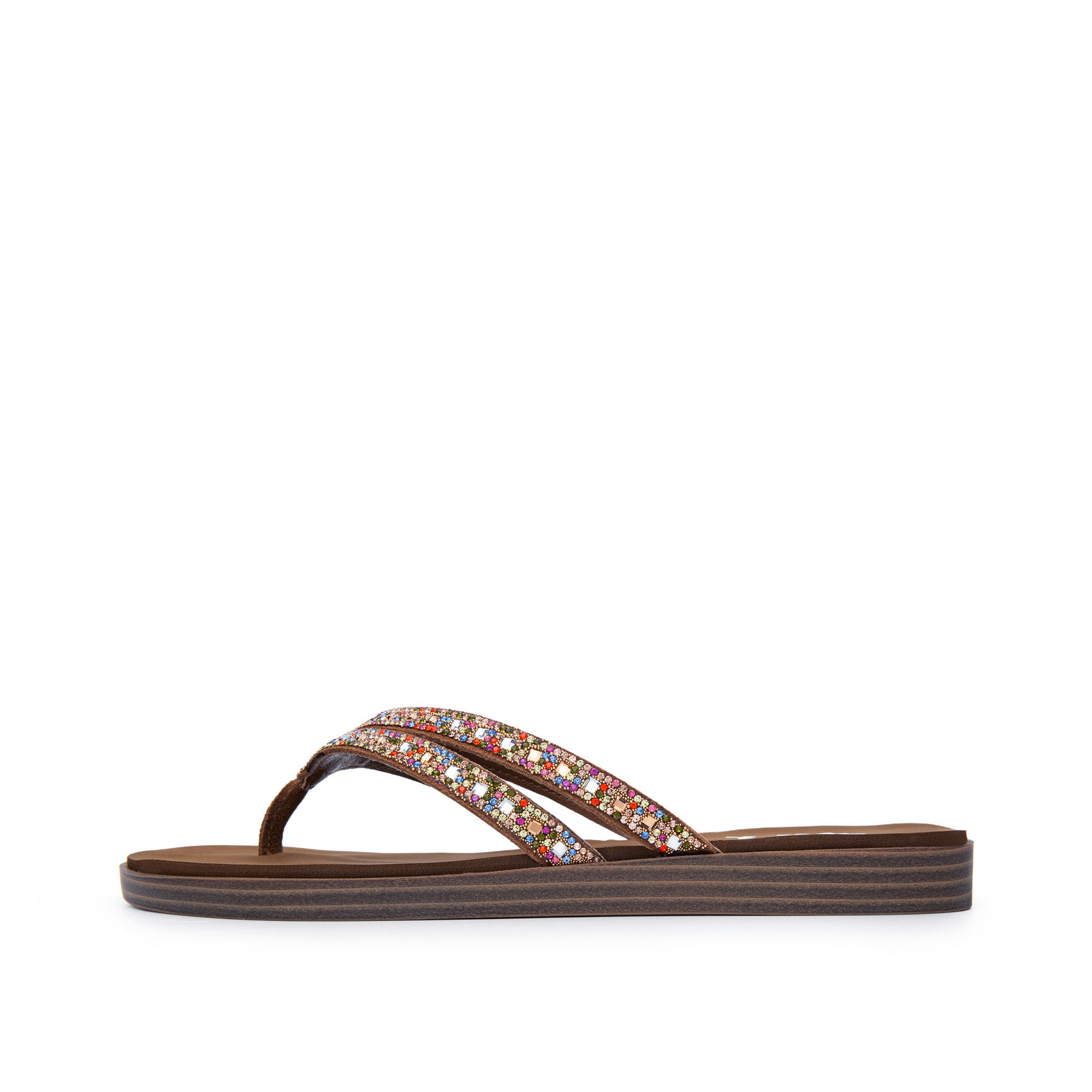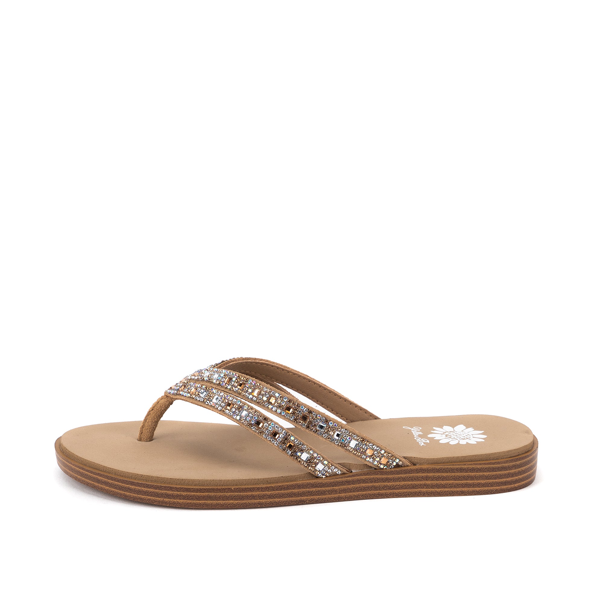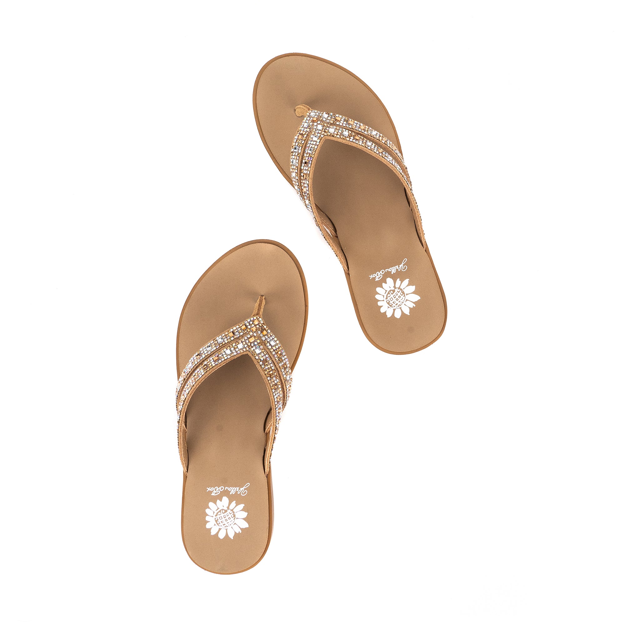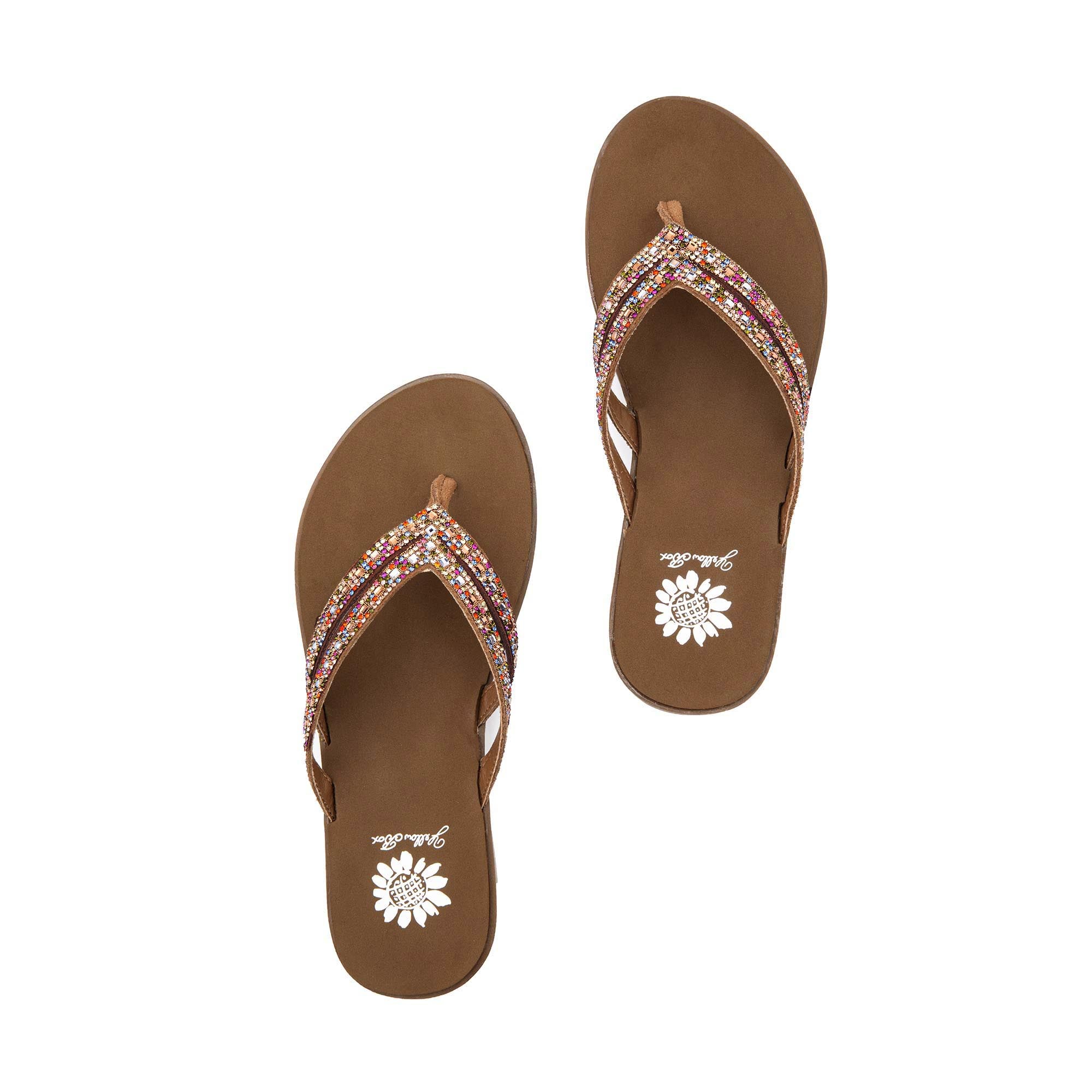 Double up for a more secure hold in our DALIA leather sandals. This lightweight flip-flop features seriously bold bling with a slender silhouette and an inset Signature Yellow Box EVA foam footbed, perfect for everyday comfort.