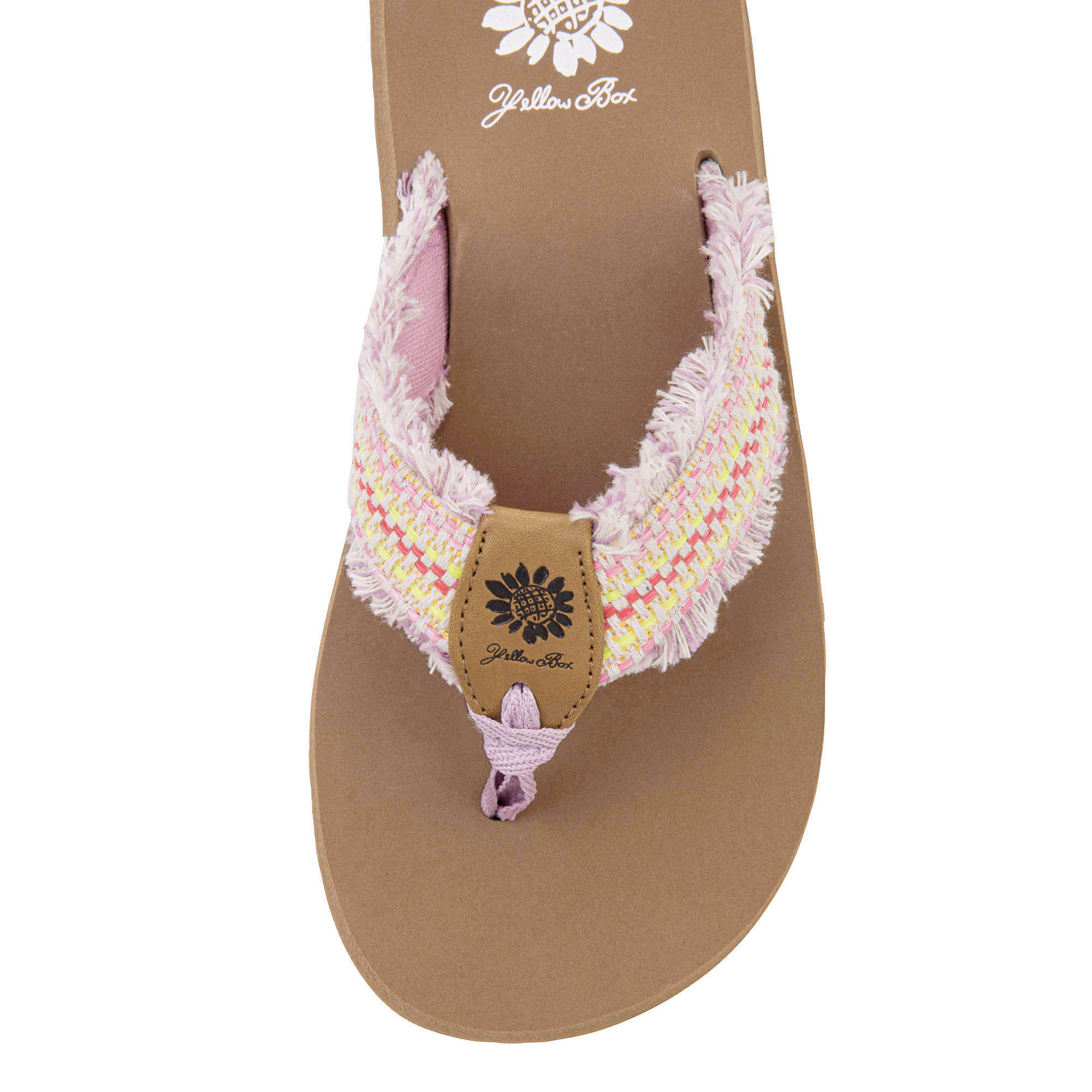 Introducing FERIZ, a Signature Yellow Box EVA flip flop with wide, woven straps with frayed edges for a casual boho look that is comfortable to wear all day long.