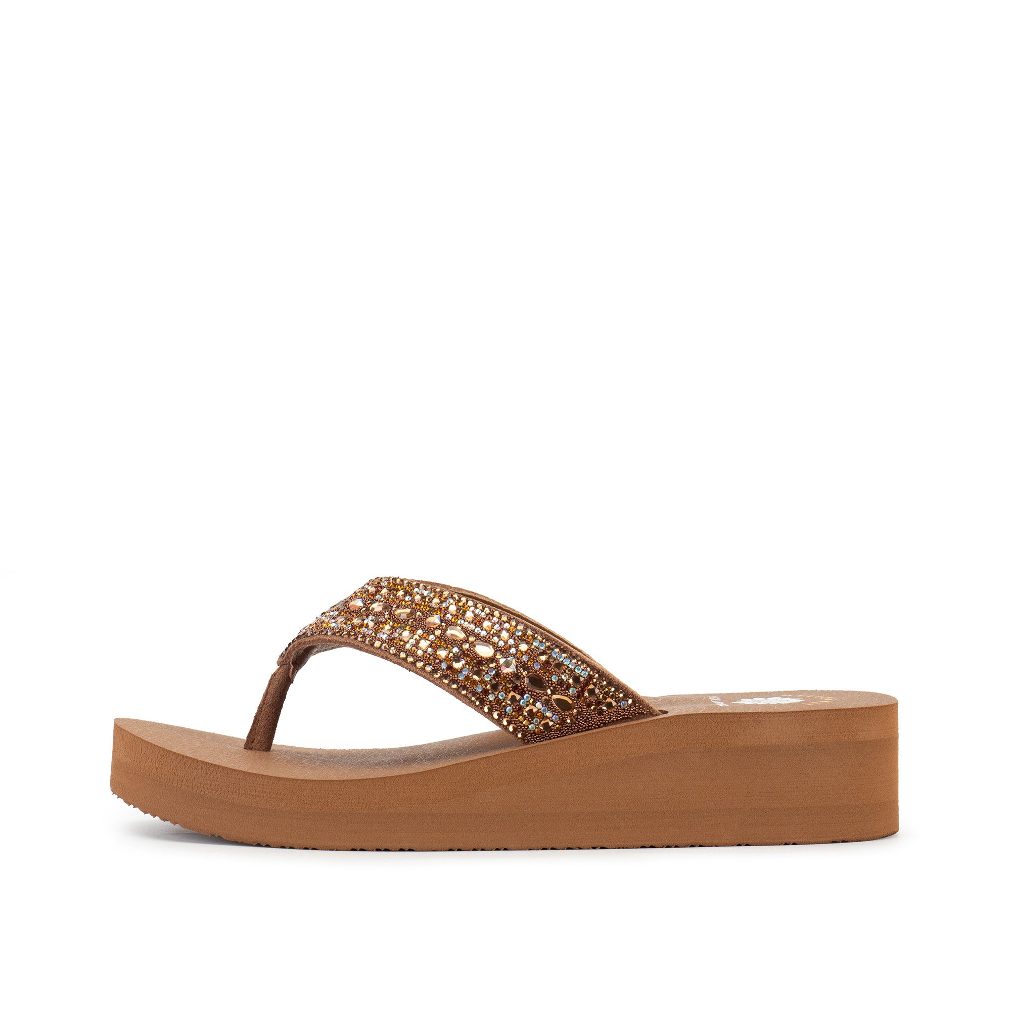 Looking for the perfect plus one for your elegant affairs? Meet LAIKEN-the wedge sandal that transforms every outfit into an event-ready look, featuring leather straps embellished with diamond and oval stone accents among a sea of mini rhinestones.