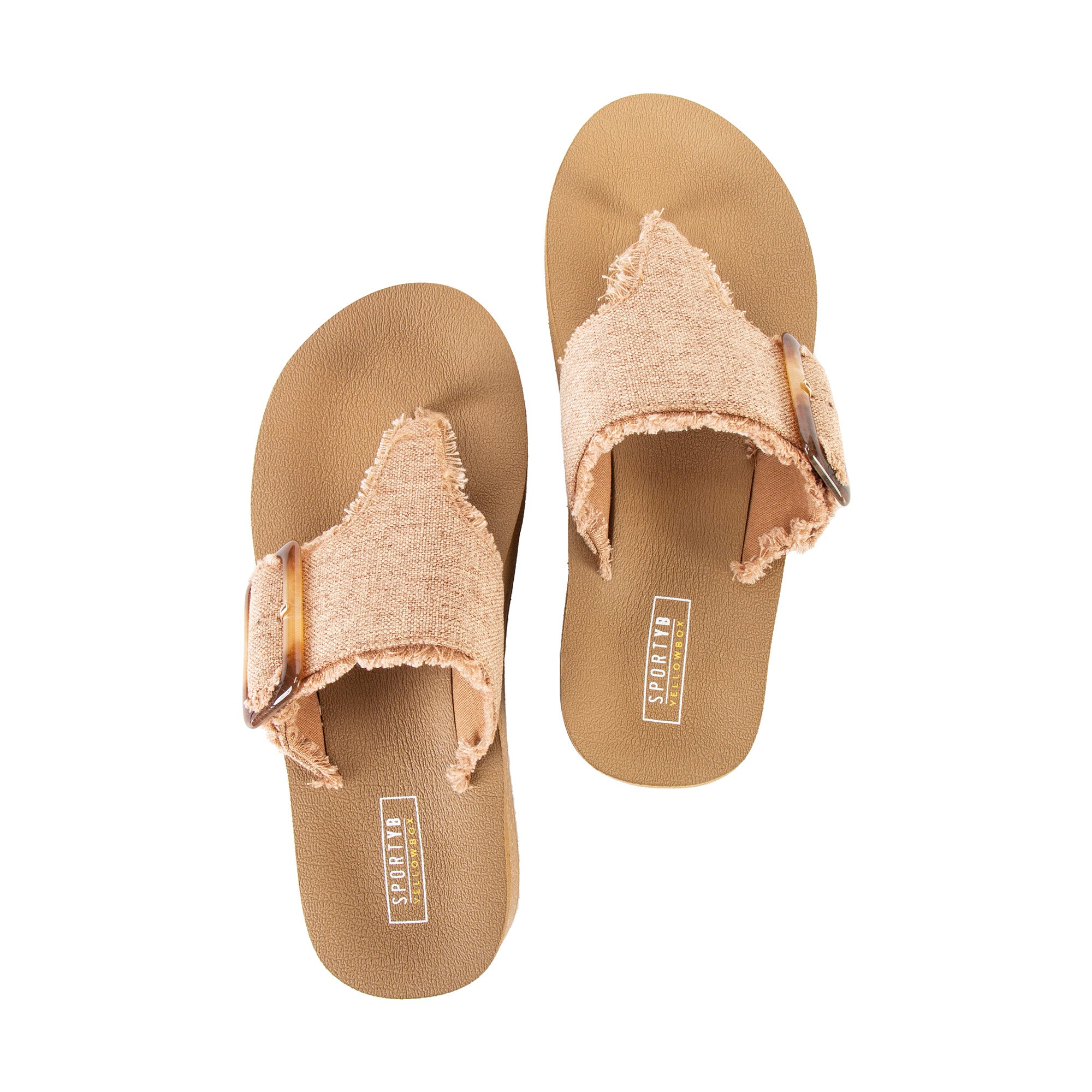 The big buckle trend continues with our sporty CARLOW flatform sandal. Featured in laid-back canvas neutrals that give any outfit a focal point.