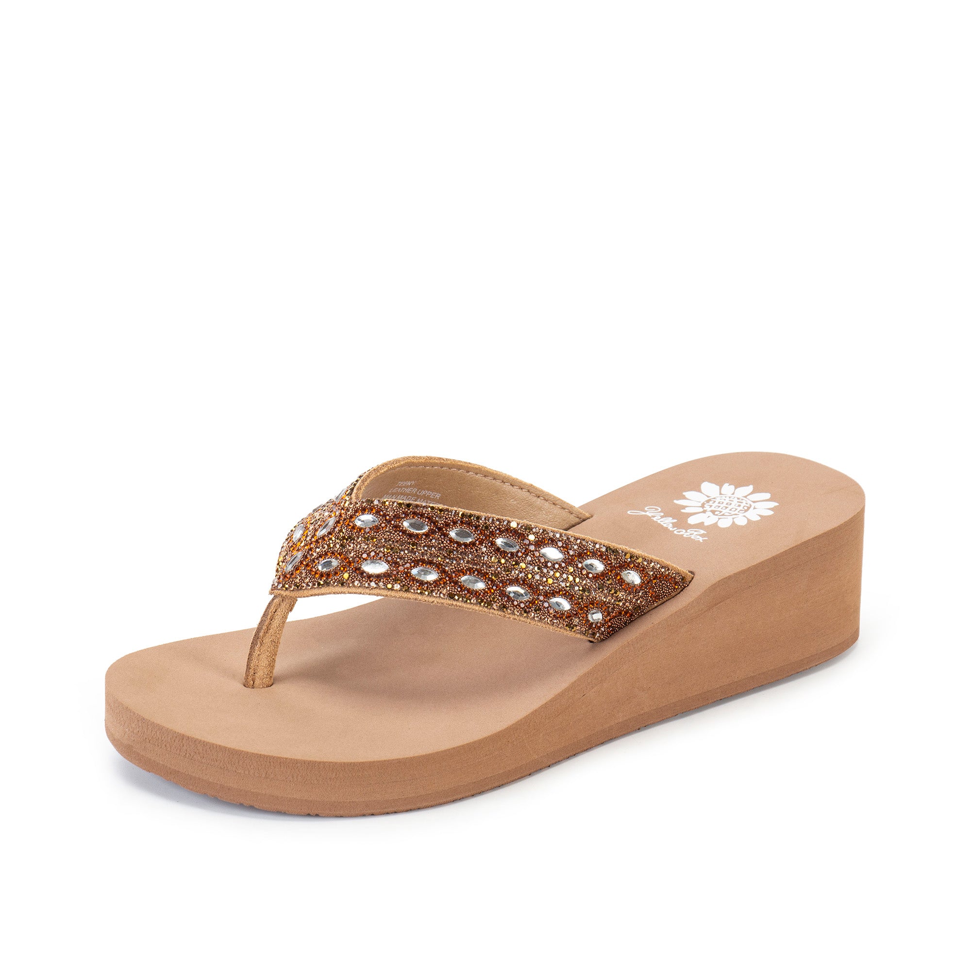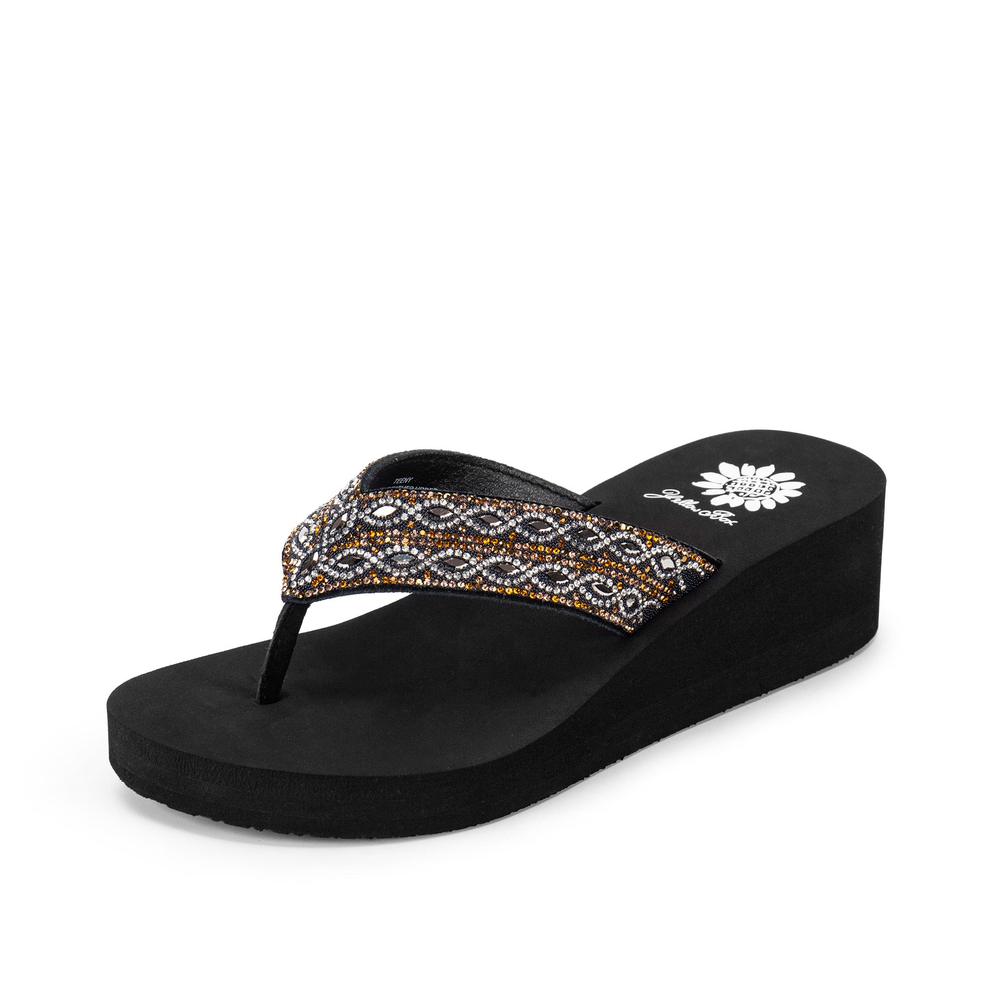 A true statement sandal, TEENY shines with all-over rhinestone detailing, paired with the plush comfort of our Signature Yellow Box EVA footbed.