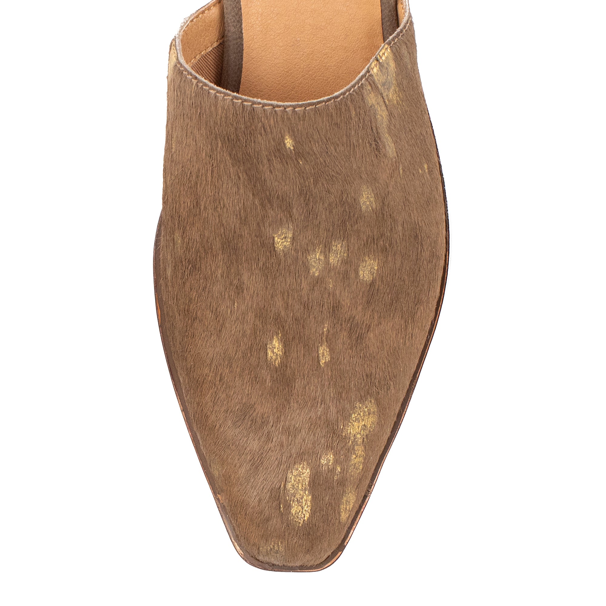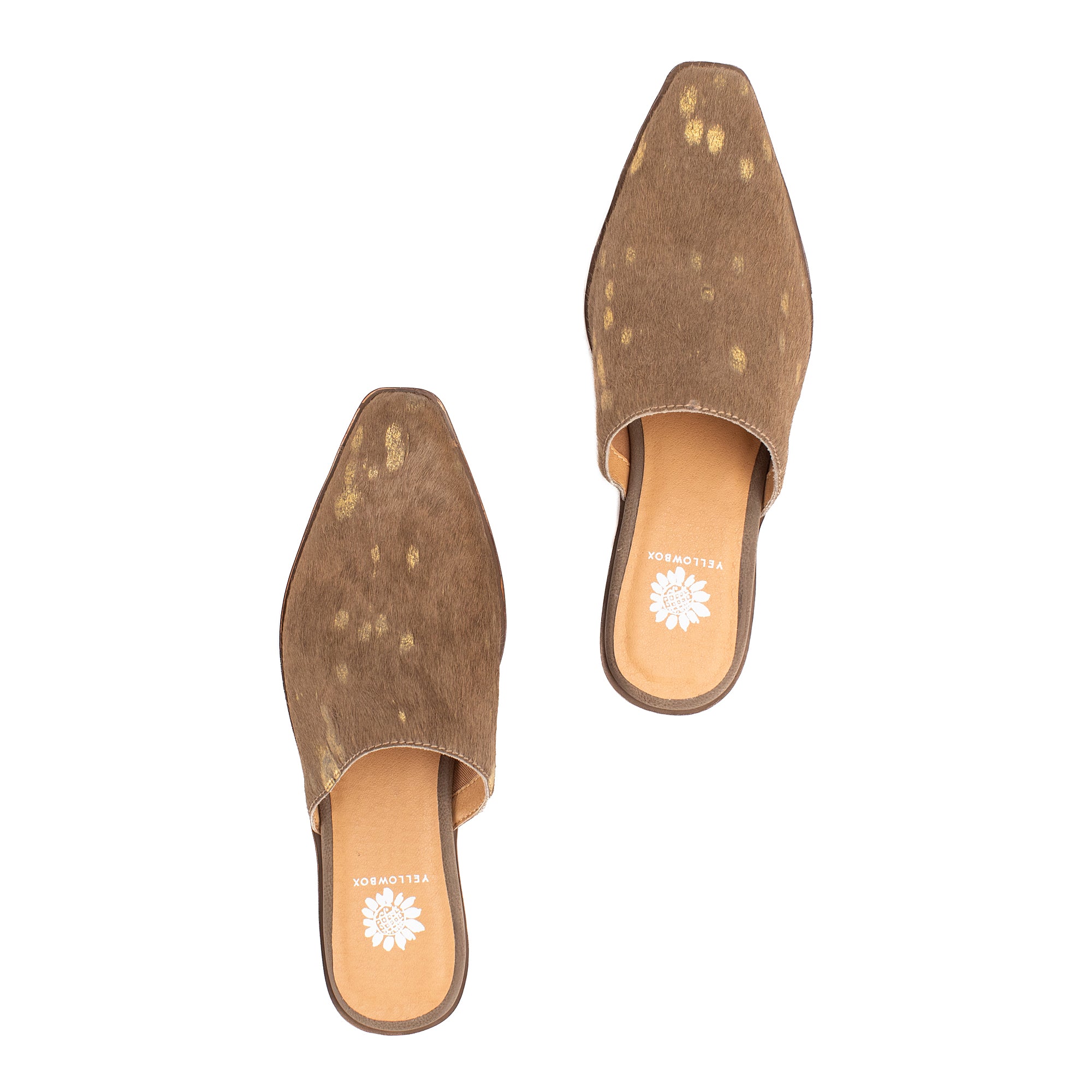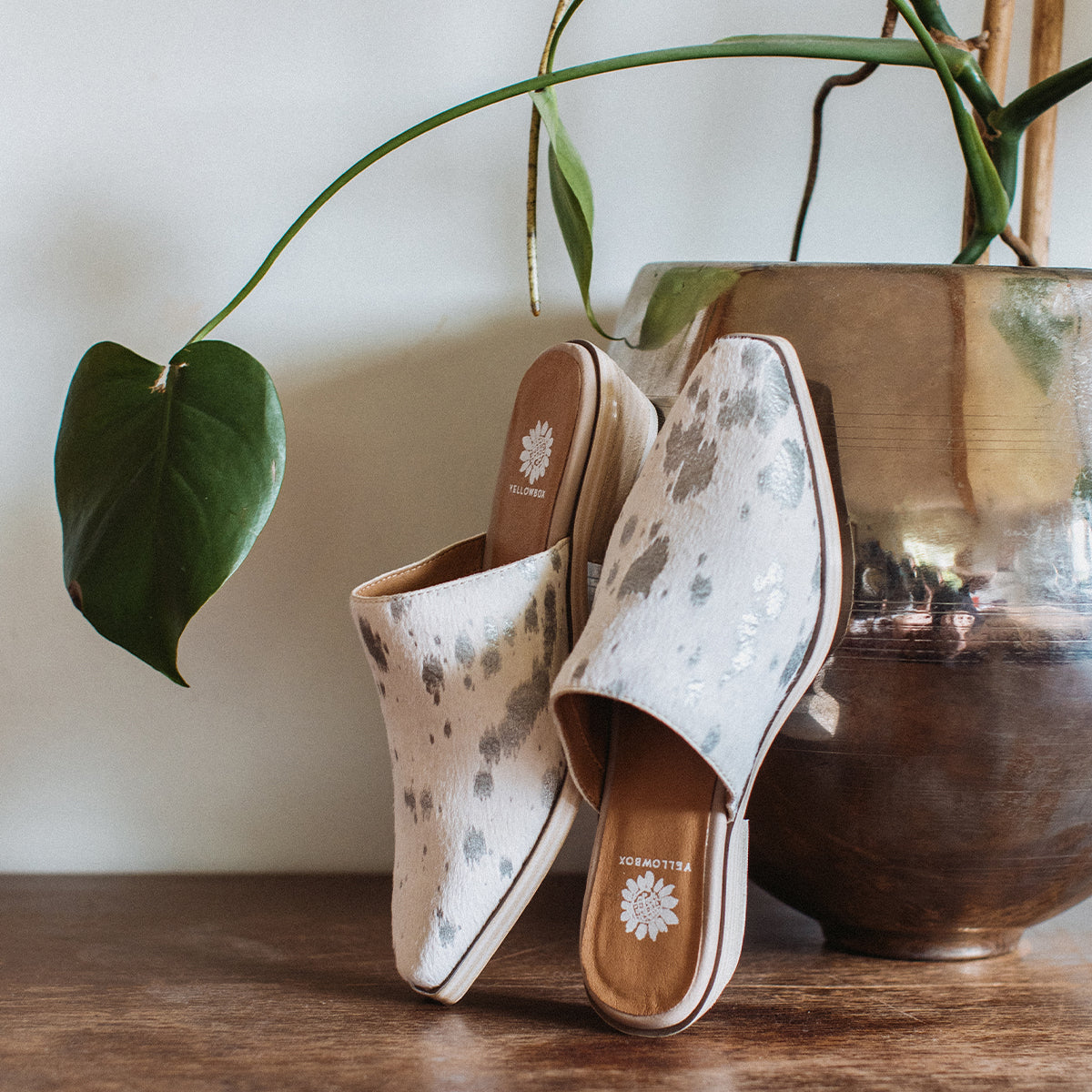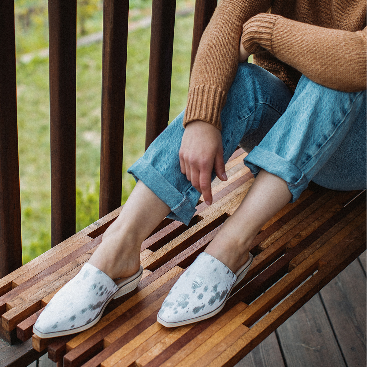 Turn heads wherever you go in our WARDEN mules. Featuring a genuine leather vamp with a metallic cow-print design, these low-heeled mules provide both comfort and style. Add a touch of sophistication to any outfit with these easy-to-wear, stylish mules.