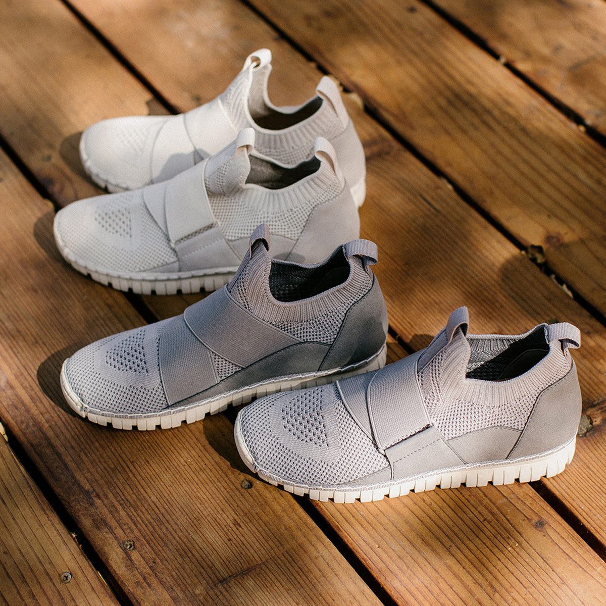 A flexible and breathable sport knit sneaker is your athleisure go-to. Run around town in this flexible treaded sole.
