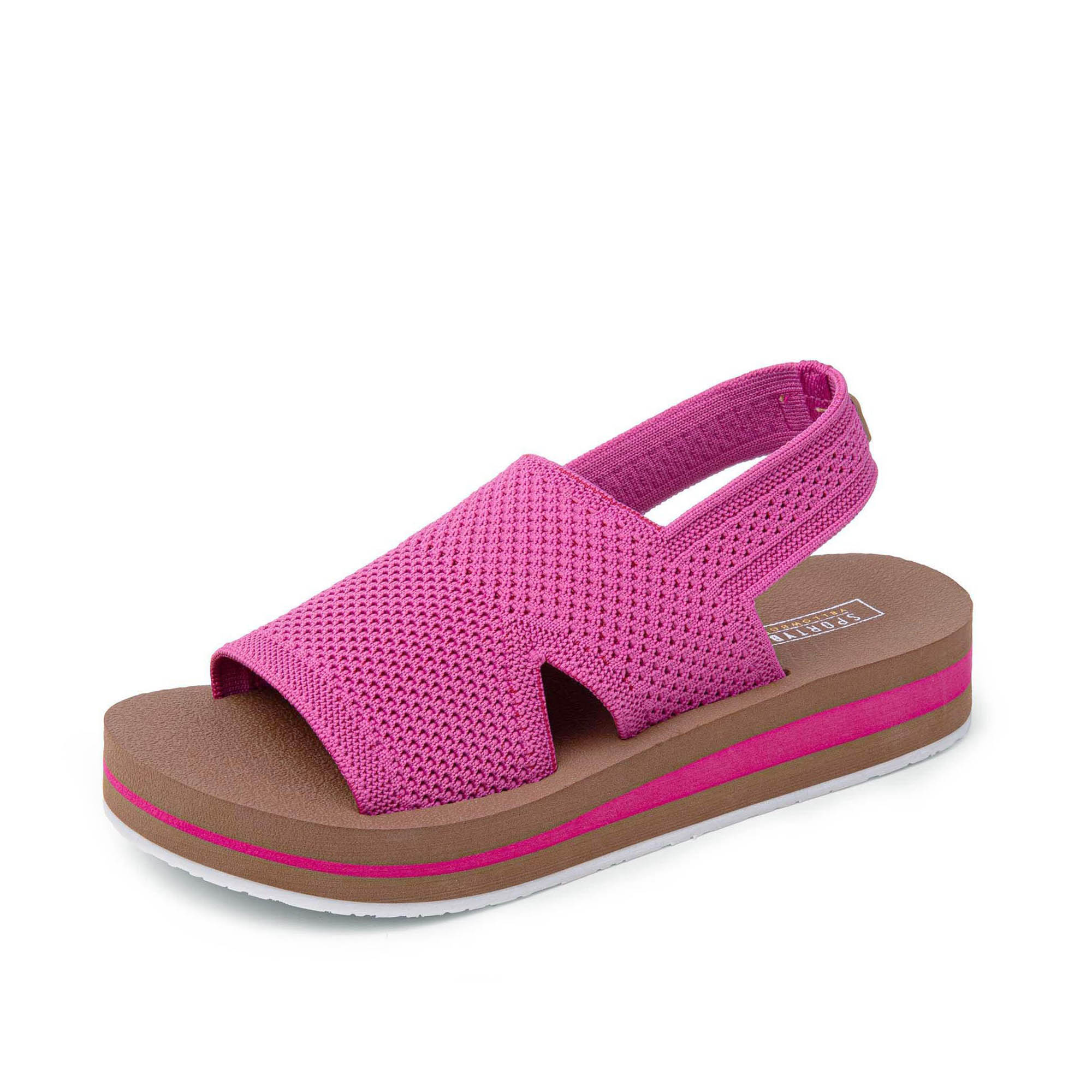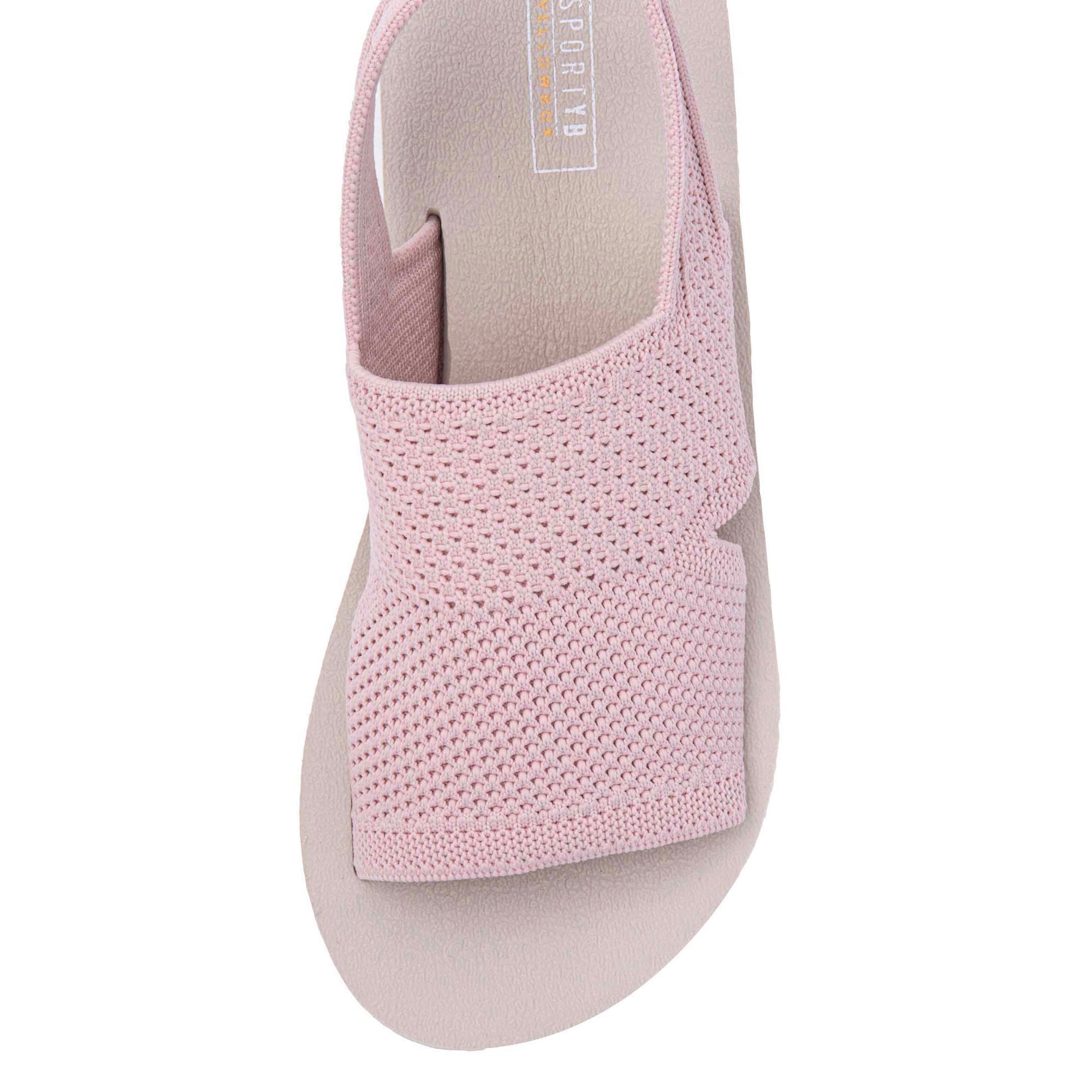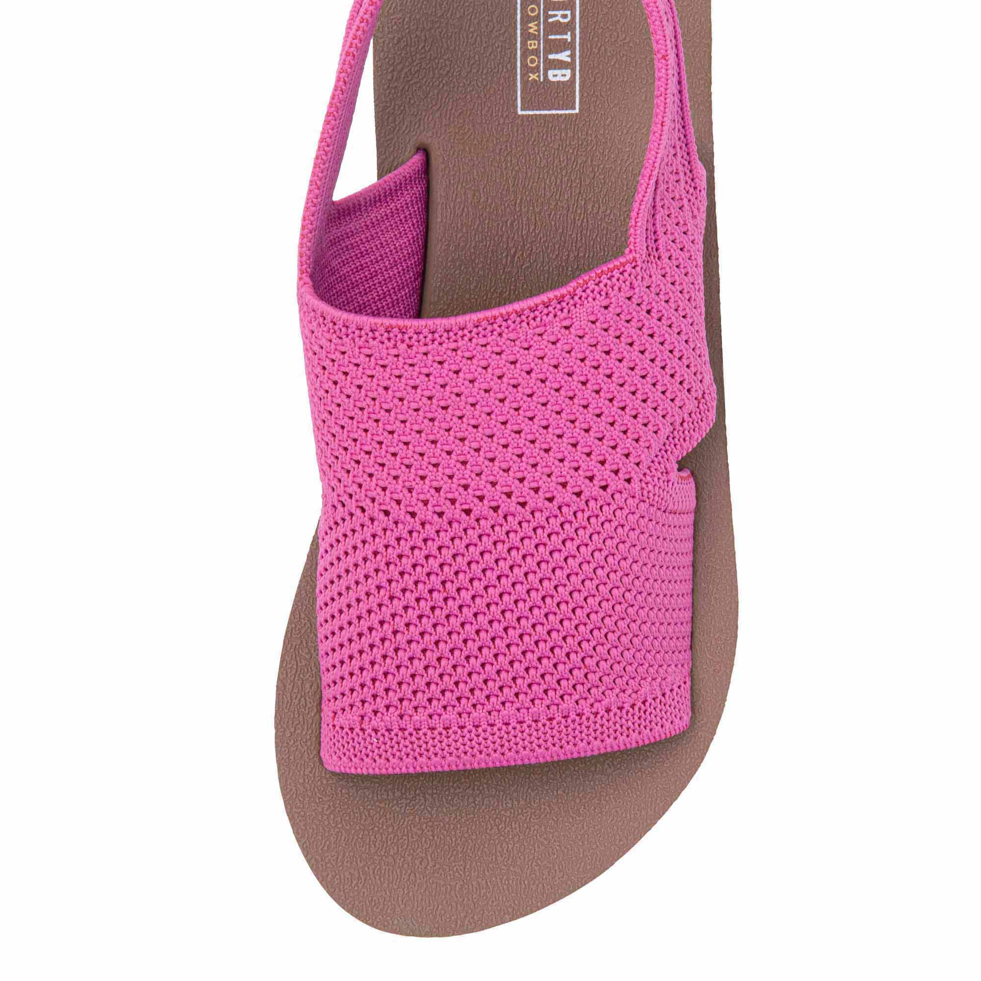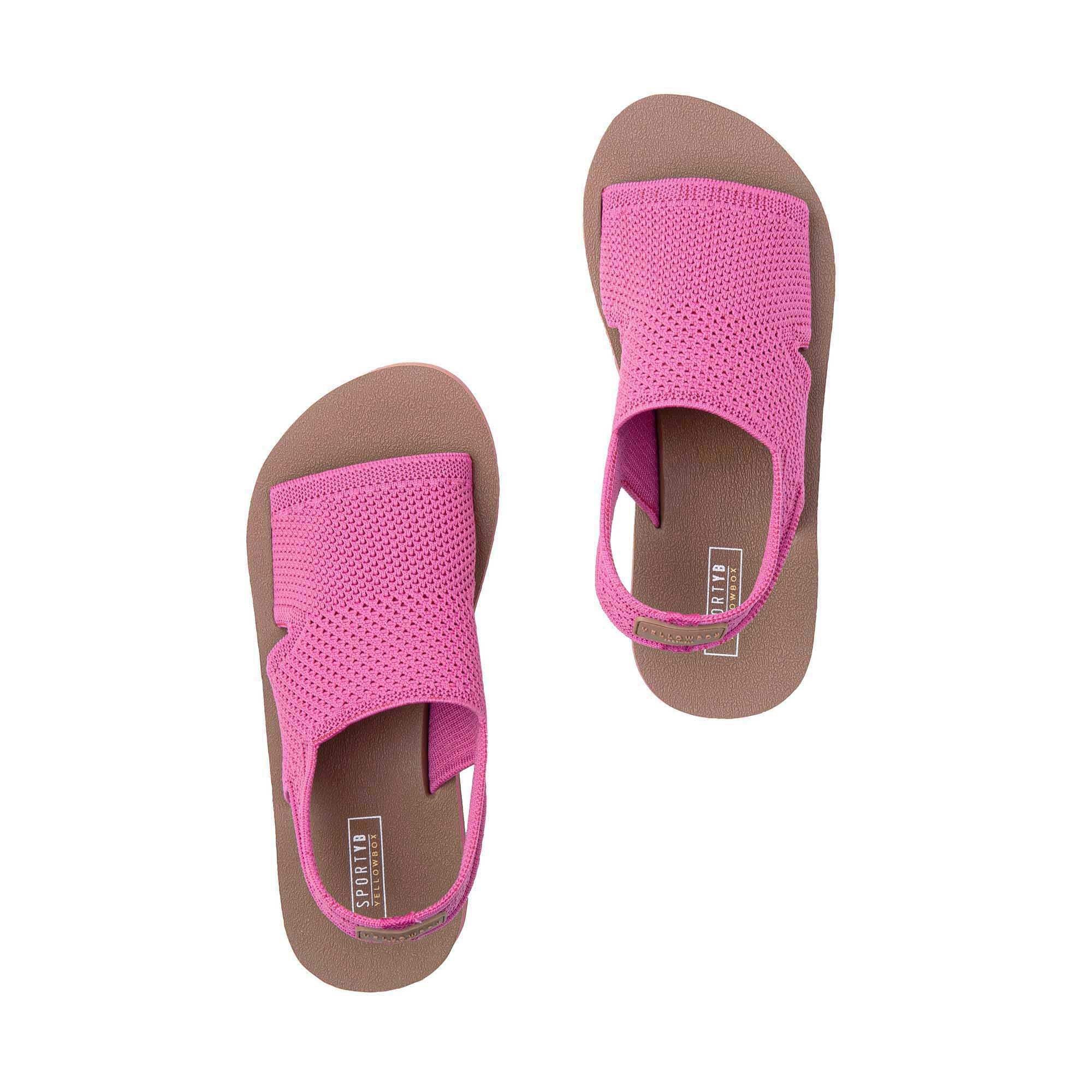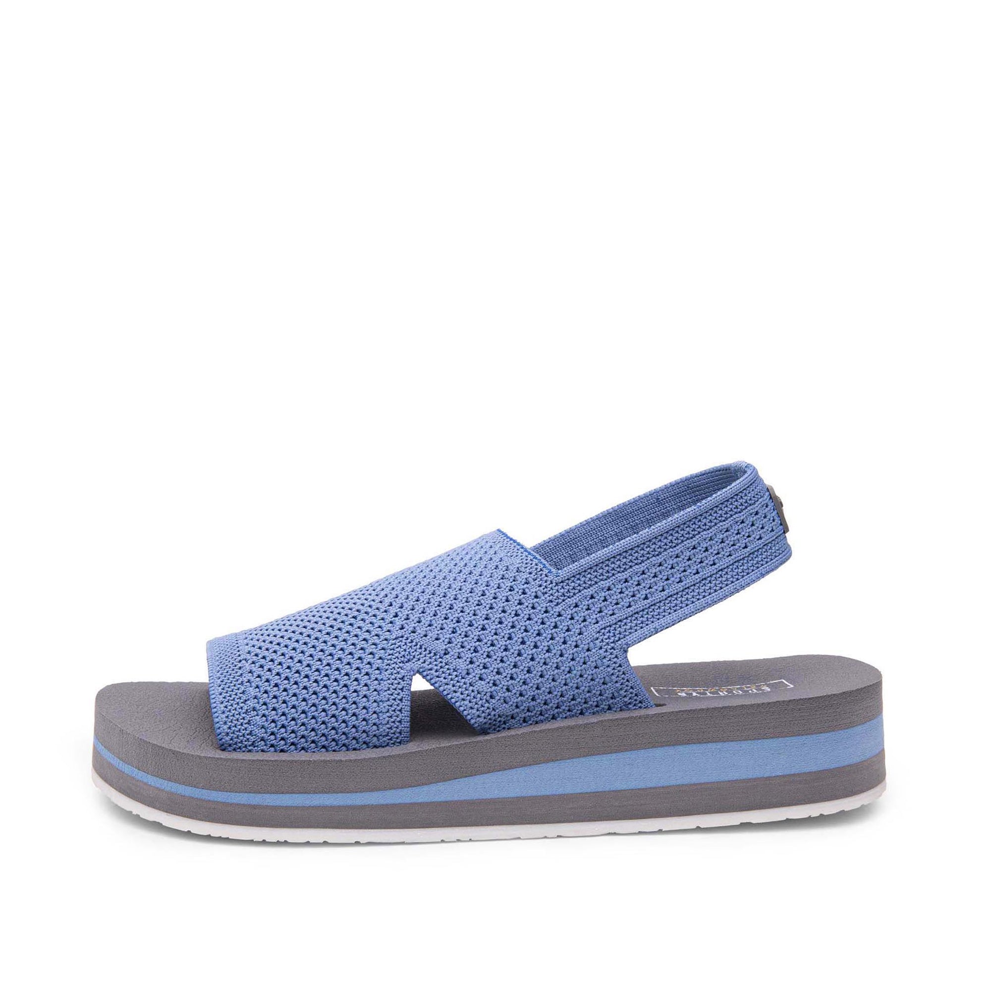 Meet MARTIE, an easy-on-and-off, flatform sandal featuring a flexible sport knit upper crafted with 100% certified recycled fibers. This sandal bottom has a Signature Yellow Box High Rebound EVA footbed contoured with arch support and a slight heel cup for performance-level comfort.