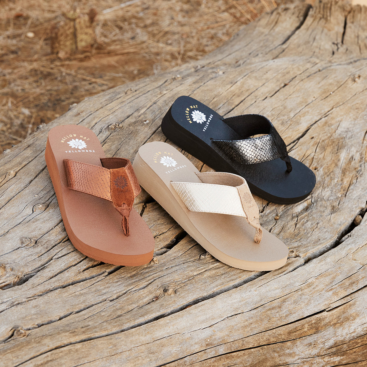 Mellow Mat™ sandals feature resilient impact-reducing footbeds inspired by yoga mats, with all the same style and charm as our Signature Yellow Box Collection.