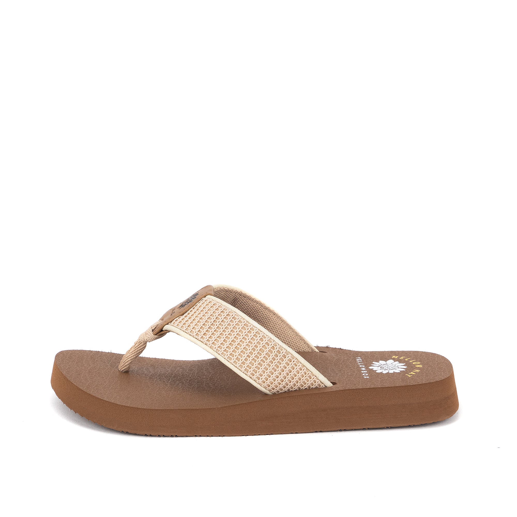 Go west and stay comfy in our NELLA flip flops, featuring wide woven textured straps and a slow rebound footbed in a classic low heel, as a part of our Mellow Mat™ collection.