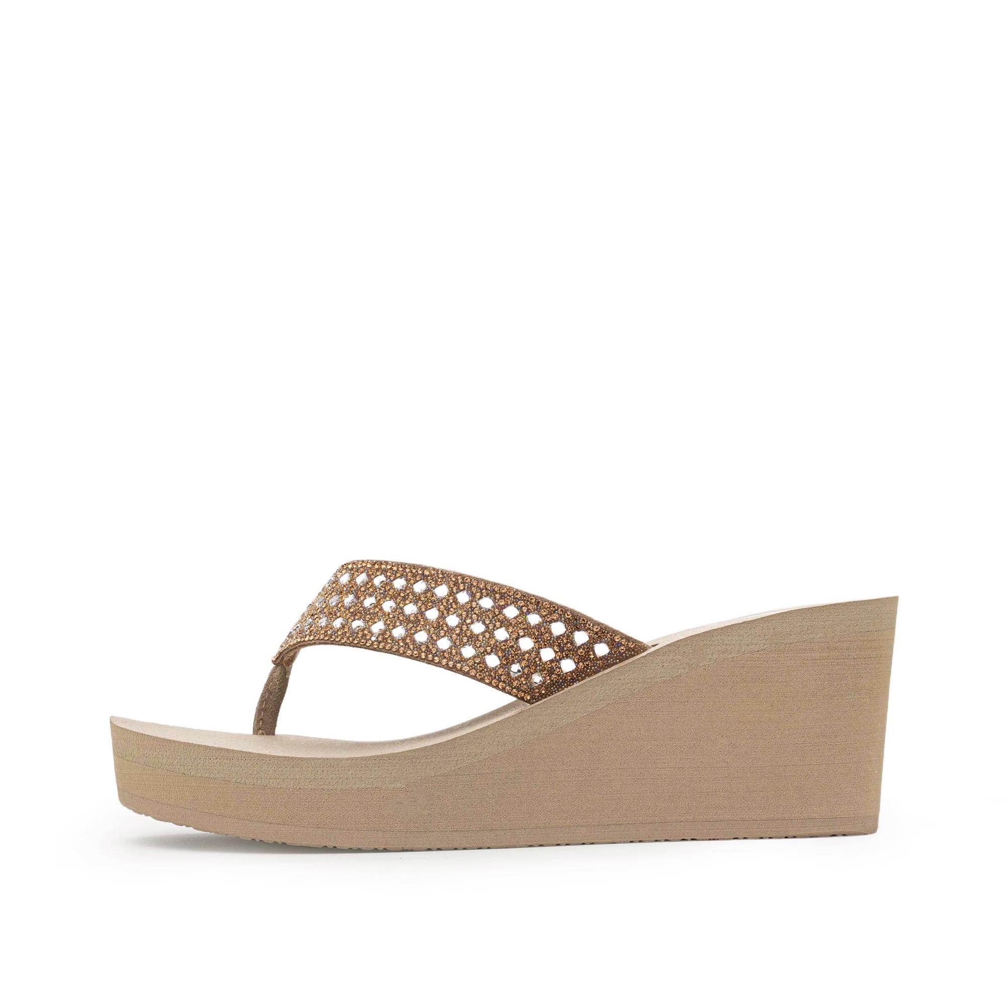 Add sparkle to your favorite sandals with WYLE. These eye-catching sandals are great for dressing up or down. They have a rounded almond toe and wedge made from Signature Yellow Box EVA.