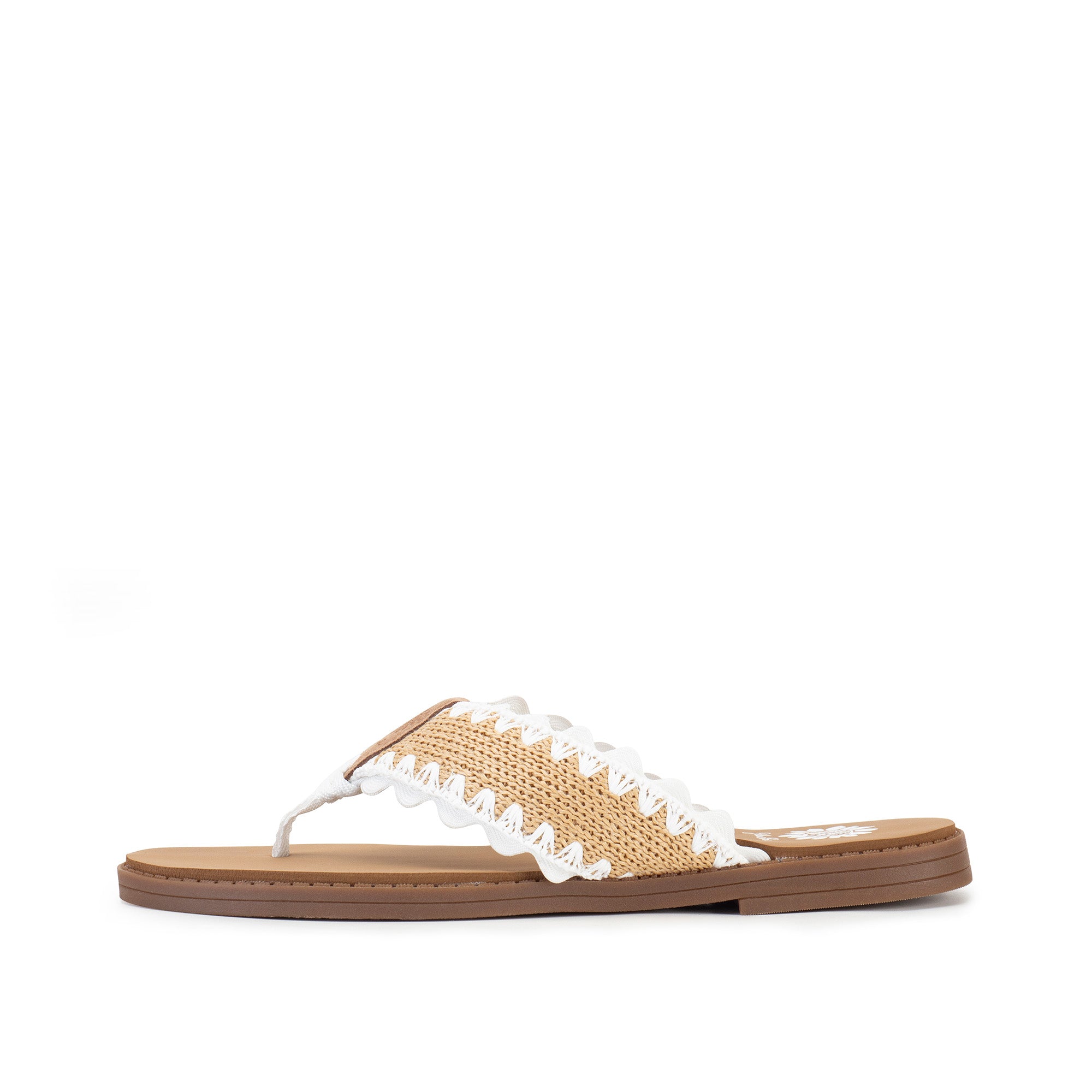IRINA is all about the details. Featuring textured, lightweight raffia straps with flirty contrasting edges to keep you ruffling along through summer and beyond.
