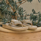Cascading stones and delicate beading trail down JEDIAH's leather straps, resting on our Signature Comfort footbed. From sunny brunches to weekend getaways, JEDIAH's sparkle goes a long way.