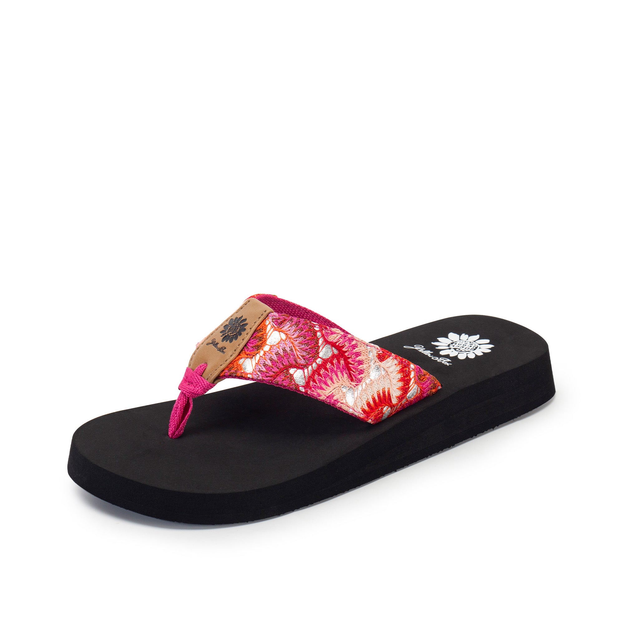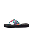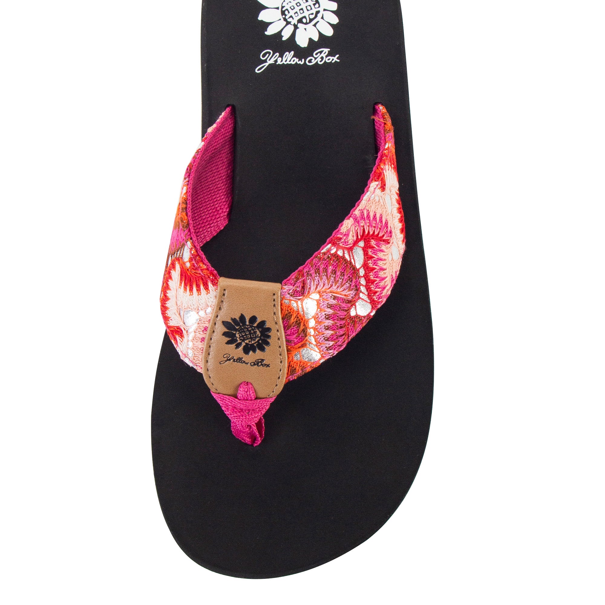 FEDONIA is the ultimate poolside print featuring ombre swirled threading straps with a center logo tab and a soft ribbon thong post. Built on our classic Signature Yellow Box EVA footbed, FEDONIA is the perfect flip flop for the water's edge.