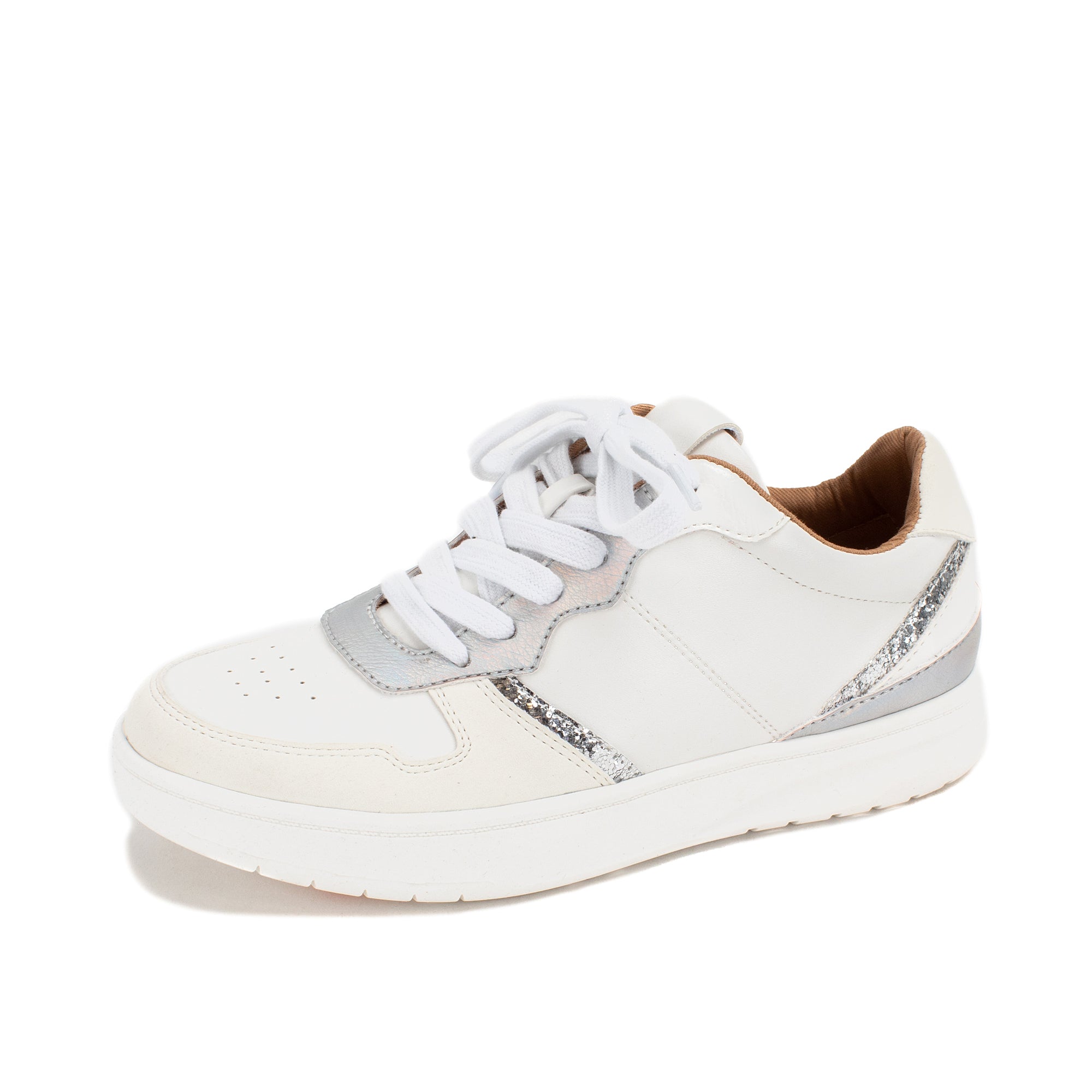 Refresh your kick game for the year with the all-new NIKO—our modern take on the simple court sneaker. Showcasing mixed media perfection with an upper crafted of glitter, metallics, and smooth-to-textured faux leather materials, finished with a two-tone vintage-inspired outsole for a touch of retro charm.