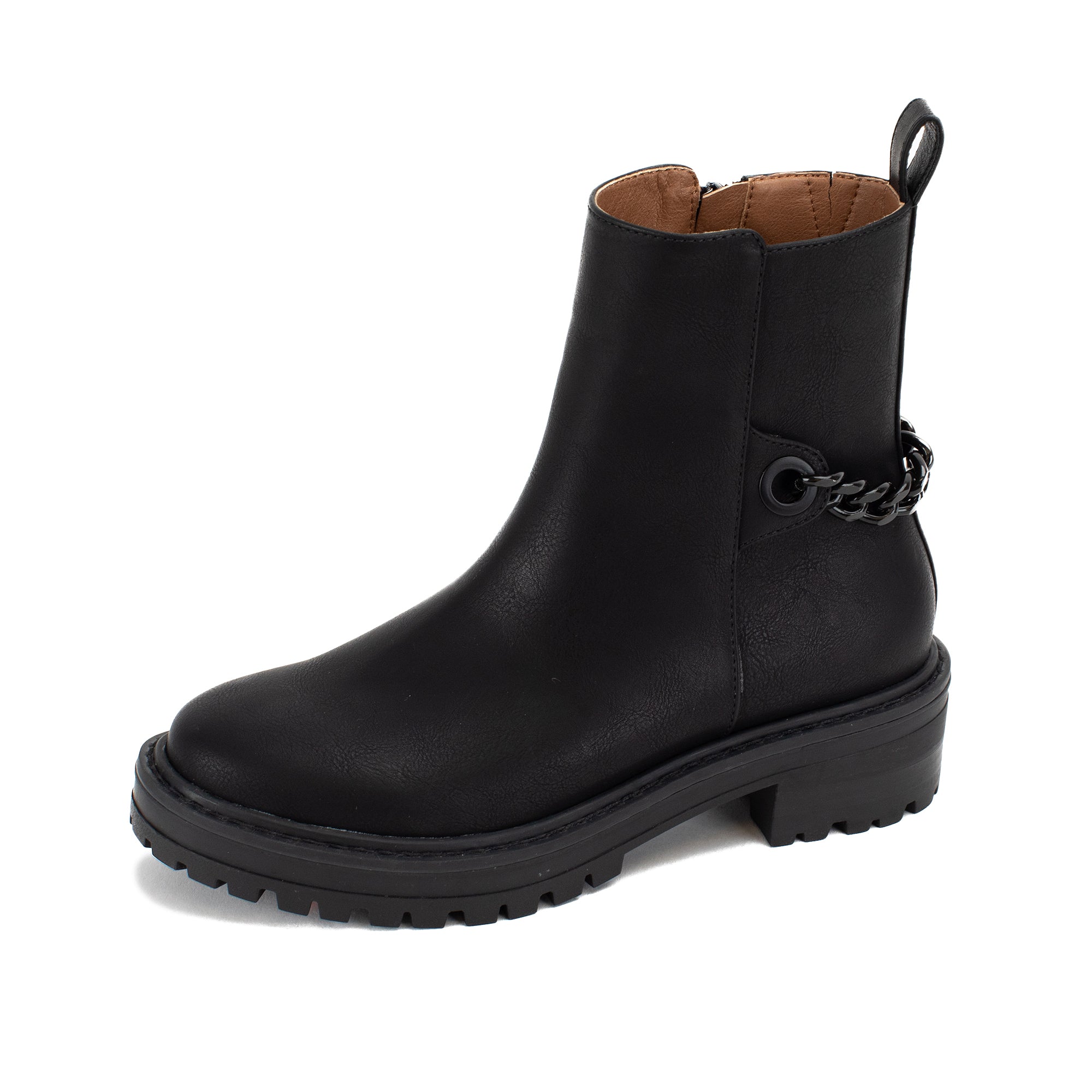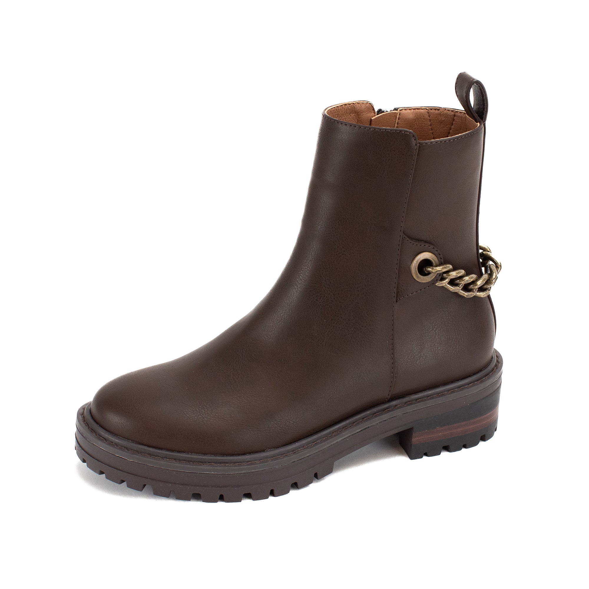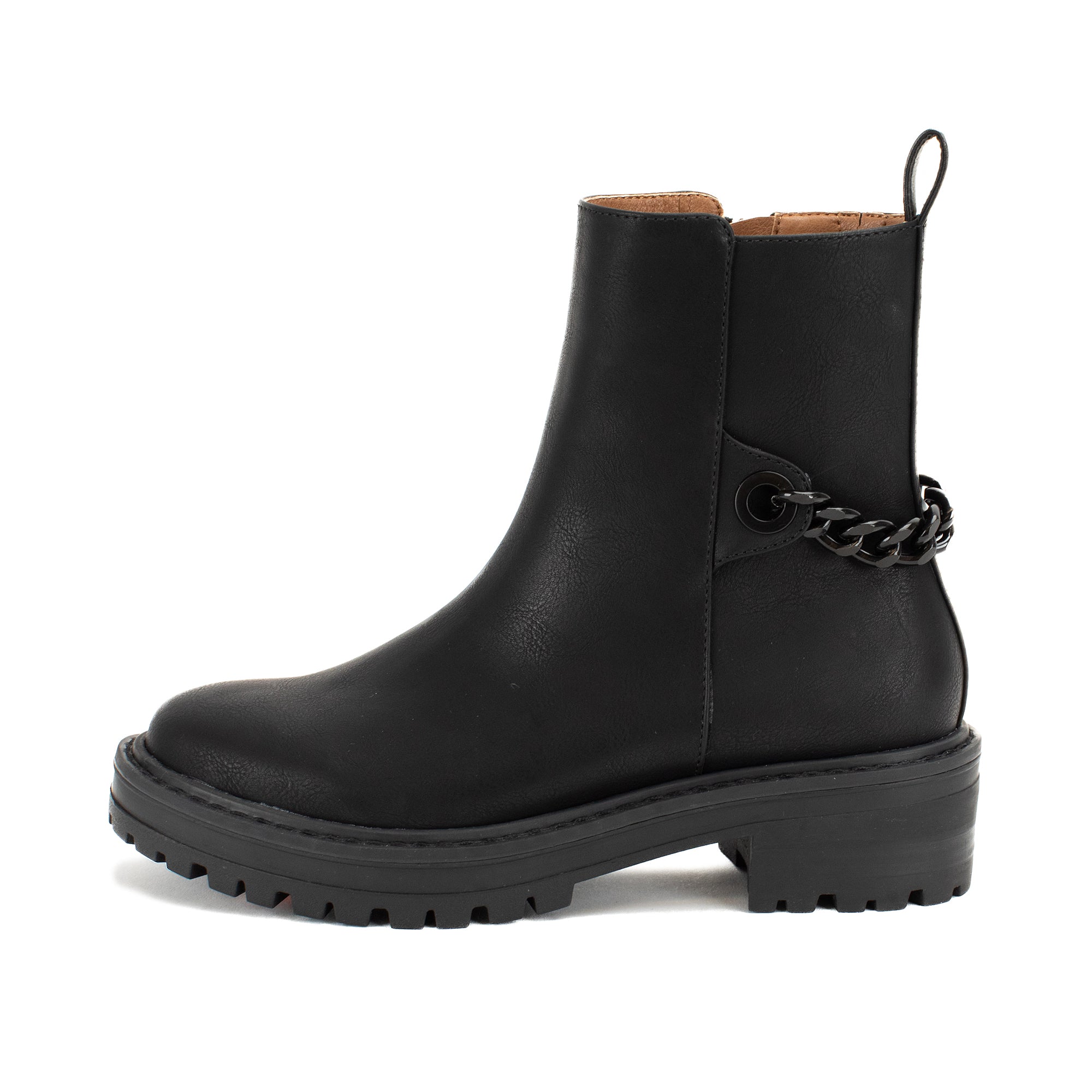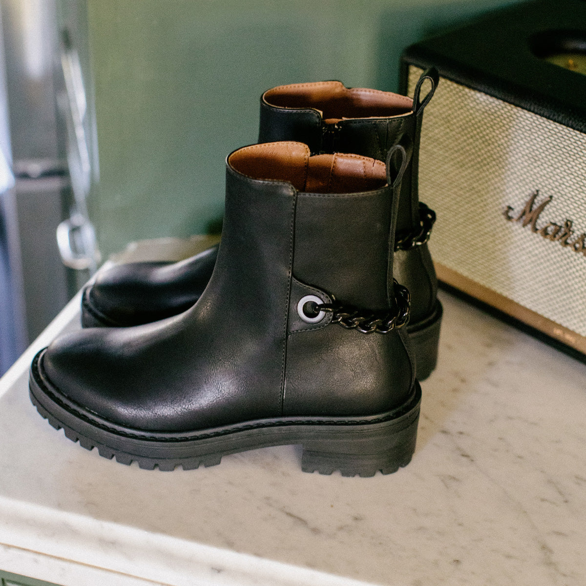 Update the minimalist combat boot a rugged but feminine chain detail.