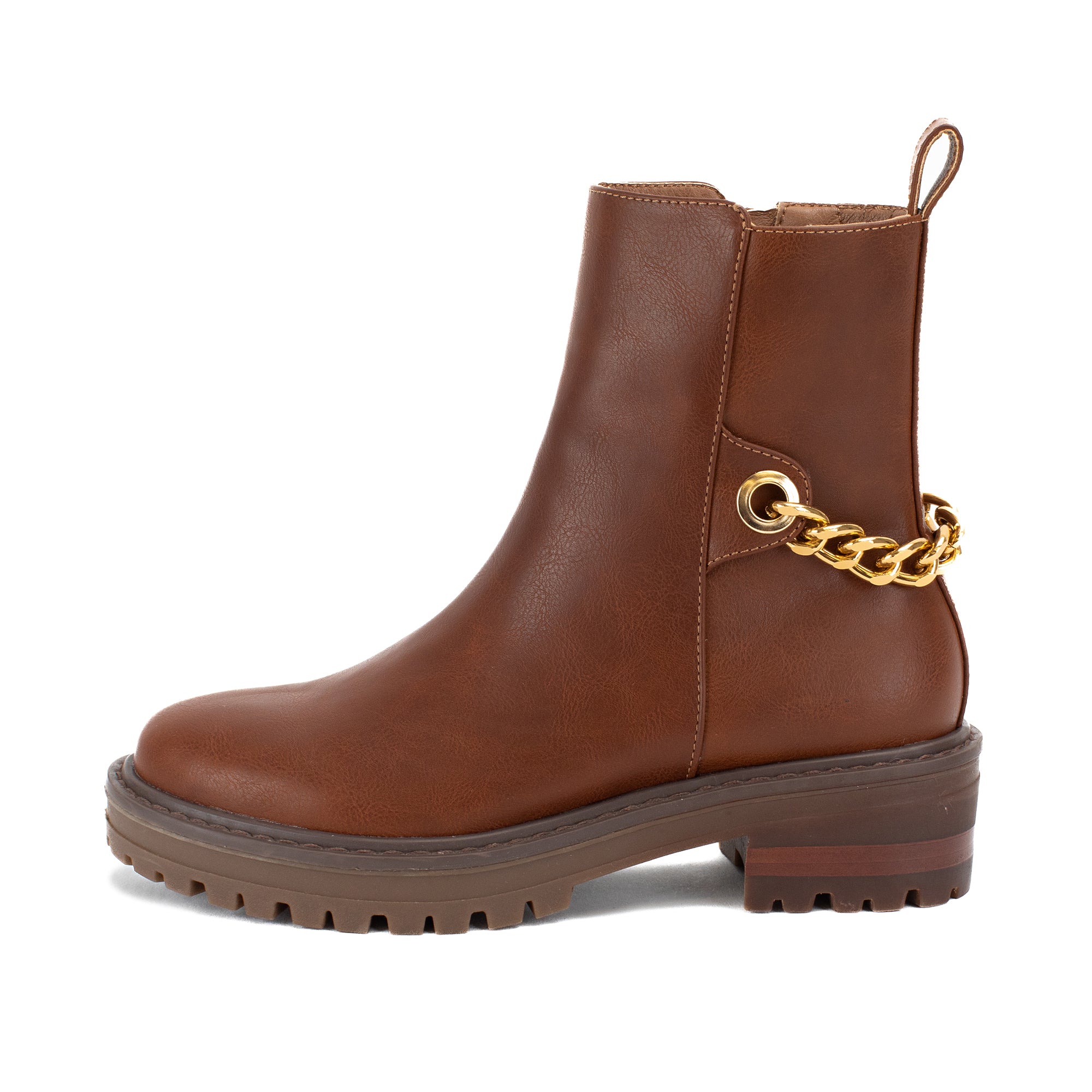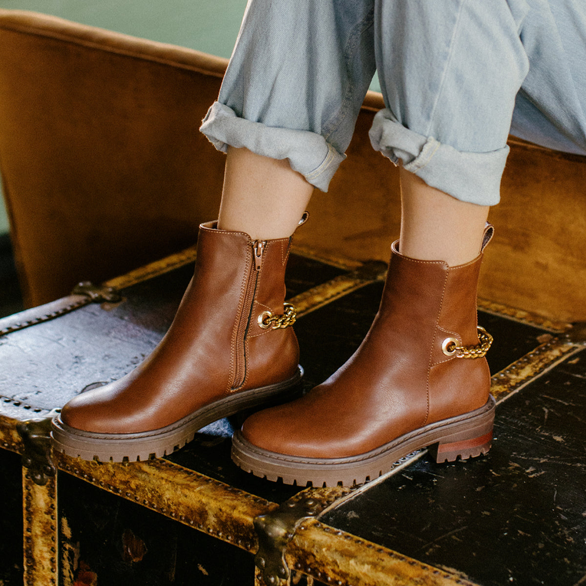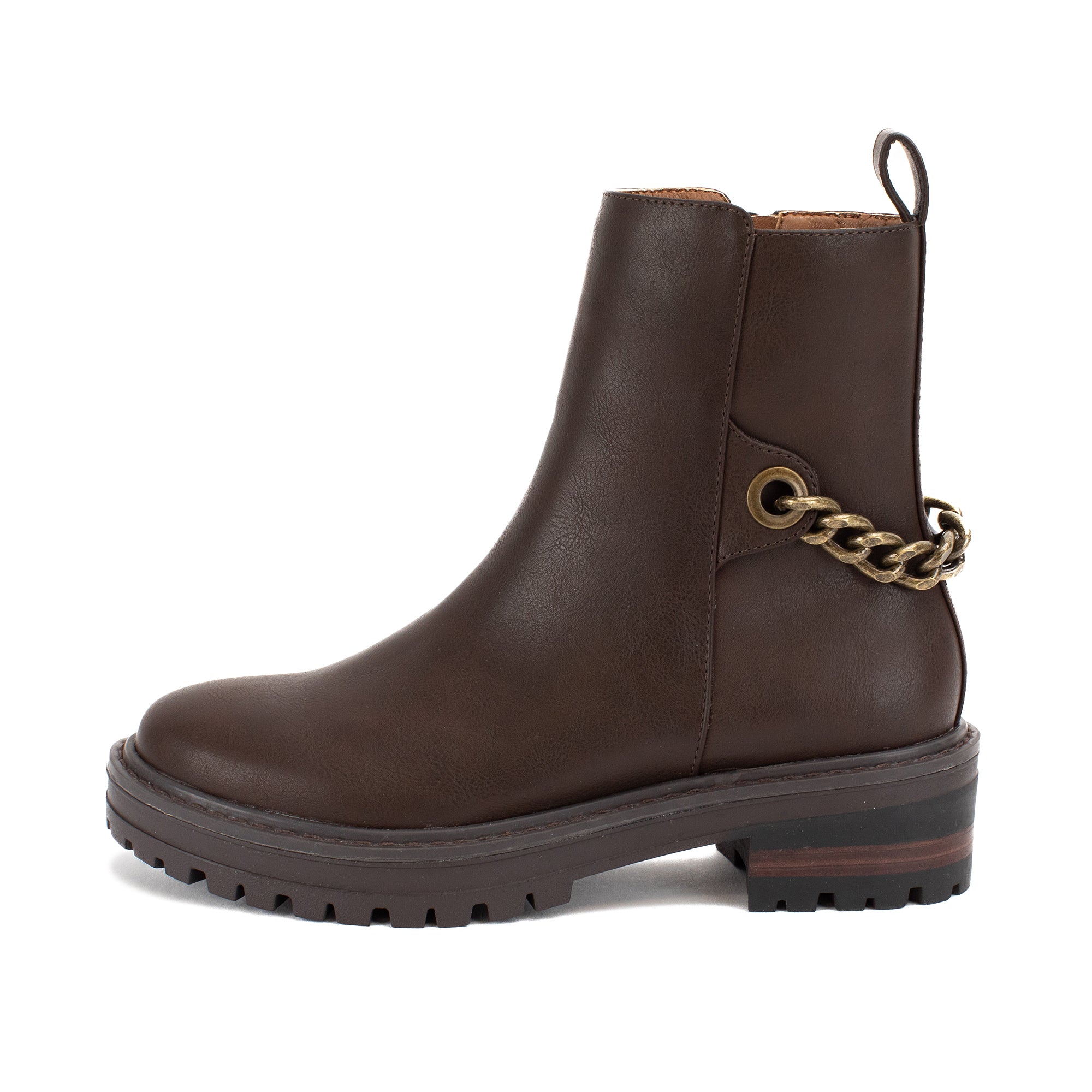 Update the minimalist combat boot a rugged but feminine chain detail.