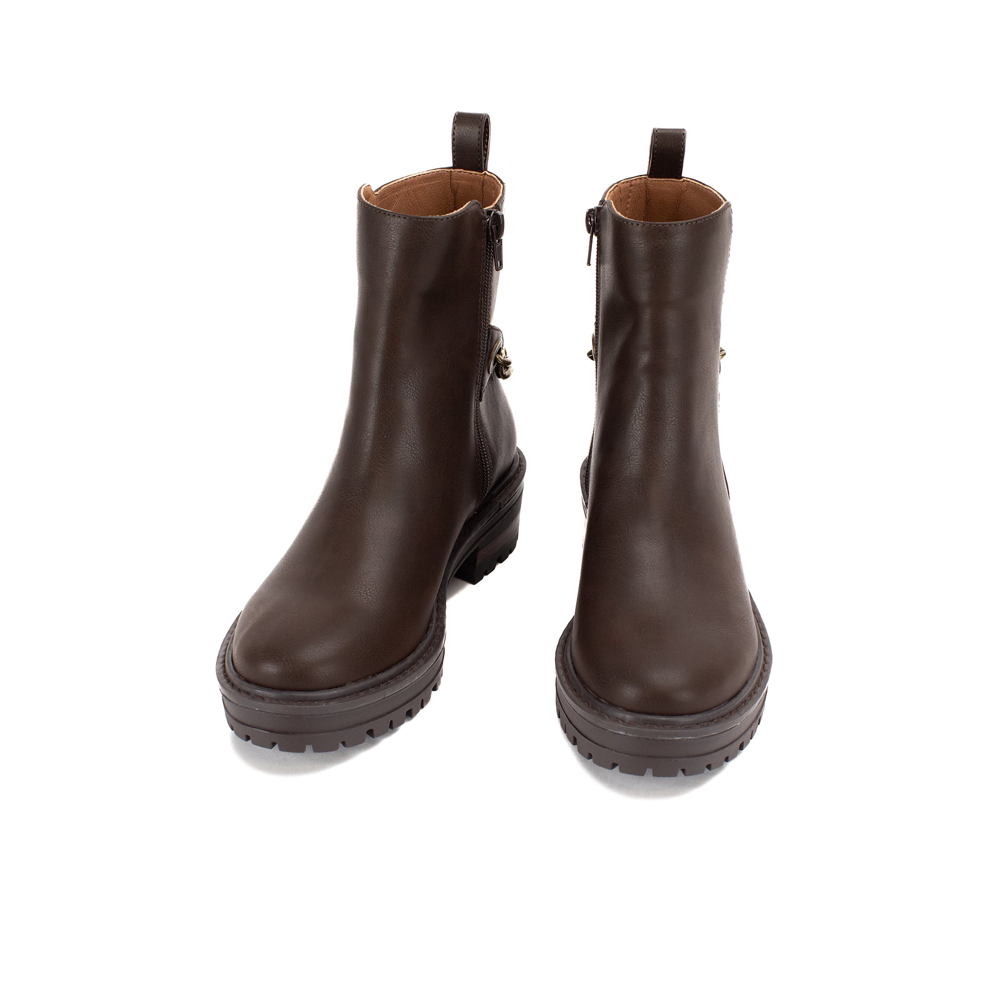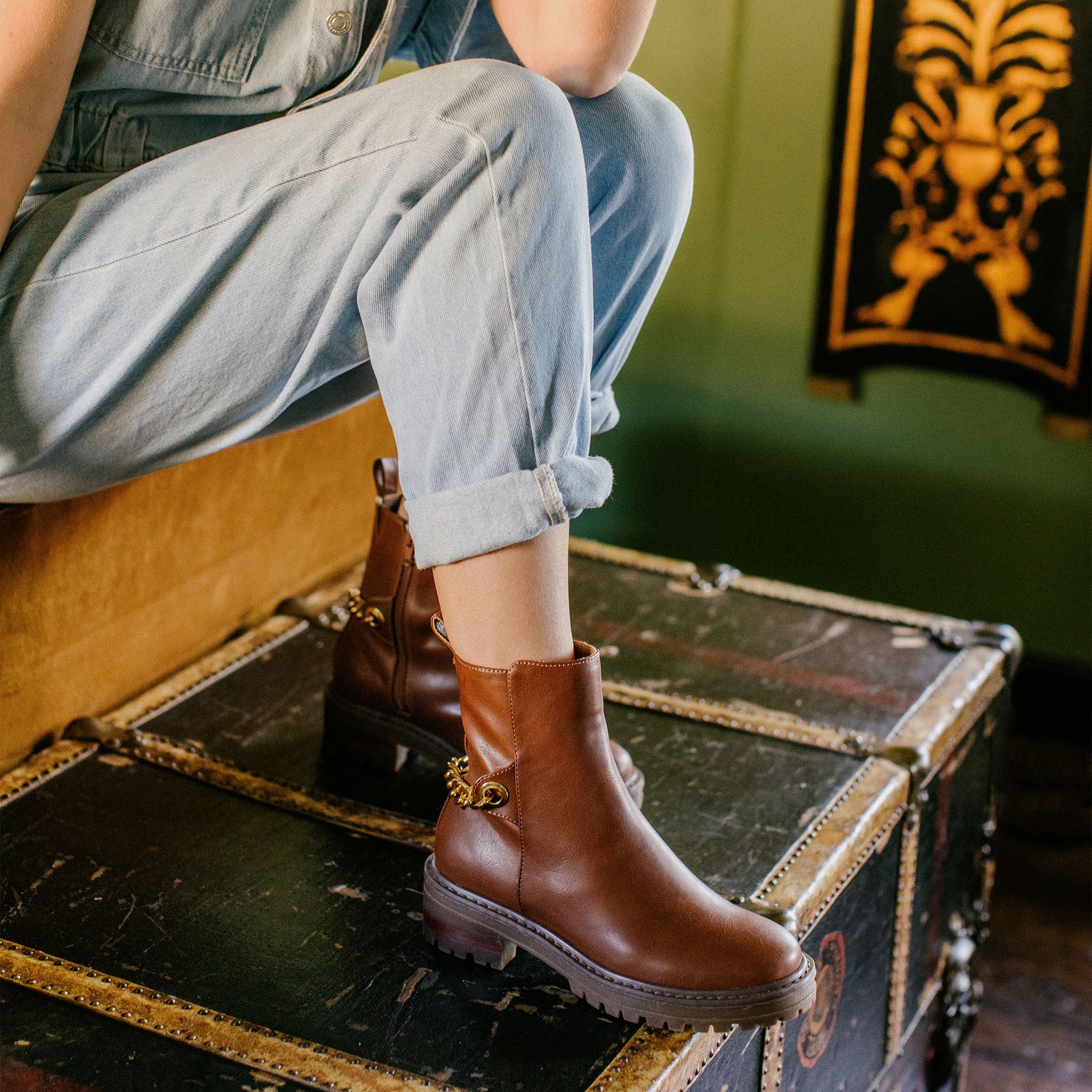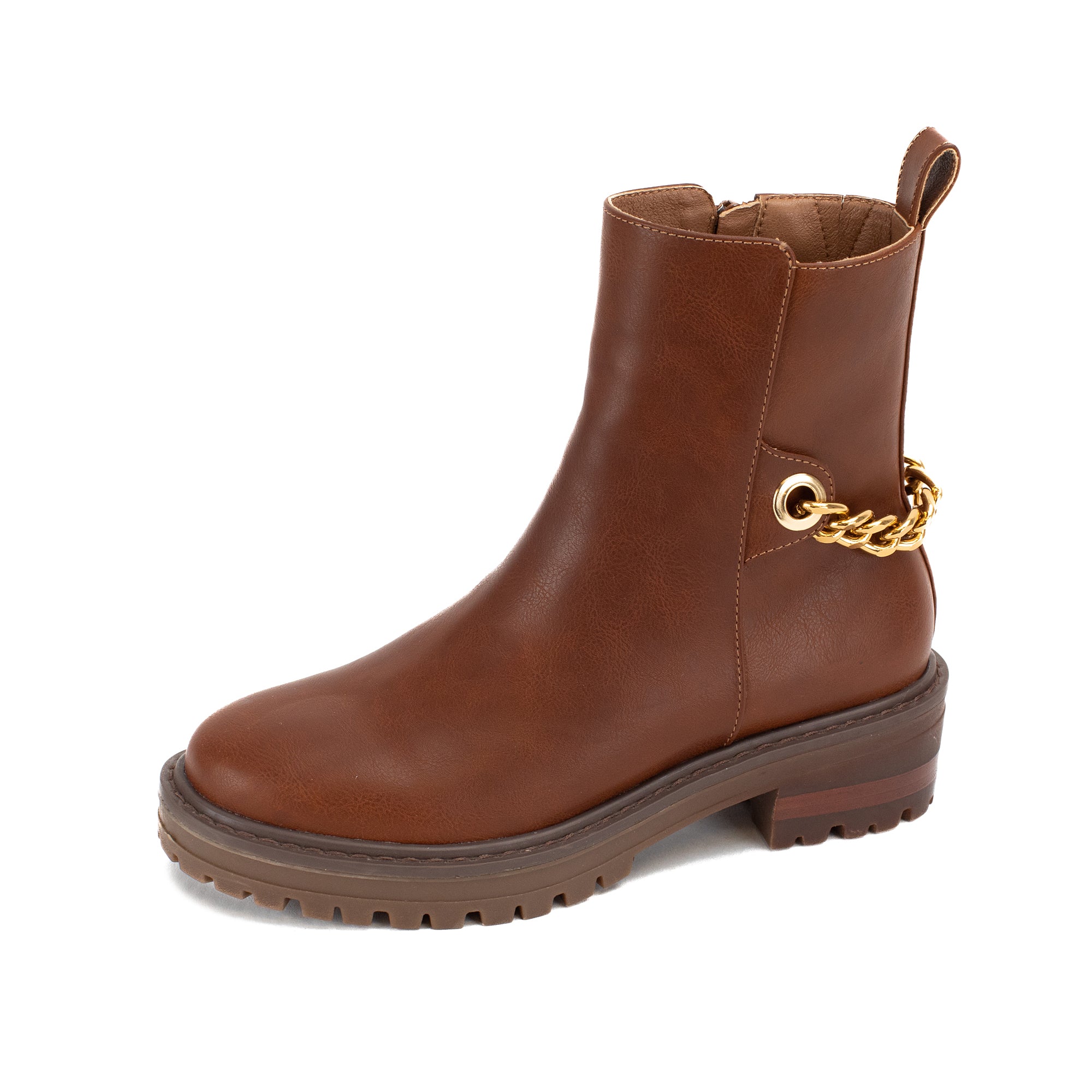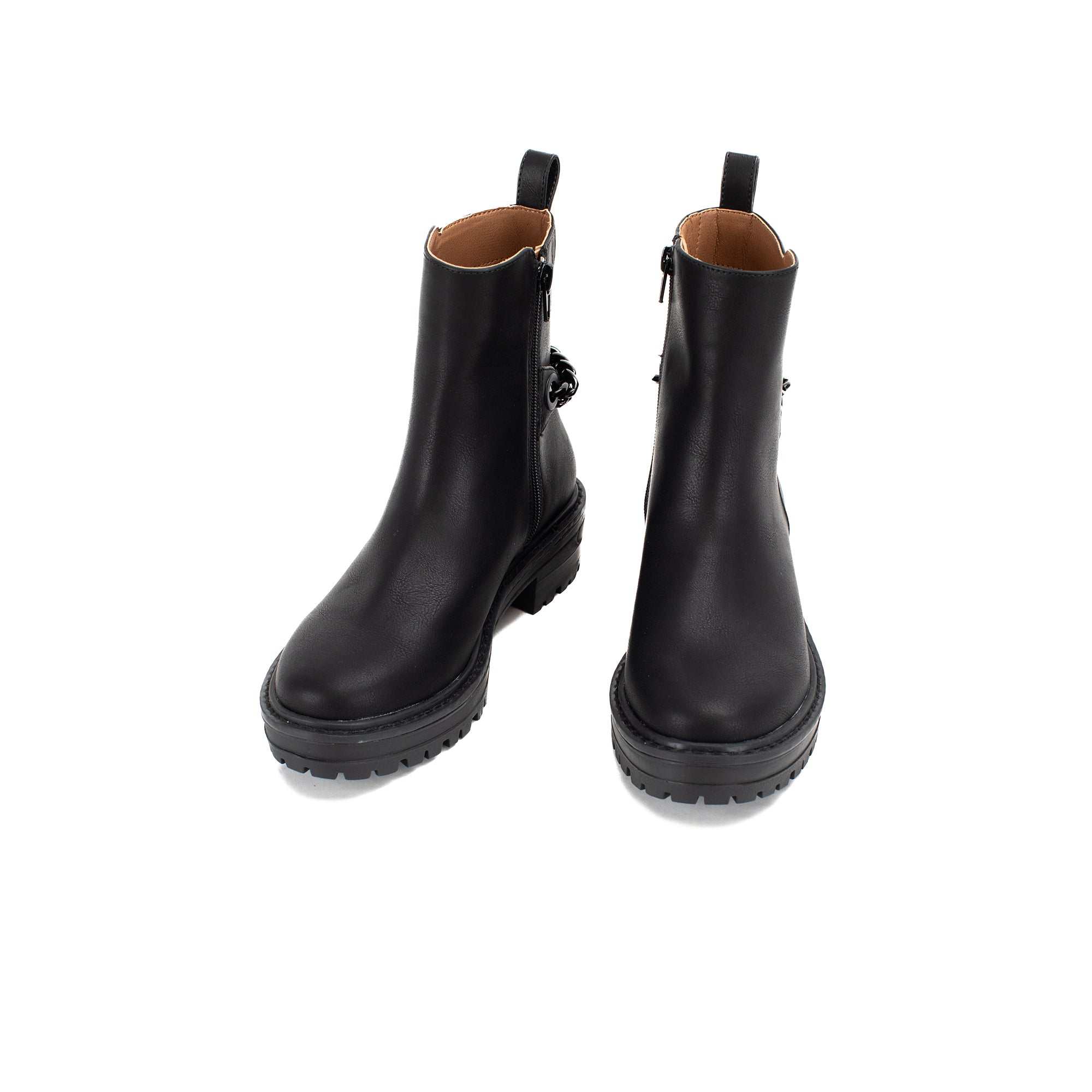 Update the minimalist combat boot a rugged but feminine chain detail.