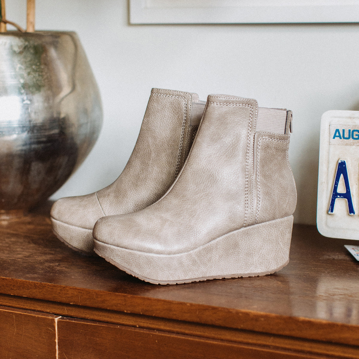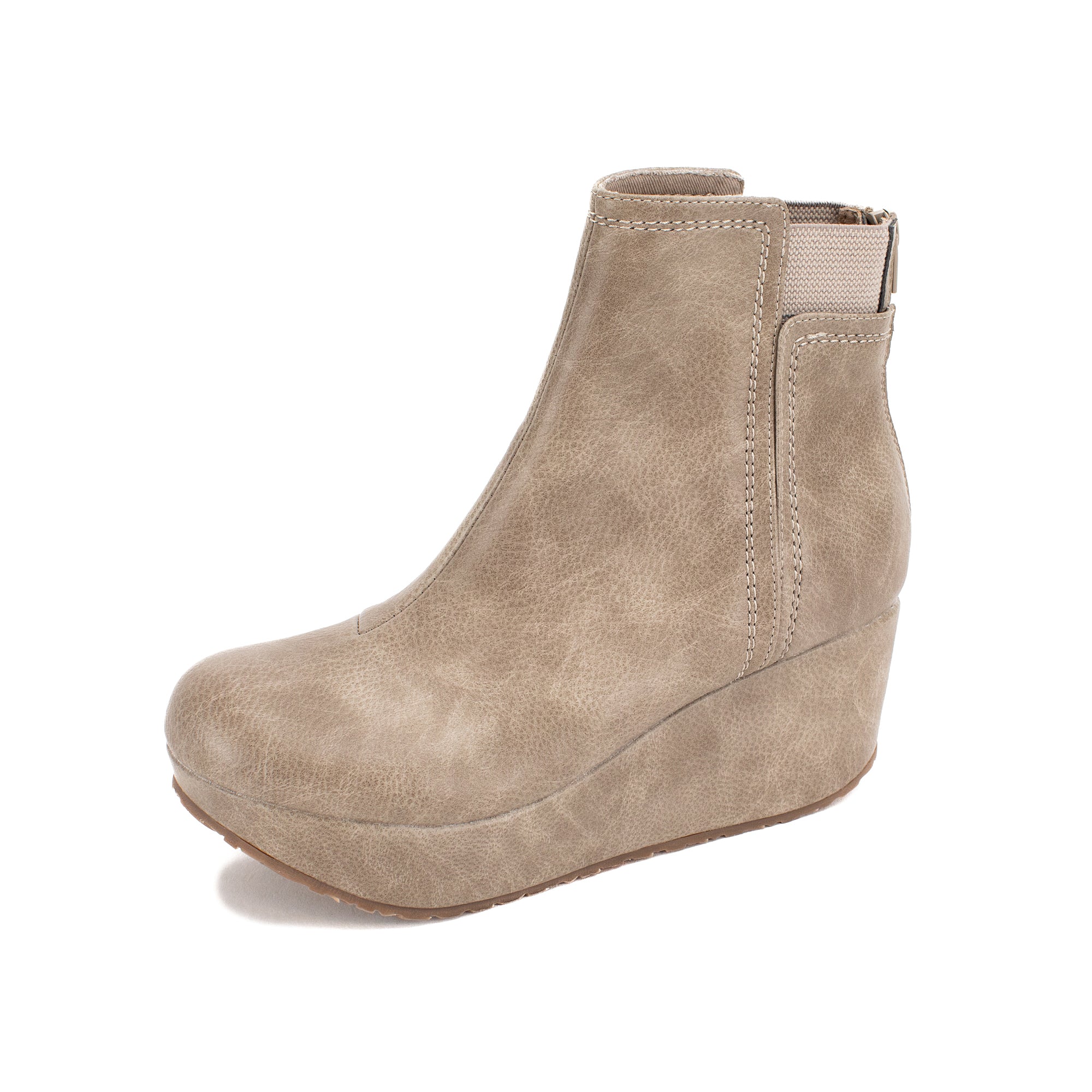 The BRITTANY wedge ankle boot is just as fashionable as it is versatile. This lightweight wedge bootie features a flexible elasticized collar and a convenient back zipper that helps the boot stay snug and in place.