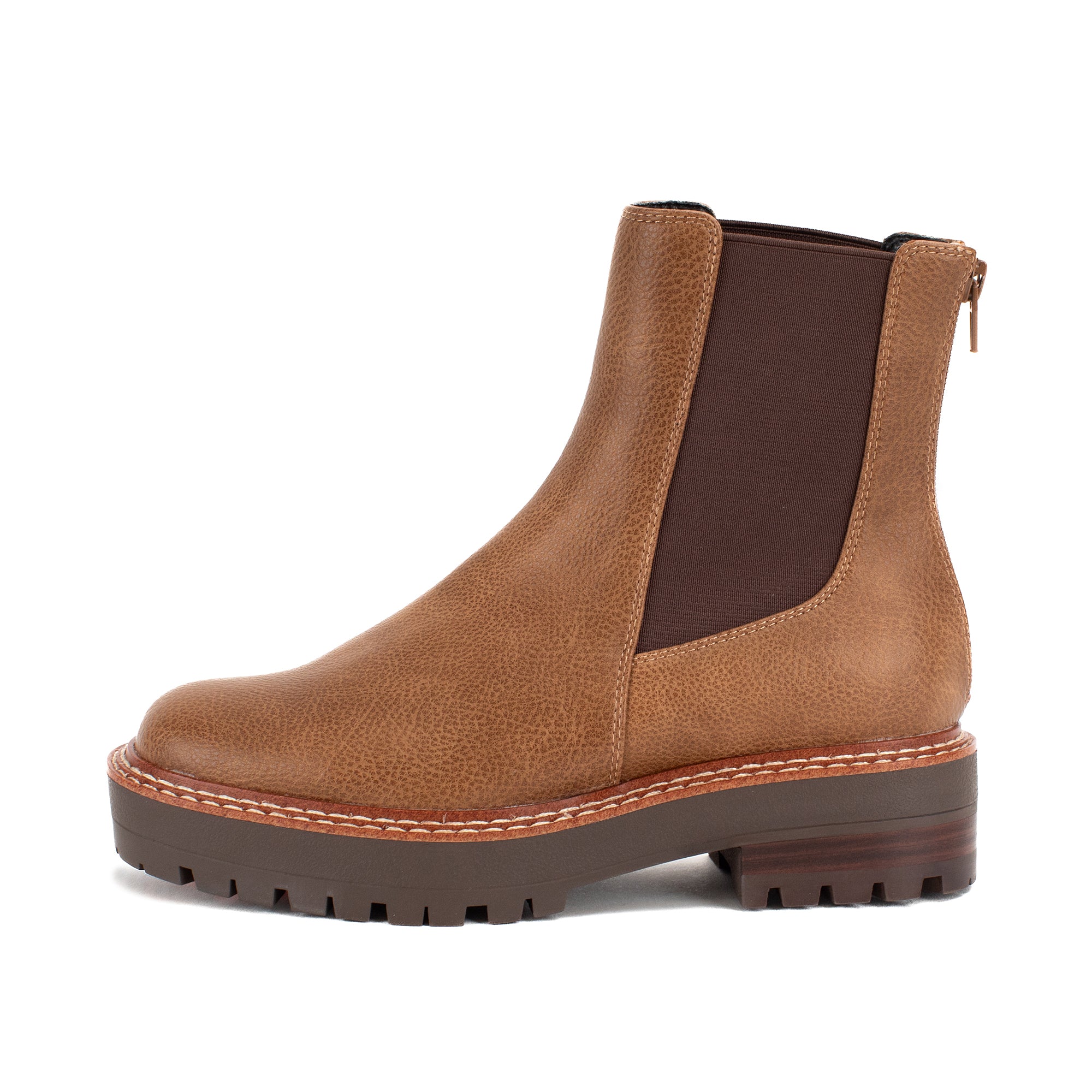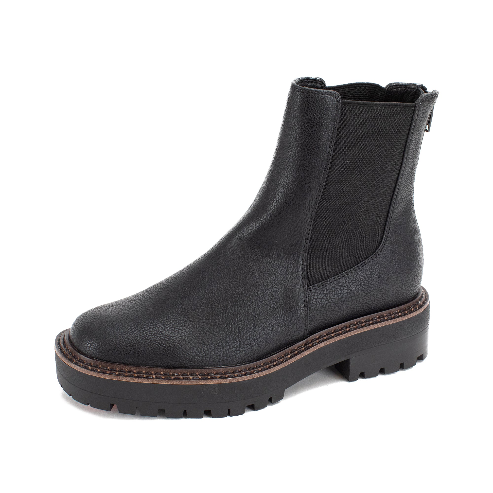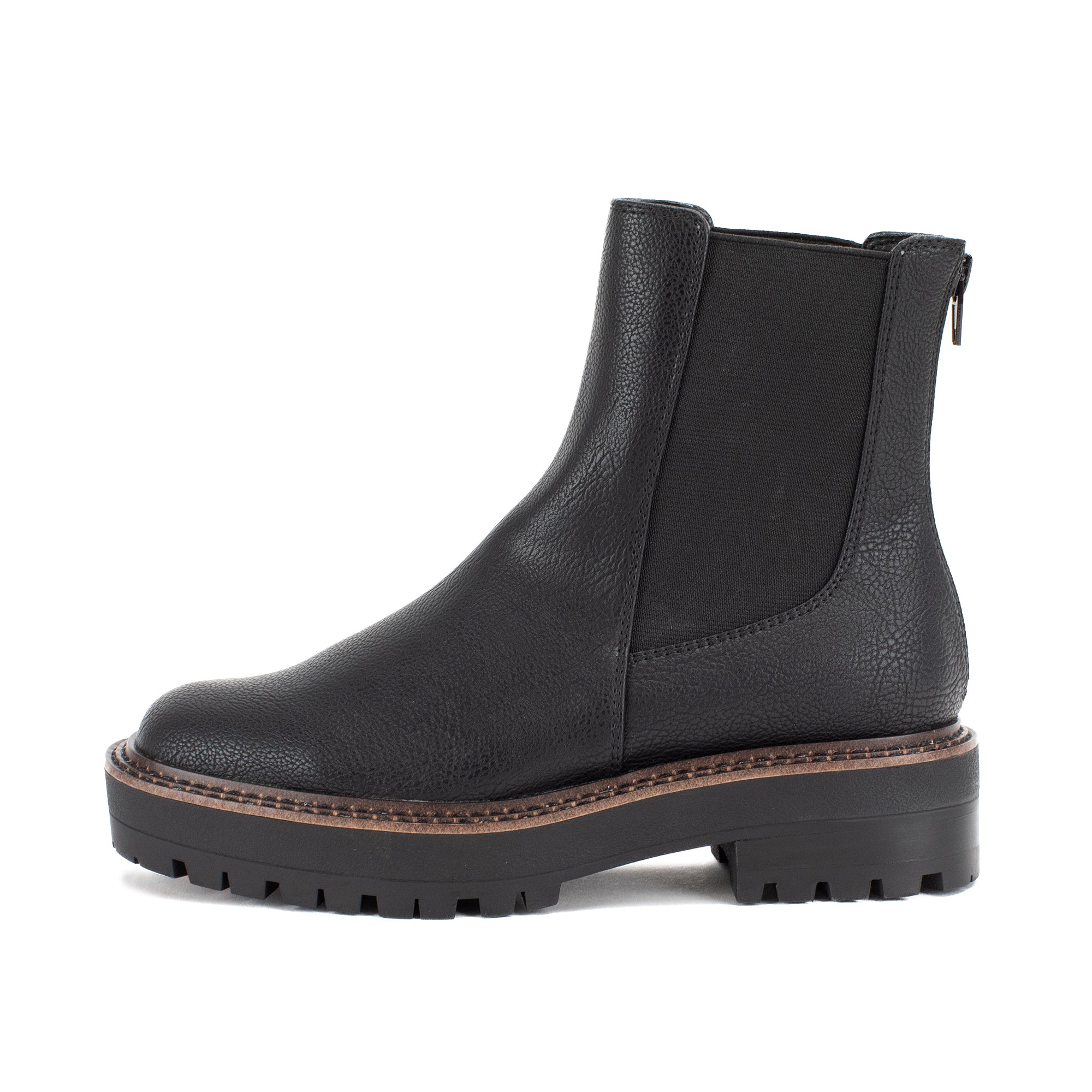 Our SONIA low-heeled Chelsea boots are a classic must-have. The pebbled faux leather and tapered silhouette create a timeless look, while the back zipper allows for easy on and off.