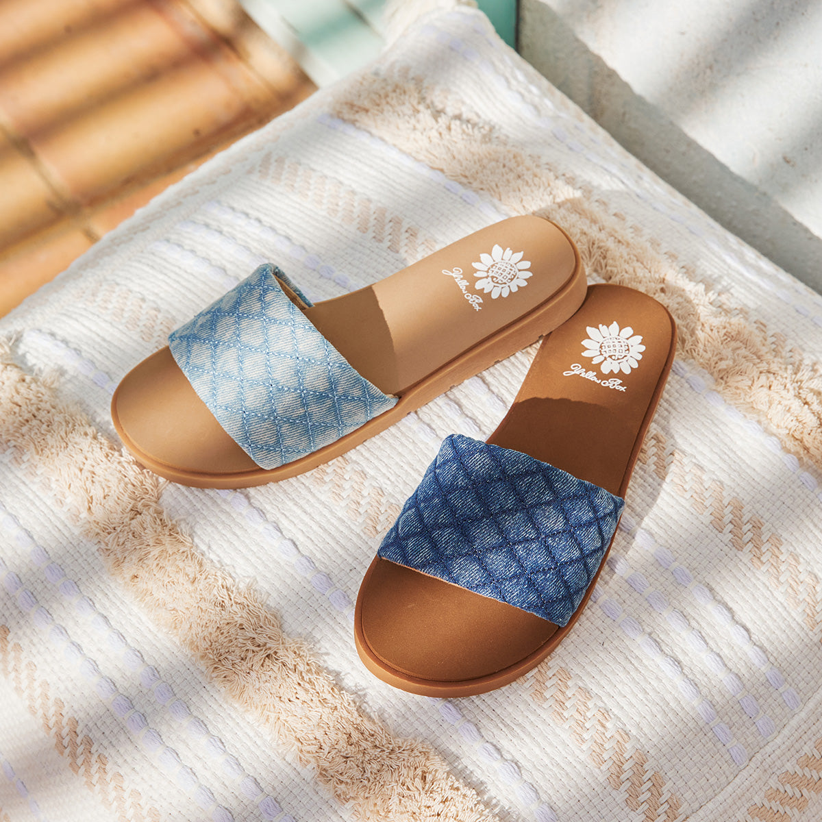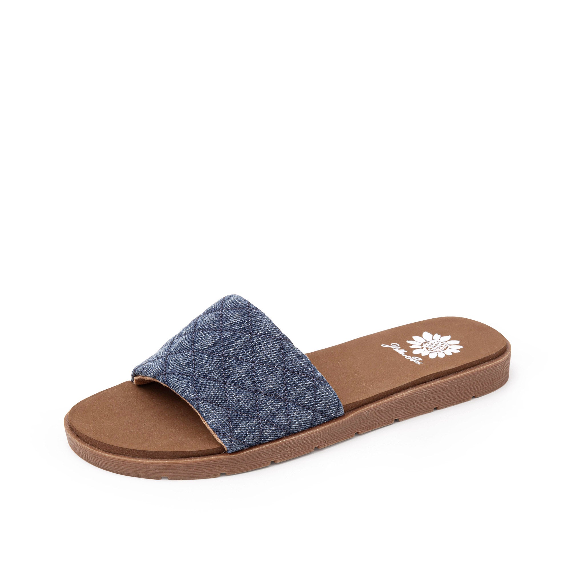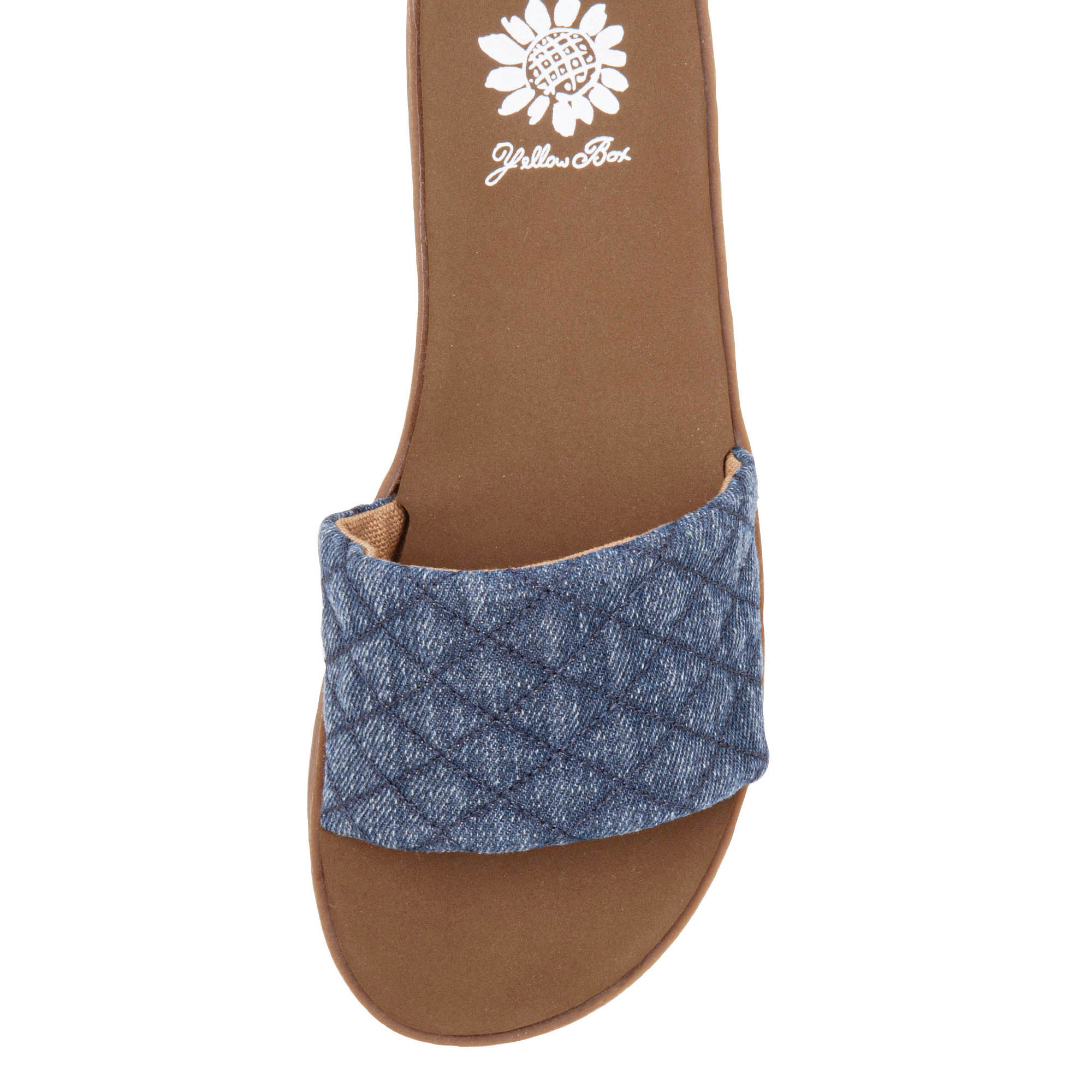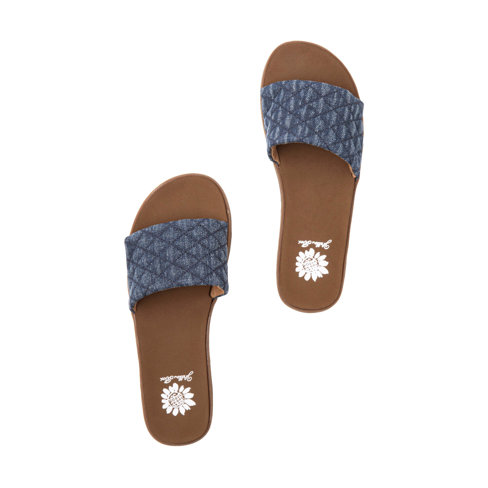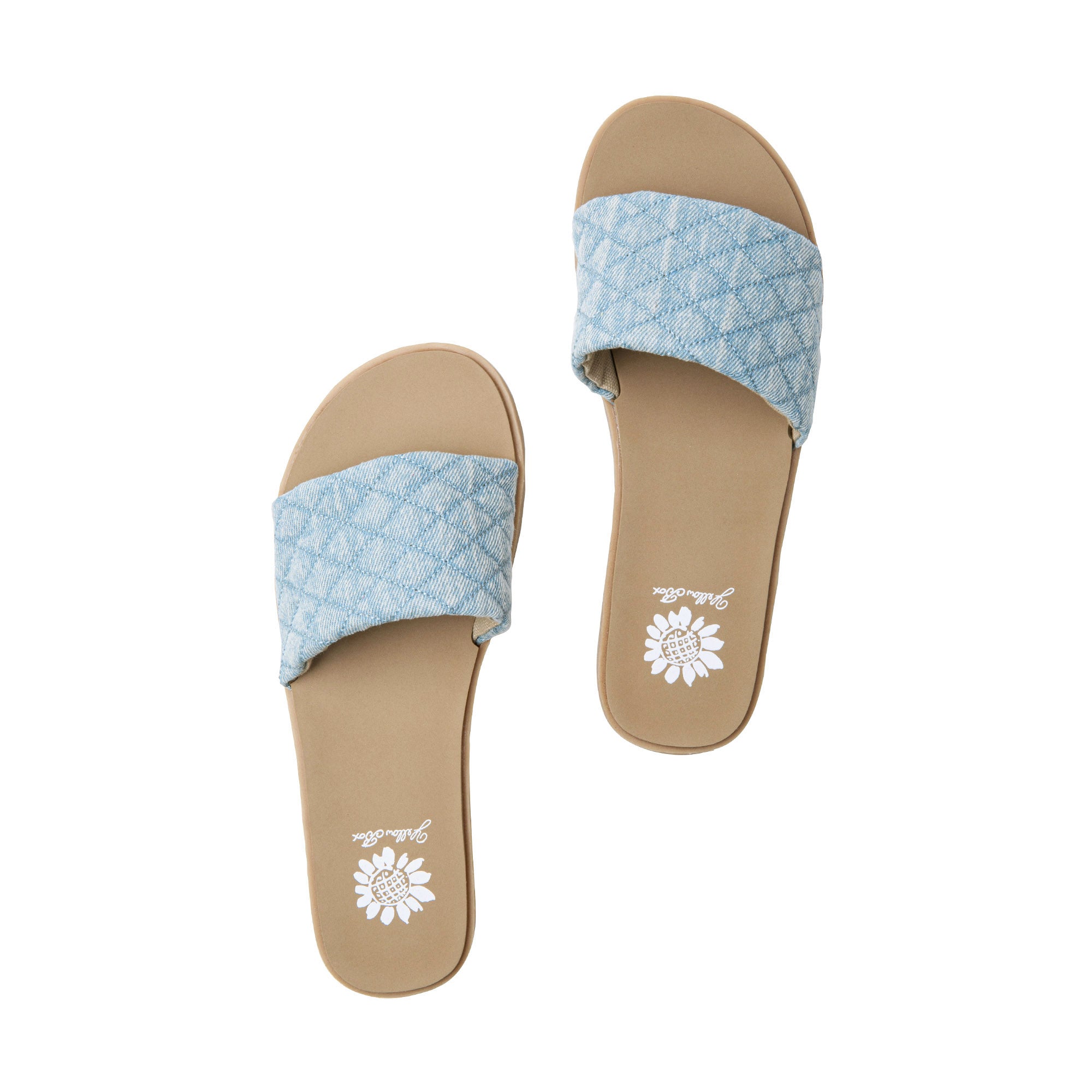 Compliment denim-on-denim outfits with the FITZY slide sandal. Featuring adorable puffy, quilted textures and our comfortable Signature Yellow Box EVA footbed.