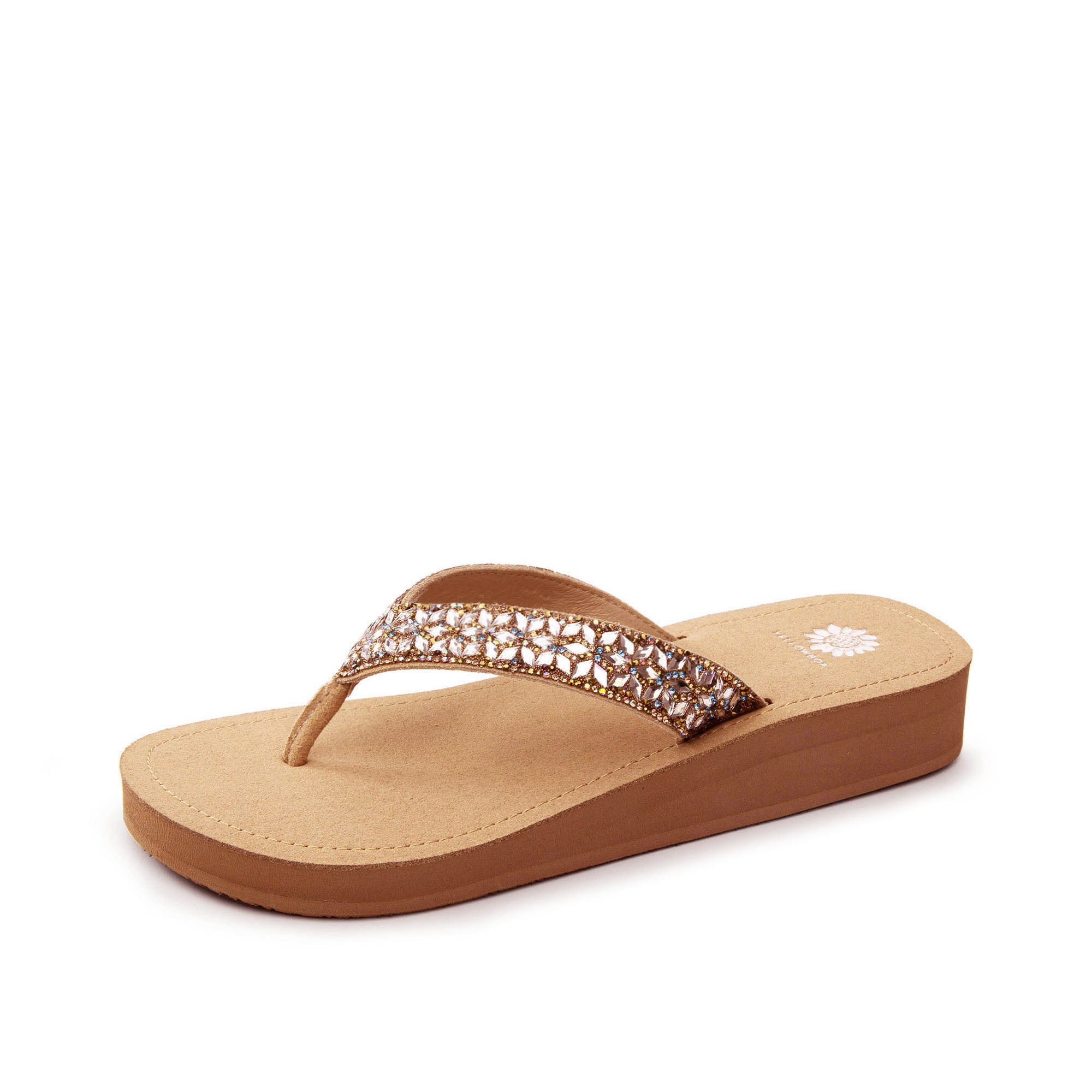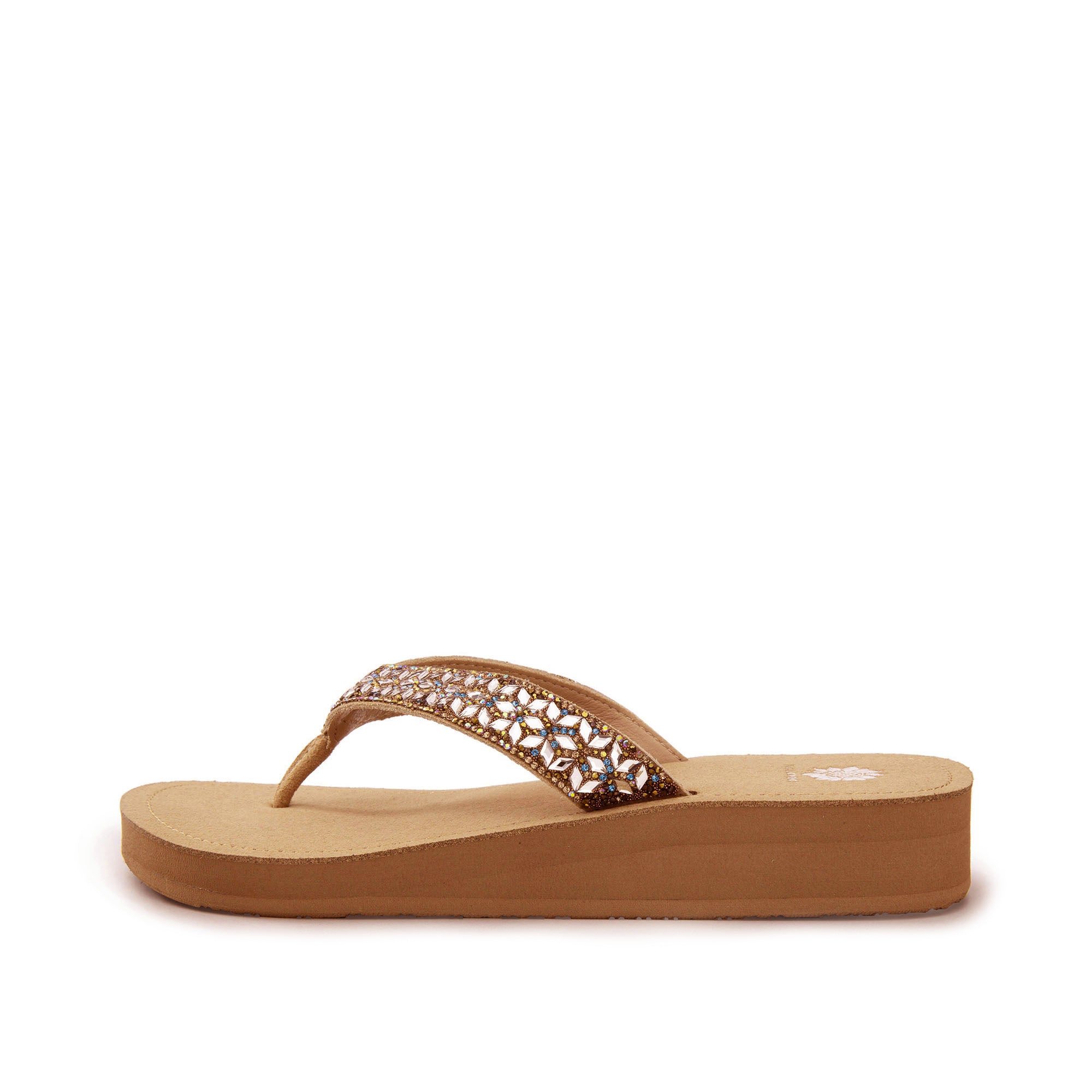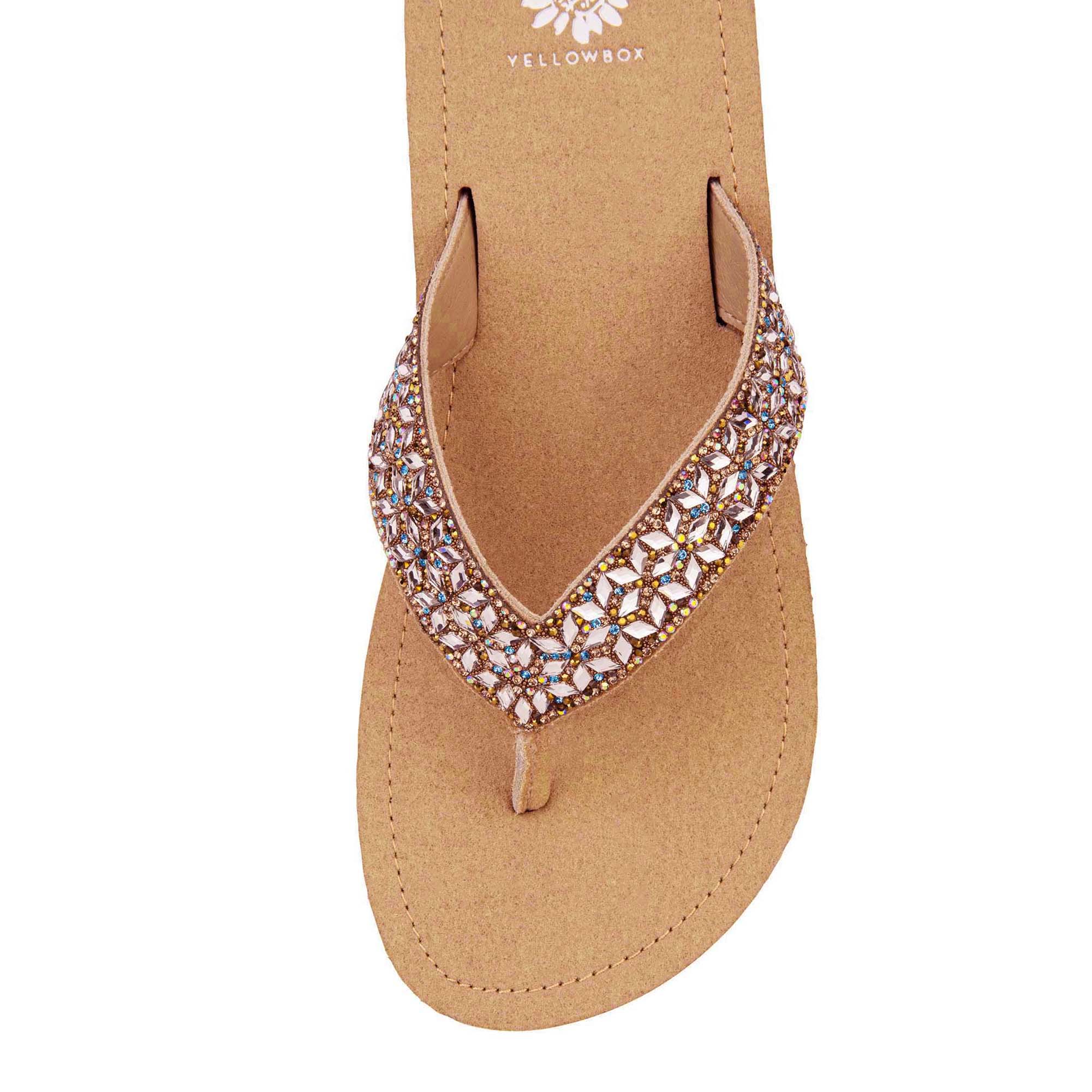 JORDYN is a chic sandal featuring a strap adorned with sparkling crystals, adding a touch of elegance and sparkle to any outfit. Perfect for day-to-night looks, it combines comfort with sophisticated style.