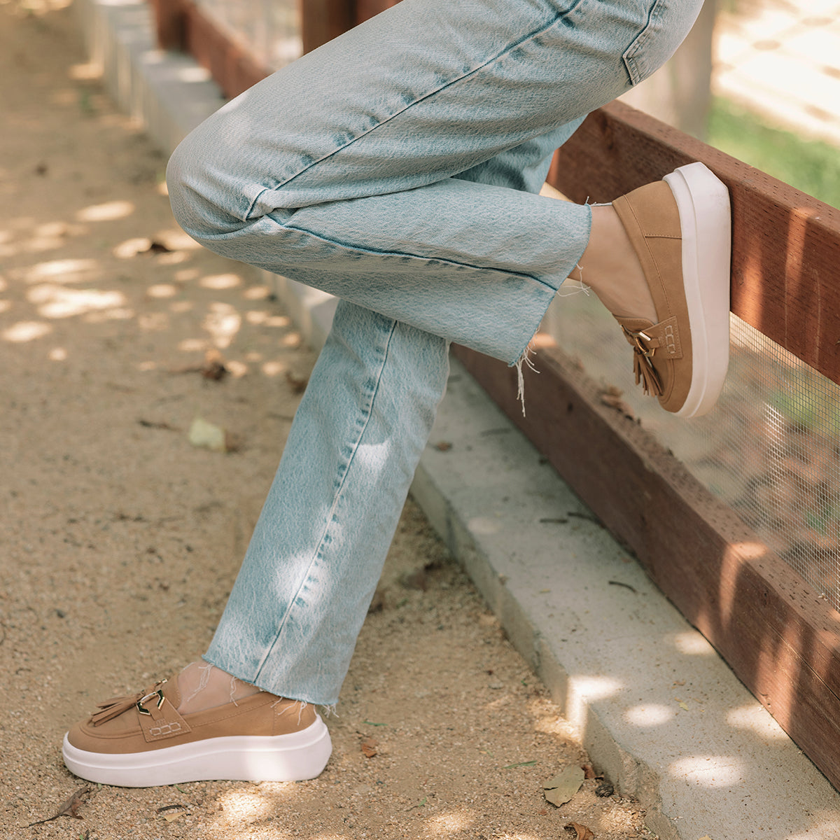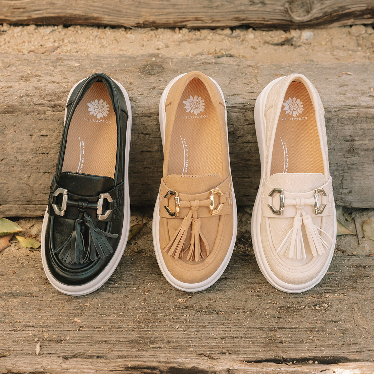 Say hello to ERINA, our classic and modern slip-on loafer featuring shiny hardware accents with flirty tassels. The comfort and versatility of the padded insole can easily be removed for added convenience and customization.