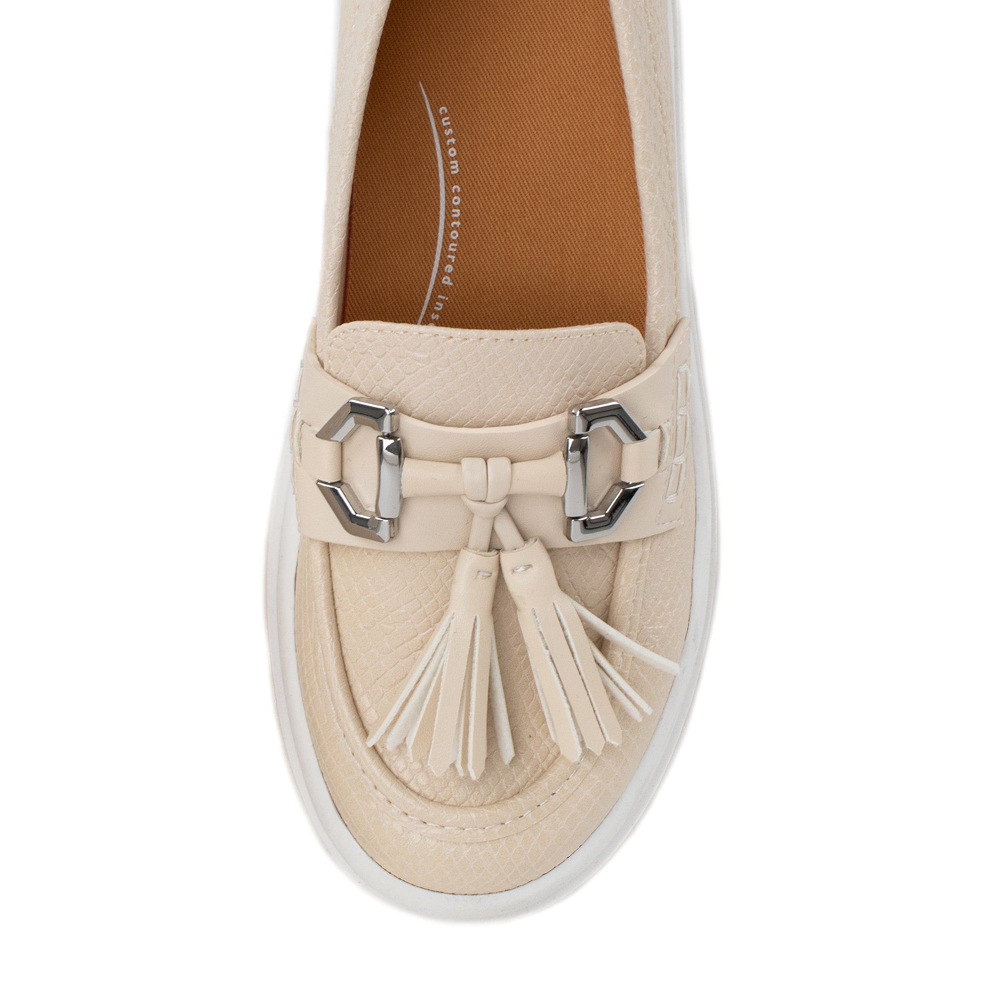 Say hello to ERINA, our classic and modern slip-on loafer featuring shiny hardware accents with flirty tassels. The comfort and versatility of the padded insole can easily be removed for added convenience and customization.