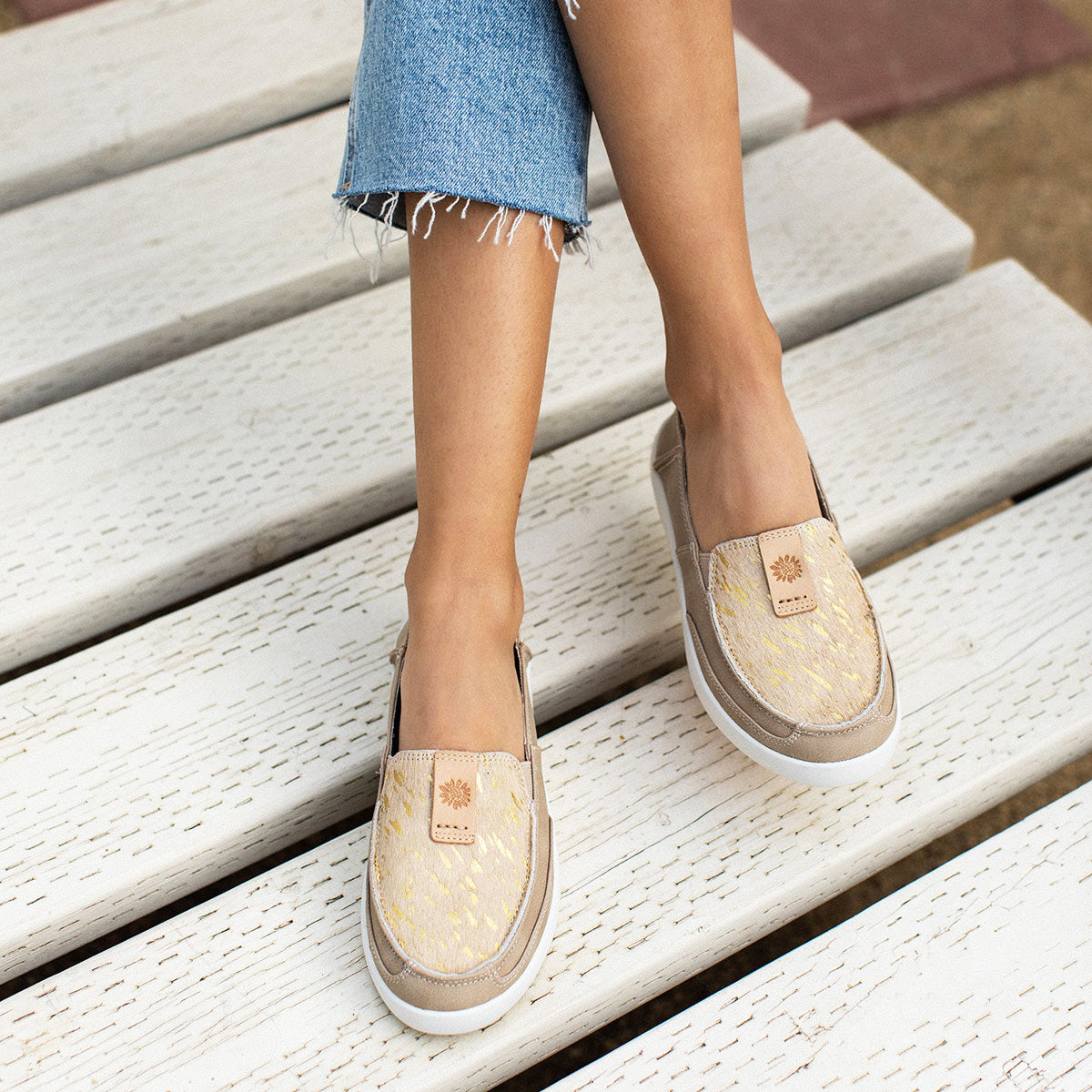 The Oleviah slip-ons are made from premium materials and mixed textures that come in cow print, camo, stars'n stripes, and more!Closure: lace-up
