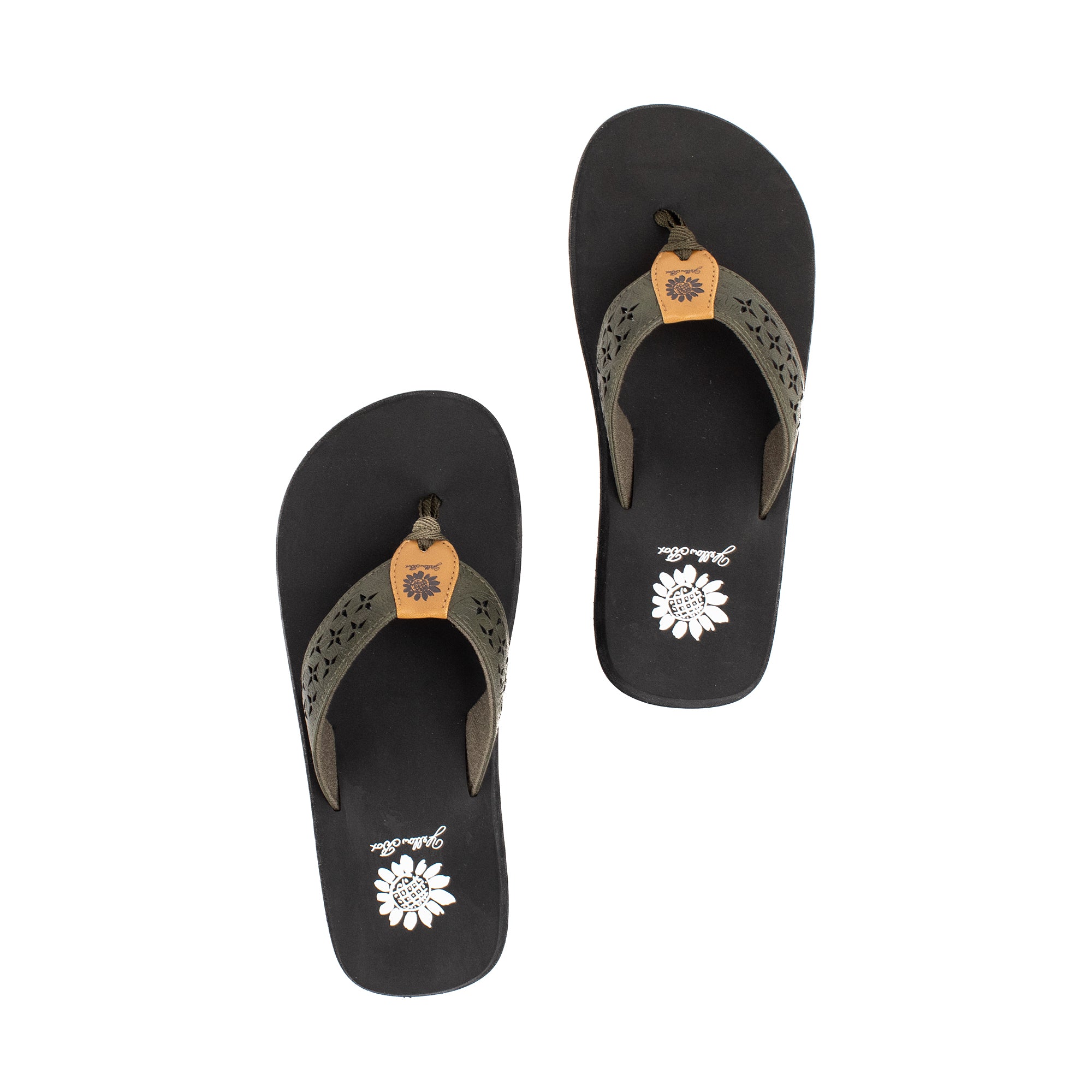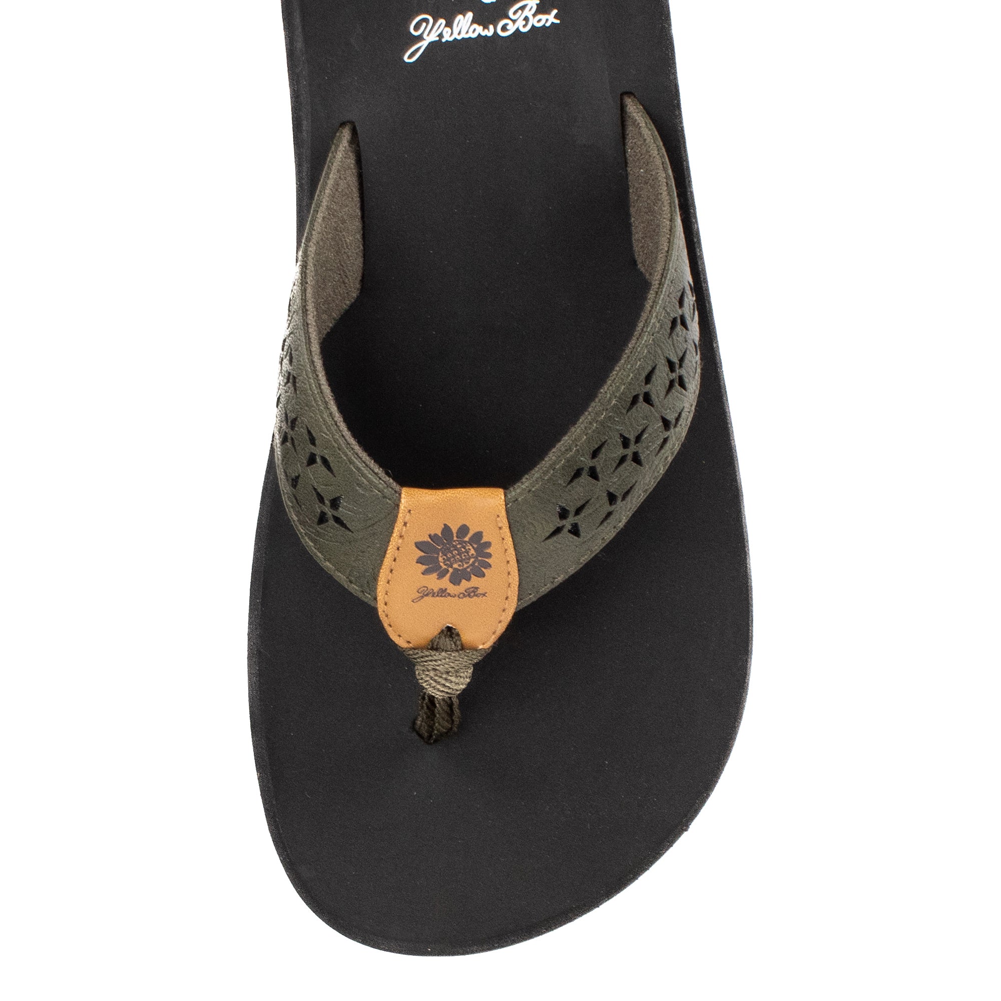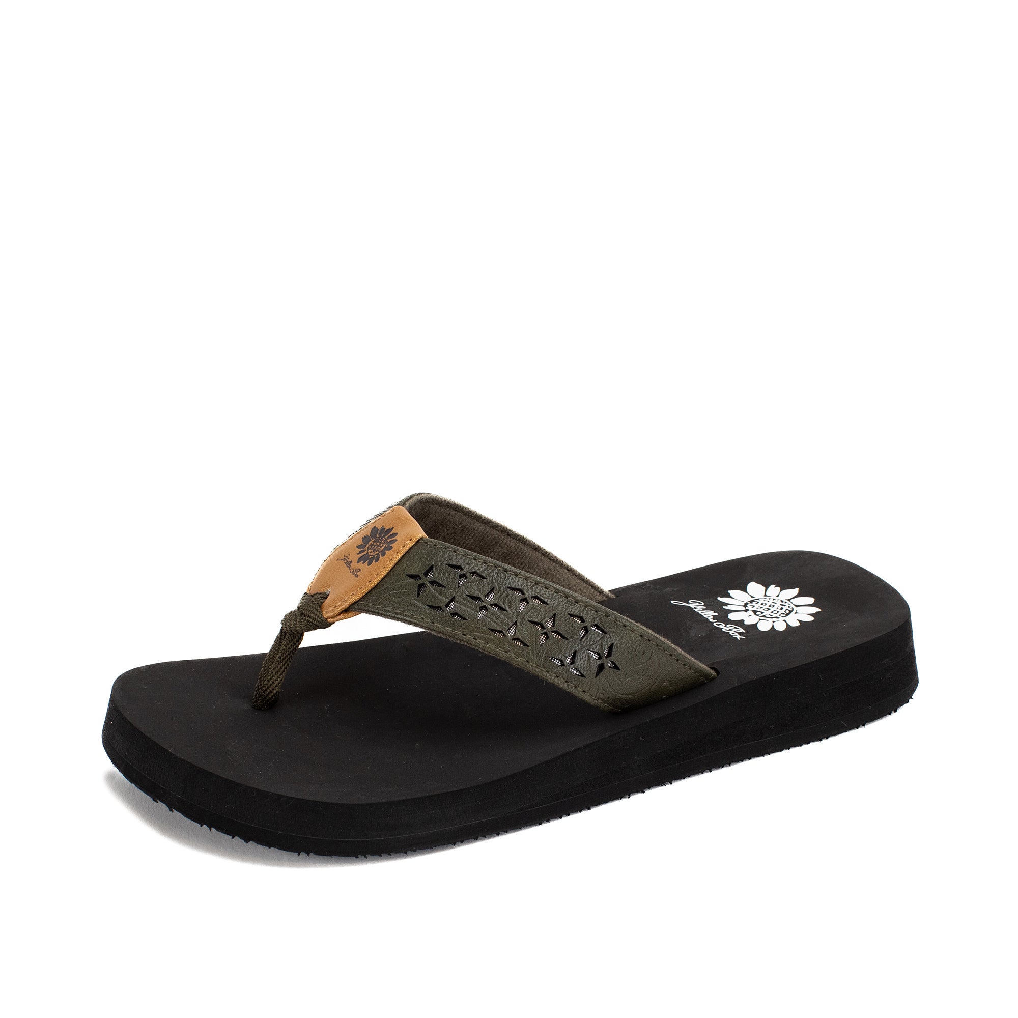 This casual sandal features an embossed Western-pattern strap with laser cuts design.