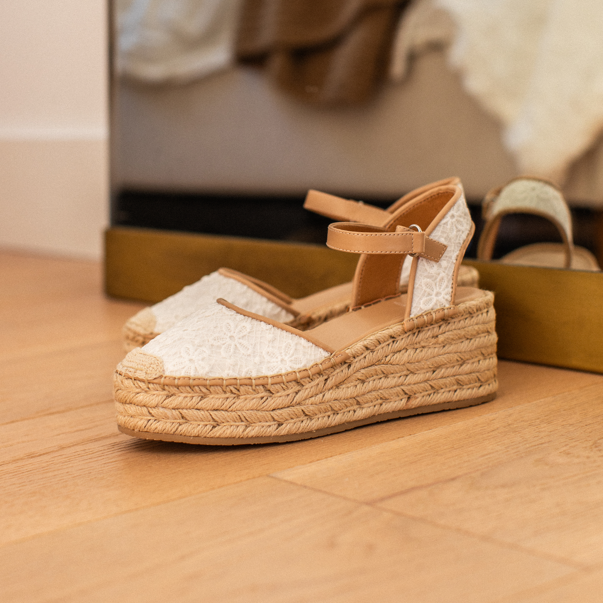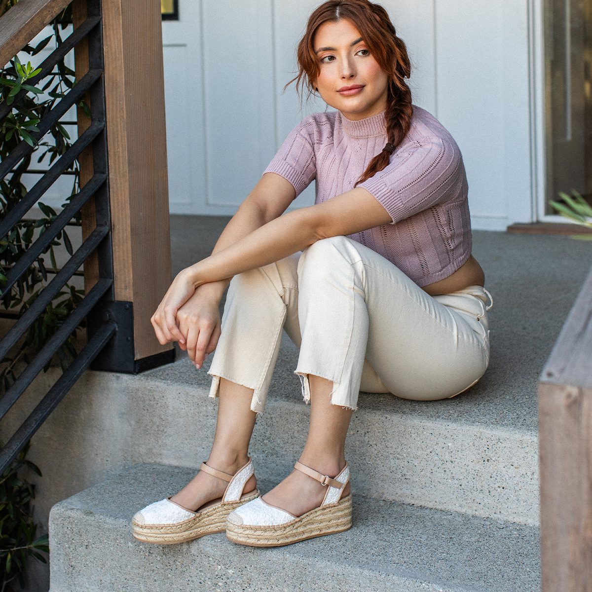 EINAR is a charming espadrille sandal with a flirty floral eyelet upper, adjustable buckle closure, and back ankle strap. The ultra-padded wedge is perfect for exploring new cities and elevating your resort looks.