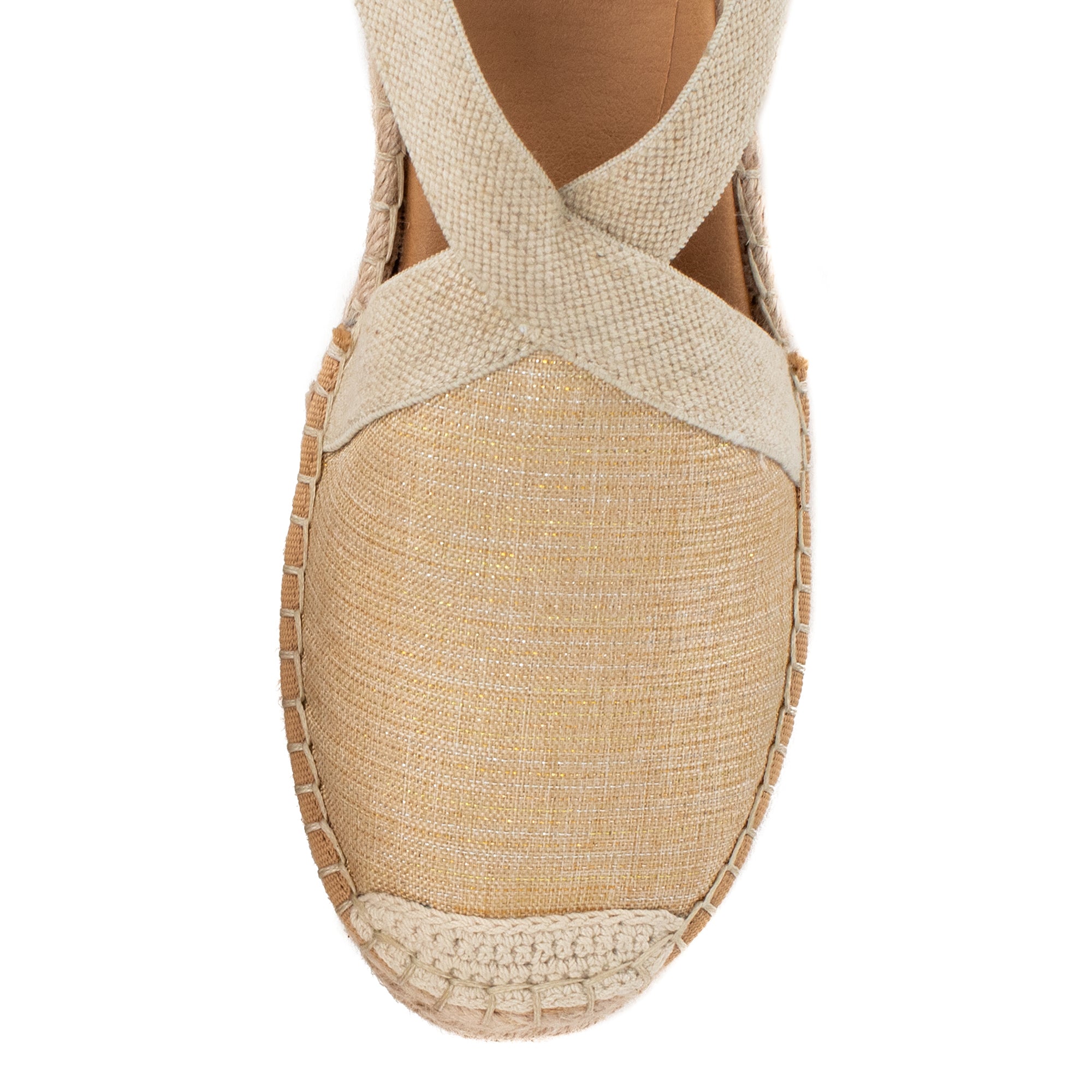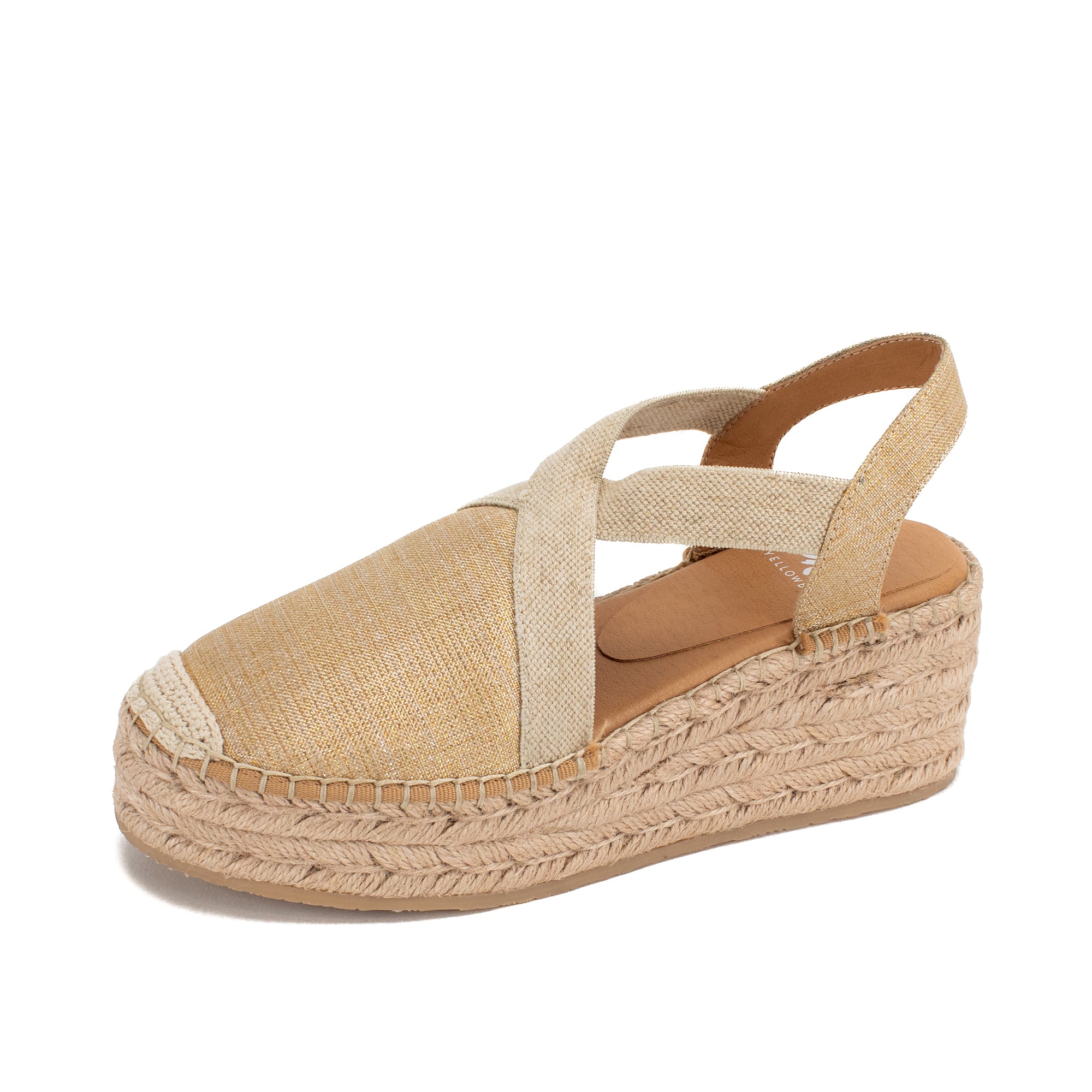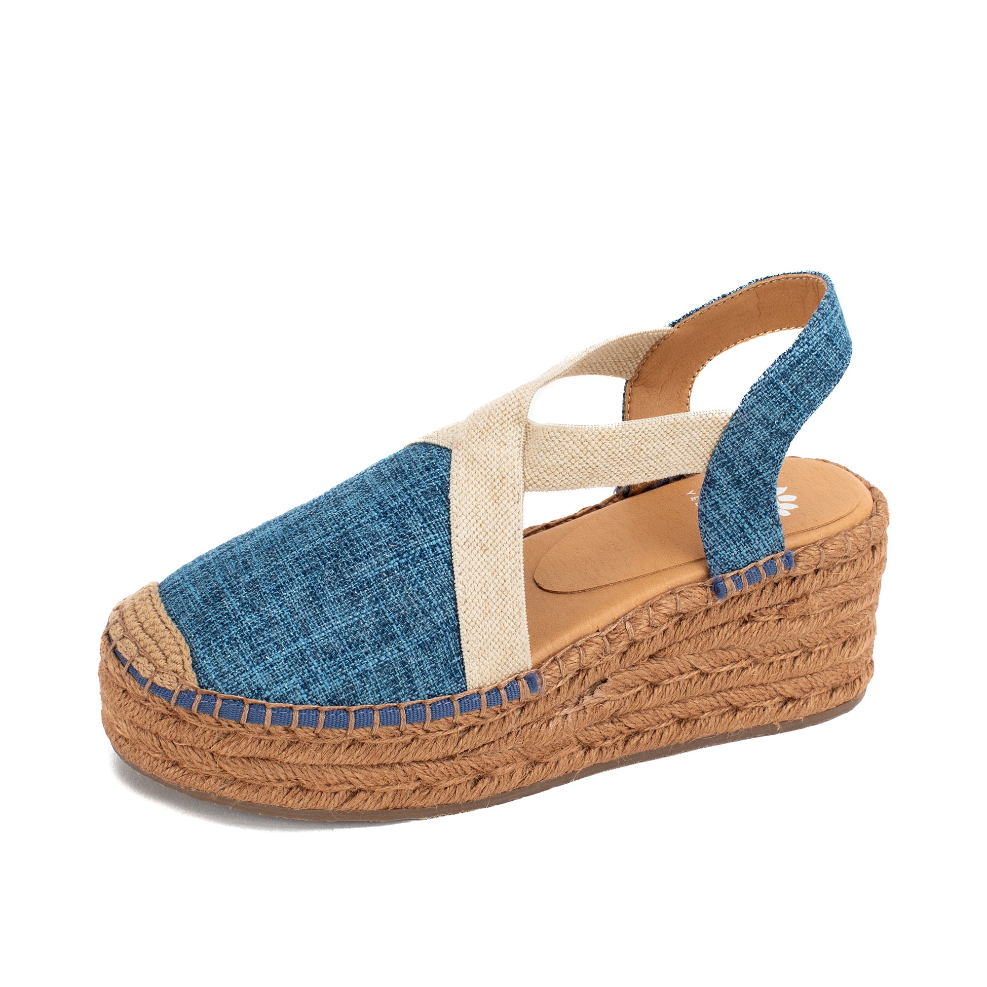 Meet ERICA, a slip-on espadrille sandal designed with shimmering denim and canvas. It comes with elasticized straps for an easy slip-on fit, making it a perfect match for all your warm-weather looks.
