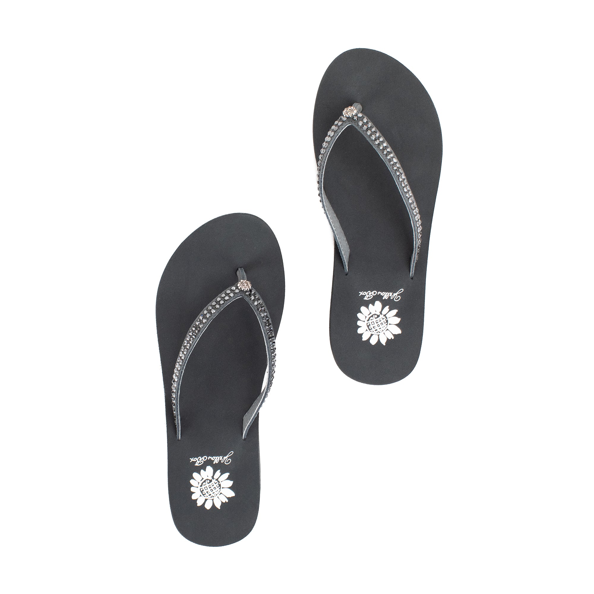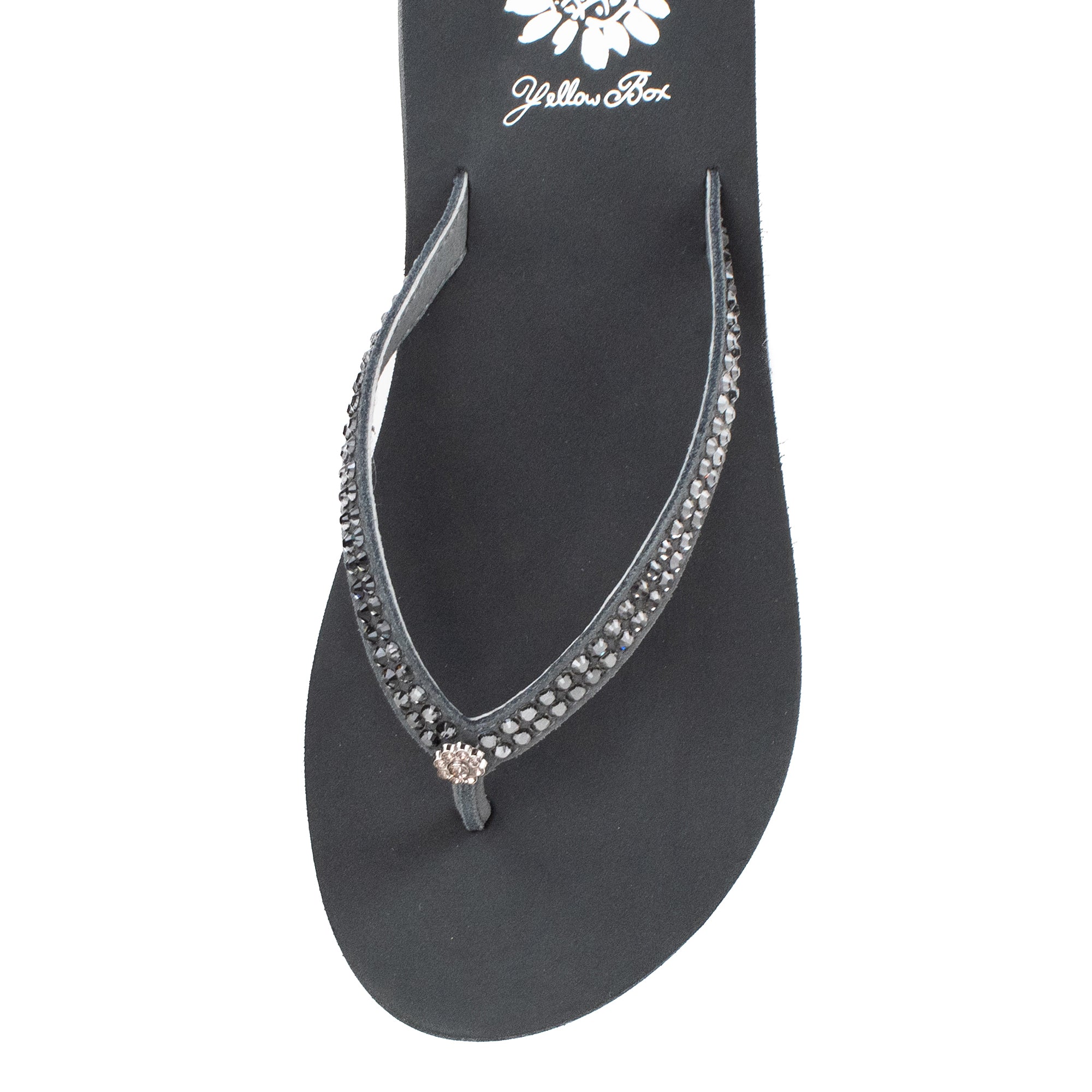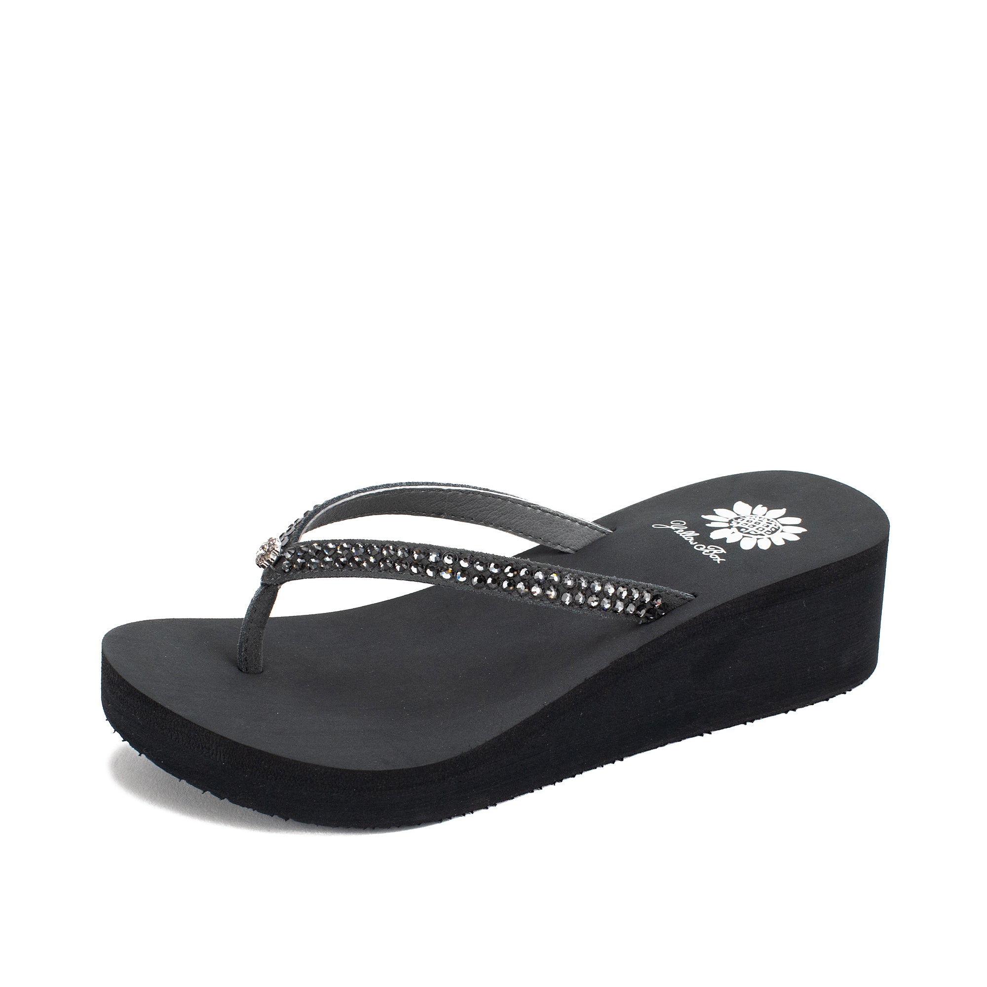 Charming and shining rhinestone-decorated straps top a sleek, modern wedged EVA foam sole to make the simplest.