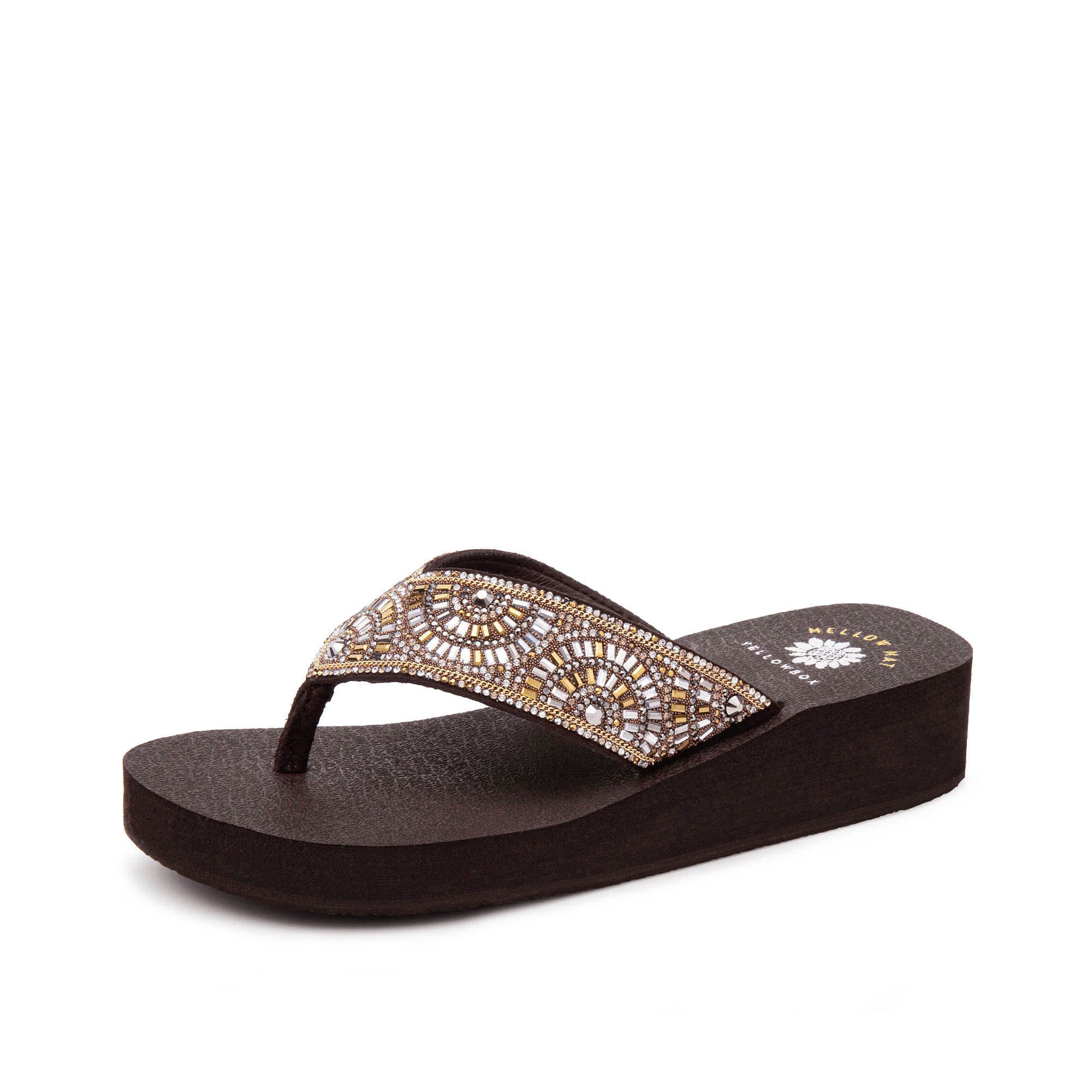 These mosaic-like sandals, adorned with dazzling jewels, offer a stylish yet casual look. From our Mellow Mat™ collection, they feature a contoured slow rebound footbed.